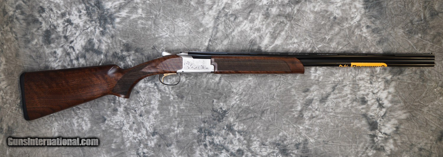 Description: New Browning Citori 725 Field .410 Bore with 28" factory Invector DS choked barrels, silver nitride finished action with game scene and scroll engraving, pistol grip field stock with schnabel forearm. Includes factory box, chokes and tools. SOLD Shotgun Gauge: .410 Gauge |