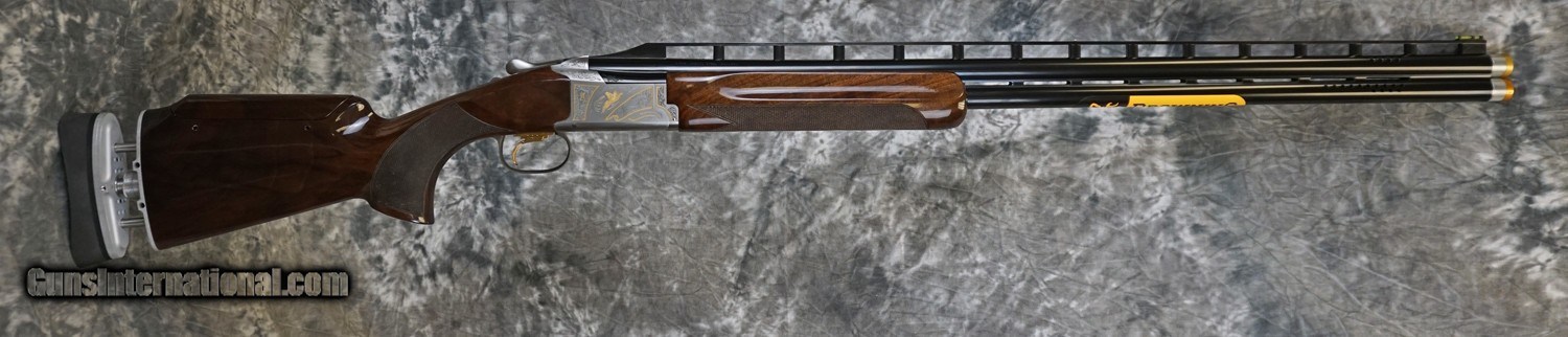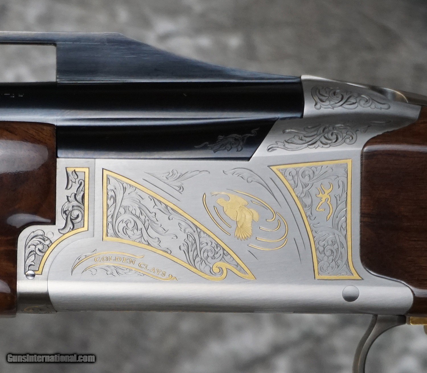 Description: New Browning Citori 725 Golden Clays Trap 12GA with 32" factory DS choked barrels, stepped trap rib, factory ported. Silver nitride finished action with gold borders, gold inlaid game scenes and clay targets. Factory adj. comb trap stock with factory installed Gracoil recoil reduction system, high-gloss finished stock with beavertail forearm. Includes factory box, chokes. SOLD Shotgun Gauge: 12 Gauge |