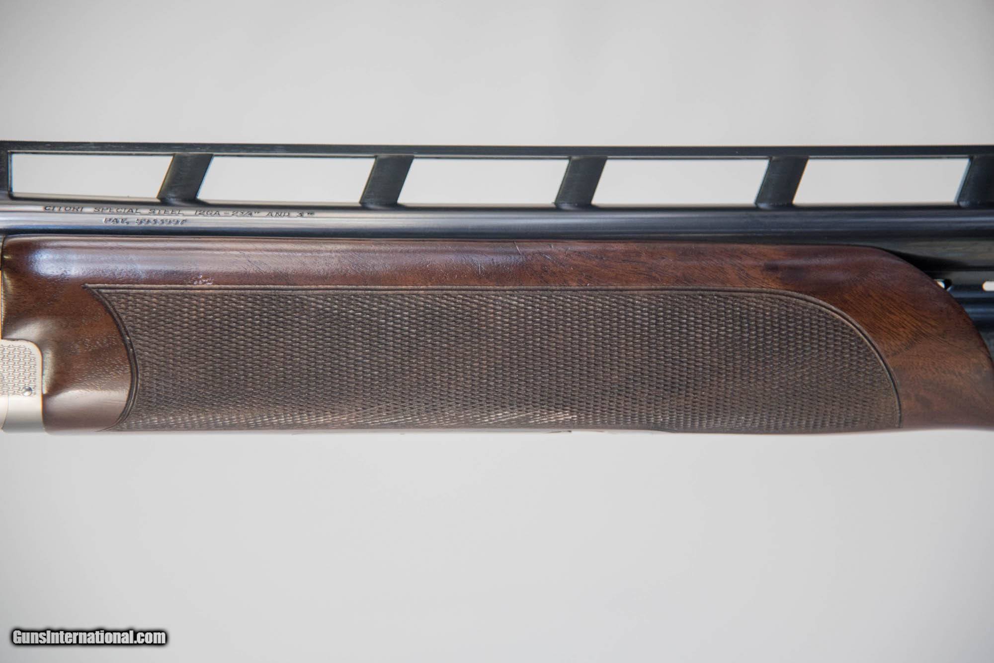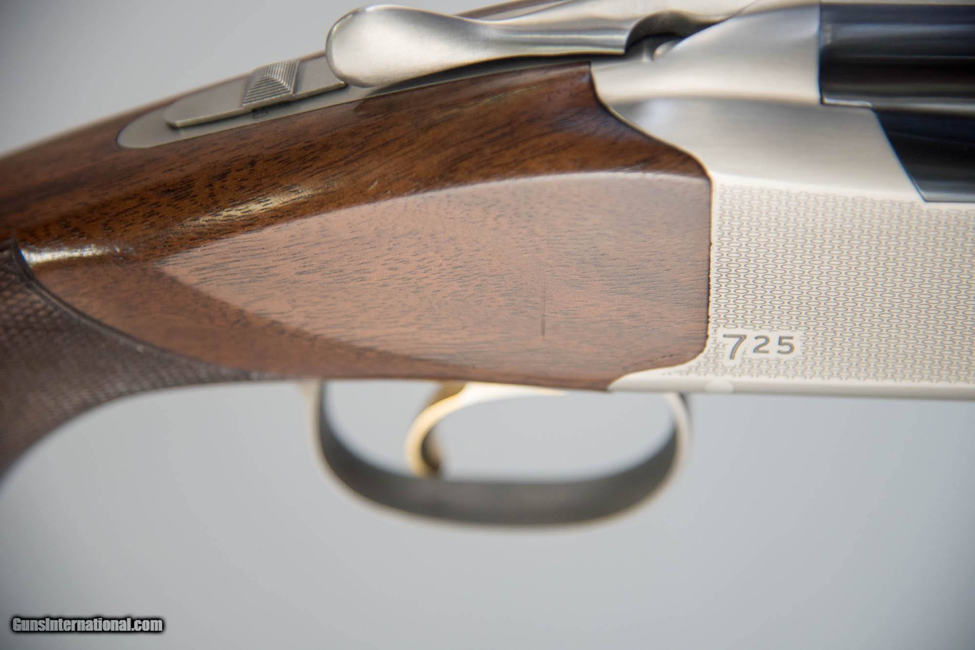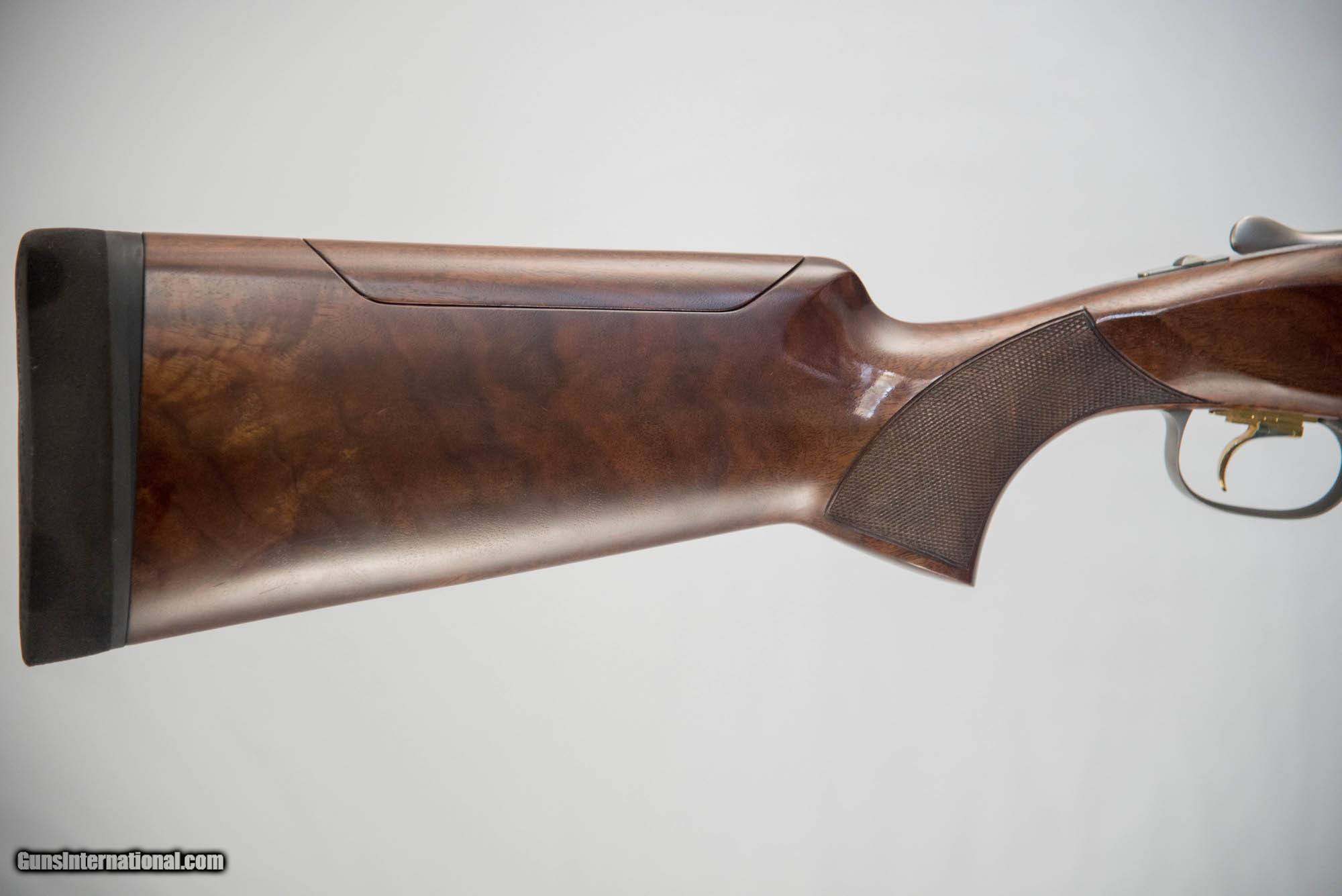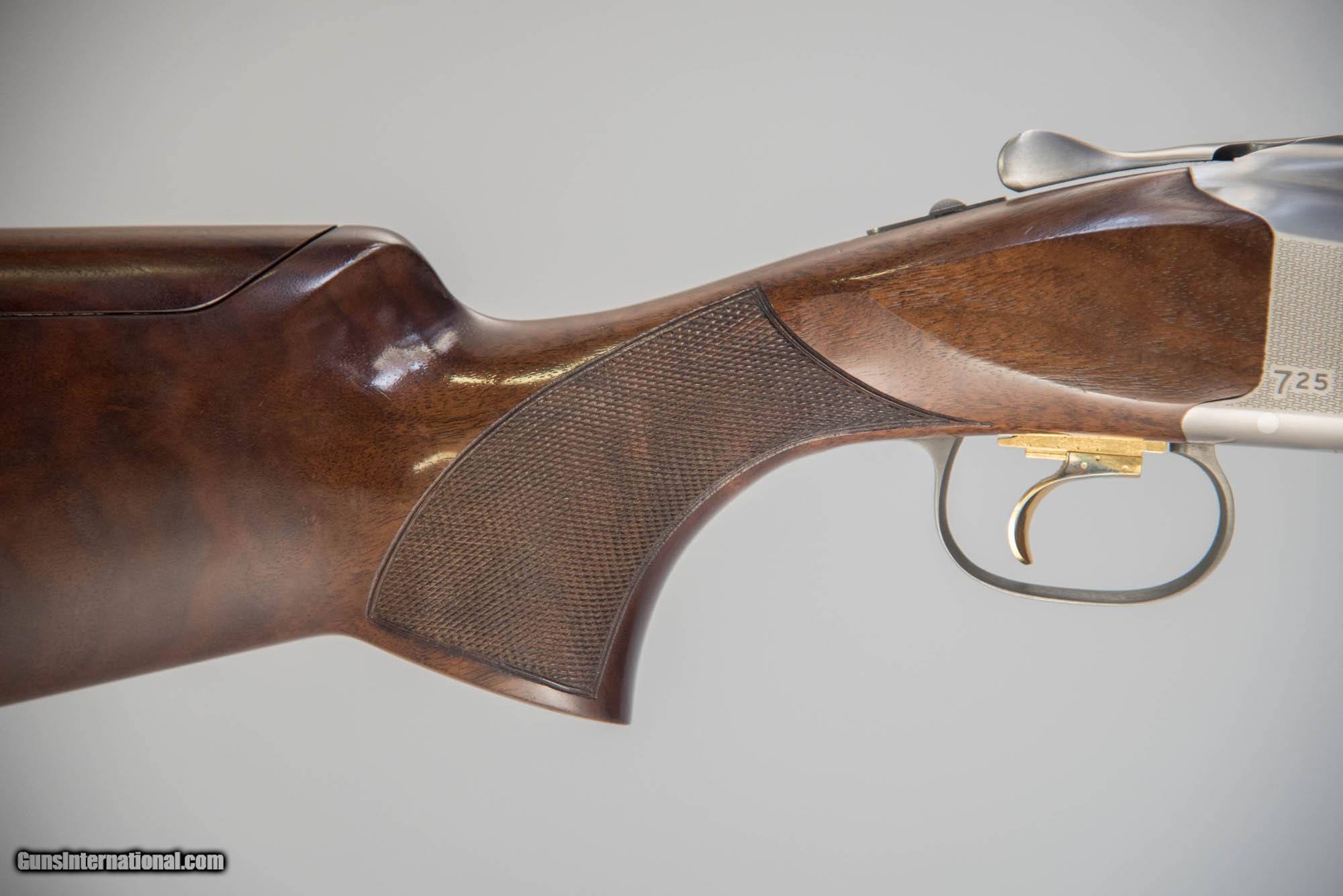 Description: For sale is a pre-owned Browning 725 HR (High Rib) Sporting model with adjustable comb. Comes with 11 choke tubes. 95% condition, there are a few handling marks and scratches on the stock. 15 2/8 inch length of pull with 1 1/2 inch soft recoil pad installed. Ventilated extra high top rib, ported barrels, adjustable comb, Invector-DS extended choke tubes, gloss oil finish, grade III/IV walnut, over and under shotgun, Invector-DS chokes. Serial number is 17825ZR131, which corresponds to a 2017 manufacture date. Comes with 10 choke tubes, 5 Browning Invector DS chokes (IC, F, IM, SK, M) and 5 Muller Choke tubes (U0, U1, U2, U3, U4). Accessories including additional gold trigger shoes and Muller friction choke tube wrench also included, plus original box. Elegant and technically superior. The 725 Citori High Rib Sporting Adjustable shotgun brings the next generation of Citori to the world of sport shooters. The Low-Profile, steel receiver with silver nitride finish combines strength, ergonomics and aesthetics. The very high rib will keep your head up and targets in view. And the adjustable comb will make sure you have a perfect fit. What sets it apart? Gold accented 725 Sporting Engraving on the receiver with "725 Sporting" on the bottom. Ventilated extra high top rib allows you to keep your head in a more comfortable and natural upright position. Ventilated top and side ribs provide extra exposure to air and greater cooling of barrels during shooting. Ported barrels are designed to minimize muzzle jump and allow quicker acquisition of follow on targets. And of course, an adjustable comb for customized fit. SOLD |