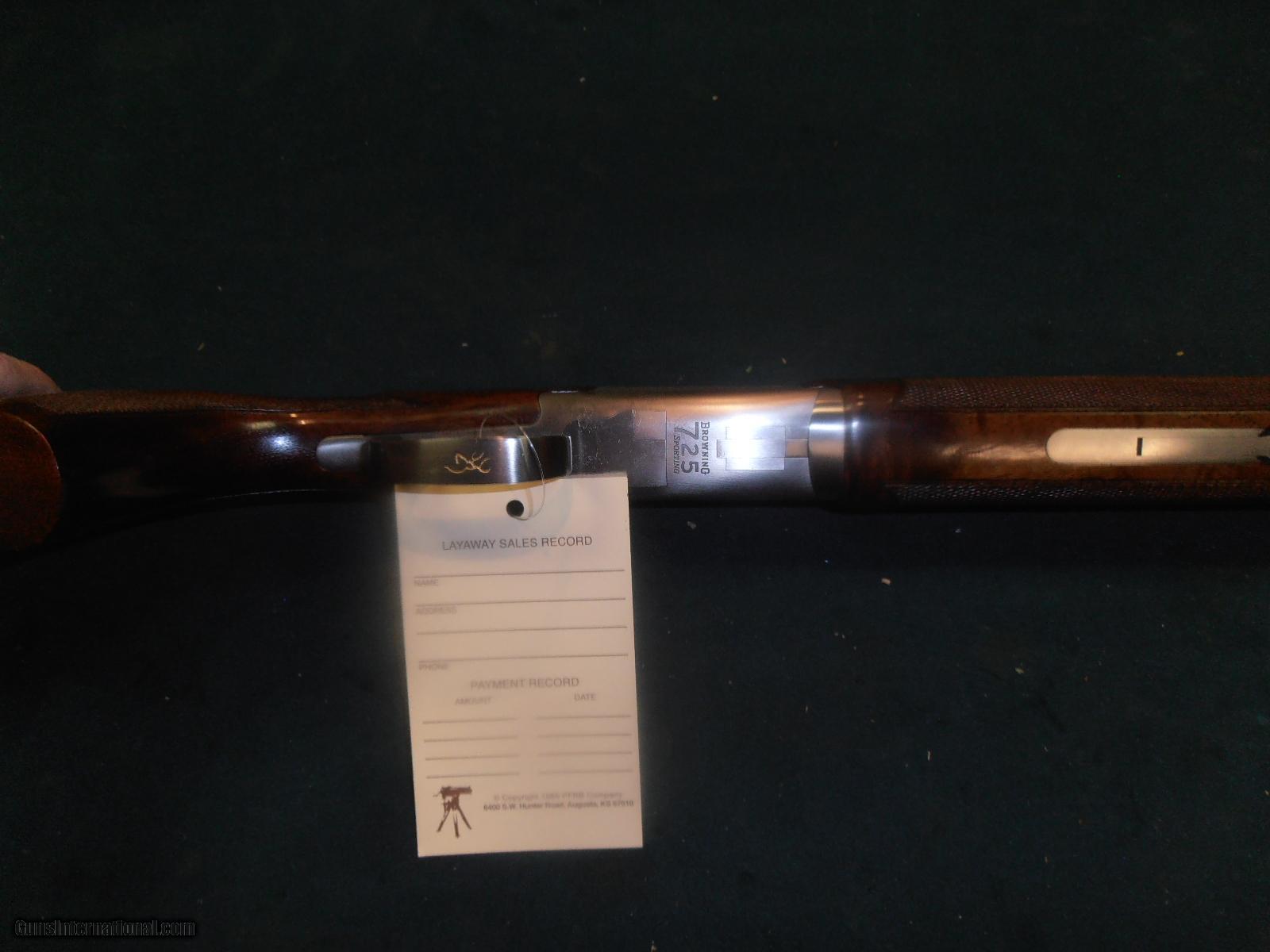 Description: Browning 725 sport, 410 with 3" chambers, 32" barrels, 5 factory extended chokes. Factory finish on both wood and metal. Non-ported. Used gun, but clean, just a few minor marks in the wood. SN is 337xxZT131. No box, sorry.Email me if you would like these pics sent to you, they will come through bigger and better than on the listing page here. Email me with any questions. I am a store front dealer, and I will close s if the gun sells locally. Once ahas reached my reserve, I will pull it from my shelves. Please check your local laws to confirm it is legal to own in your state! Buyer pays $25 shipping and insurance to your FFL, in the lower 48. AK, HI or PR is extra. I will ship to California, NO PROBLEM! All my guns come with a non firing, 3 day unconditional return privilege, from the day UPS delivers to your dealer. Buyer pays shipping both ways if the gun comes back. I can add a new hard case by PLANO for secure shipping for $25 if the buyer wishes (highly recommended, cheap insurance, really helps keep the UPS monster from eating my guns!). No sales tax on guns ship out of Kansas, guns sold in Kansas are subject to Kansas sales tax. I am a licensed FFL, and will include a copy of my FFL with the gun for your dealers records. I will ship to a C&R if the gun is eligible (you look it up!). I will ship to California, but you need to confirm the gun is legal where you are, California or other. I am always looking for good clean, old original Winchesters to buy, consign, or trade, especially pre '64's model 70's and model 54's. WE ALSO TRADE FOR CLASSIC CARS AND TRUCKS! I will leave feedback as soon as the buyer leaves feedback on me. Email me with any questions, and good luck! SOLD |