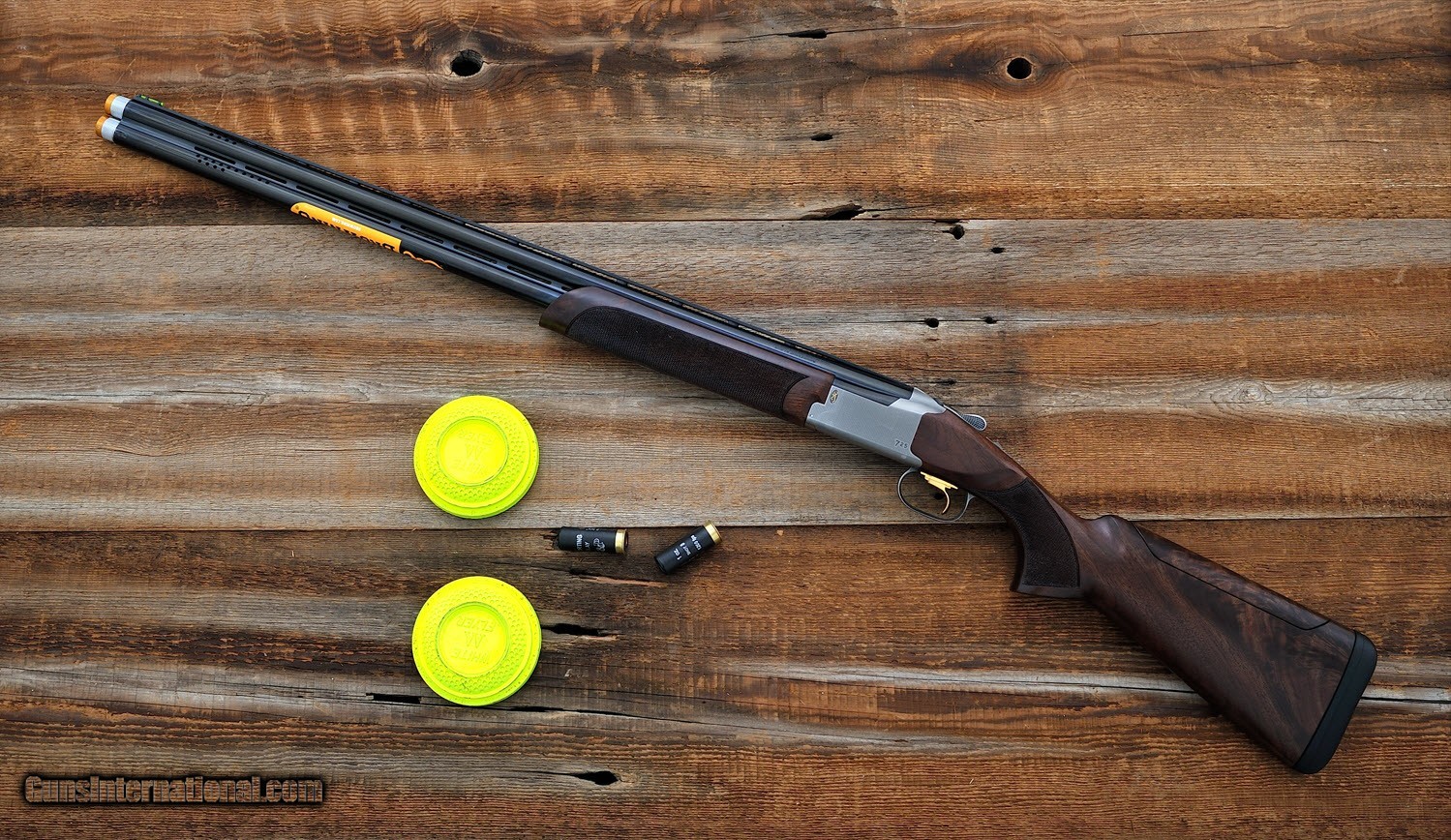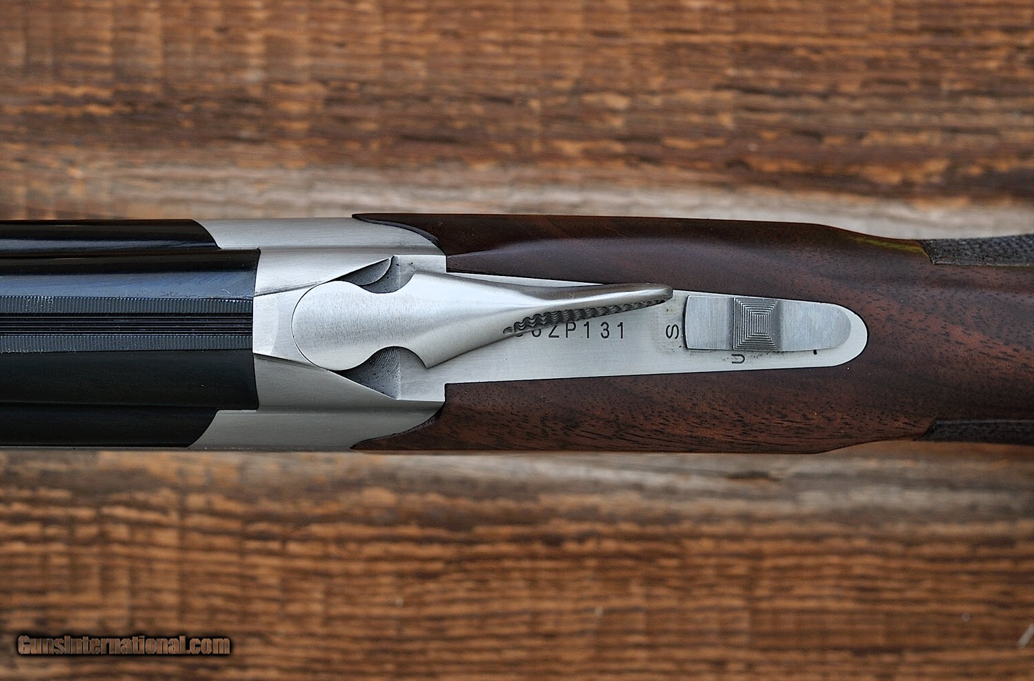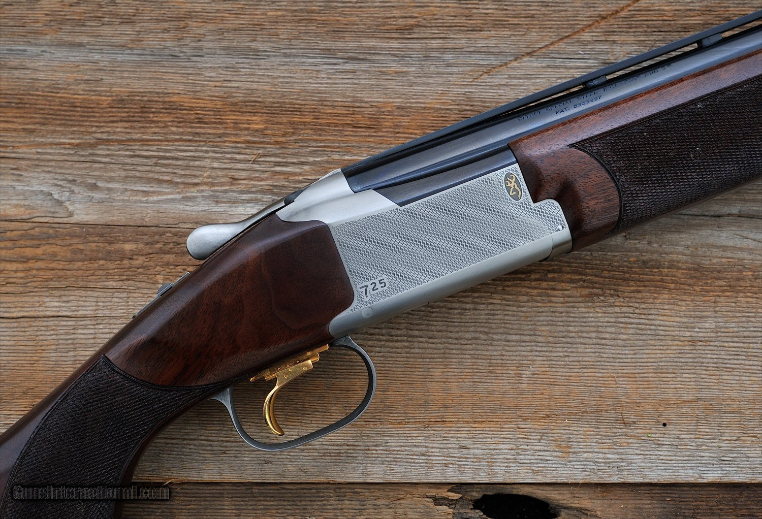 Description: Browning - 725 Sporting - 12 ga - Item Number: 18856ZP131 Shotgun type: O&U Action: Boxlock Ejectors: Yes Trigger: Single Grip: Pistol Grip Forend: Checkered Lop: 14 3/4 " Pad thickness: 1 " Type of butt: Factory Drop comb: 1 5/8 " Drop heel: 2 5/8 " Cast amount: 1/8 " Cast: Off Weight: 8 lbs, 6 oz Manufactured in: Japan Manufacture Year: Finish: Gray Overall condition: NEW Stock condition: NEW Metal condition: NEW Stock: Original finish Metal: Original finish Type of Case: Factory Box Extra barrels: 0 Barrel info: Gauge: 12 ga Chamber: 3 " Length: 30 " Chokes: 5 Factory Chokes Rib type: Ventilated Comments : With a 725, you get the "one with the gun" feeling you want, with the long lasting durability you expect from a Browning over and under. SG-91 H2 SOLD |