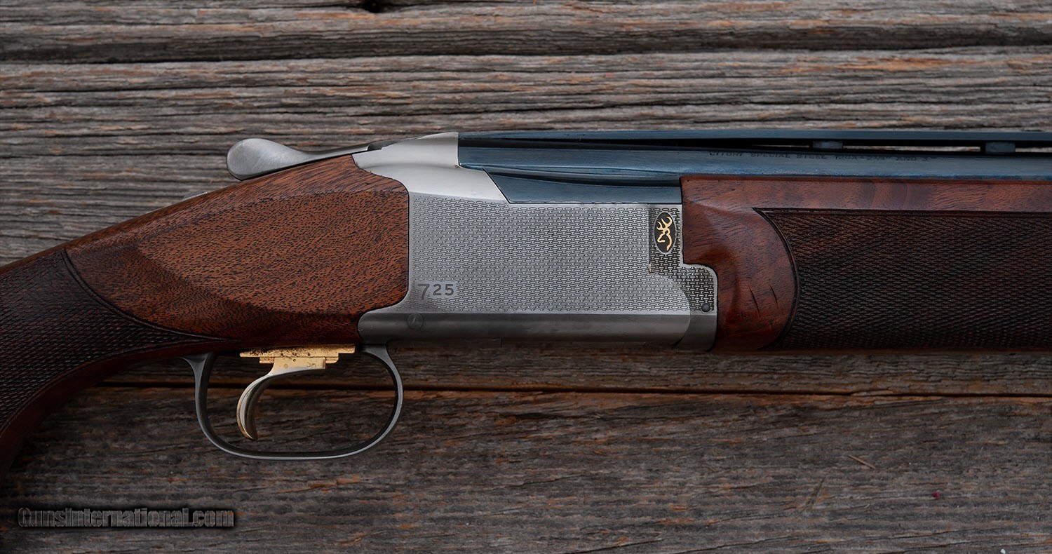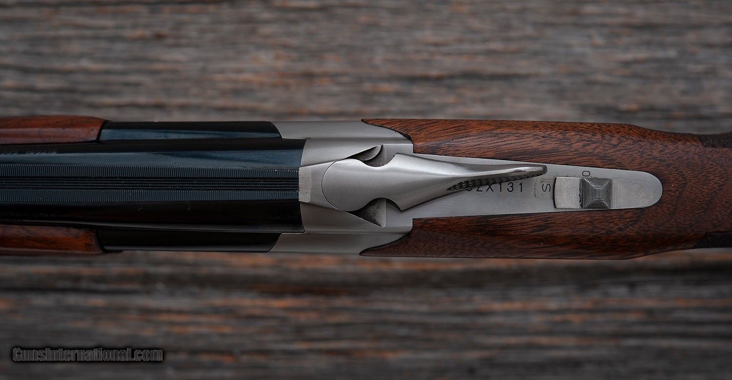 Description: Browning - 725 Sporting - 12 ga - Item Number: BRO09319ZX131 Shotgun type: O&U Action: Boxlock Ejectors: Yes Trigger: Single Grip: Pistol Grip Forend: Checkered Lop: 14 7/8 " Pad thickness: 1 " Type of butt: Inflex Tech. Pad Drop comb: 1 1/2 " Drop heel: 2 3/8 " Cast amount: 1/8 " Cast: OFF Weight: 7 lbs, 10 oz Manufactured in: Japan Finish: Gray Overall condition: Very Good Stock condition: Very Good Metal condition: Very Good Stock: Original finish Metal: Original finish Type of Case: Factory Box Extra barrels: 0 Barrel info: Gauge: 12 ga Chamber: 3 " Length: 30 " Chokes: 8 Choke Tubes Rib type: Ventilated Comments : Solid gun showing some light wear and handling. SG-131 D1 SOLD |