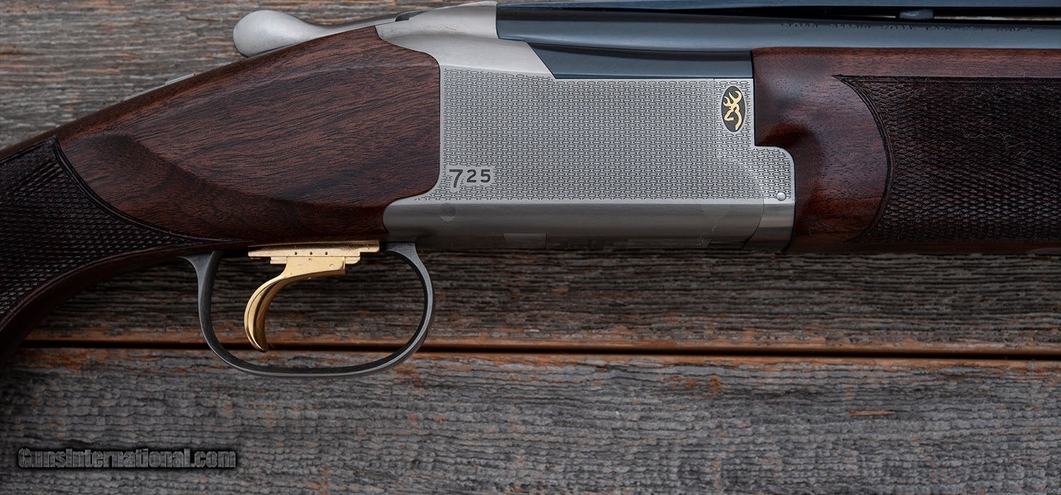 Description: Browning - 725 Sporting - 12 ga - Item Number: BRJP14257YM131 Shotgun type: O&U Action: Boxlock Ejectors: Yes Trigger: Single Grip: Pistol Grip Forend: Checkered Lop: 14 3/4 " Pad thickness: 1 " Type of butt: Factory Drop comb: 1 3/4 " Drop heel: 2 5/8 " Cast amount: 1/8 " Cast: Off Weight: 8 lbs, 4 oz Manufactured in: Japan Finish: Gray Overall condition: NEW Stock condition: NEW Metal condition: NEW Stock: Original finish Metal: Original finish Type of Case: Factory Box Extra barrels: 0 Barrel info: Gauge: 12 ga Chamber: 3 " Length: 32 " Chokes: 5 Factory Chokes Rib type: Ventilated Comments : With a 725, you get the "one with the gun" feeling you want, with the long lasting durability you expect from a Browning over and under. SG-133 H0 SOLD Shotgun Gauge: 12 Gauge |