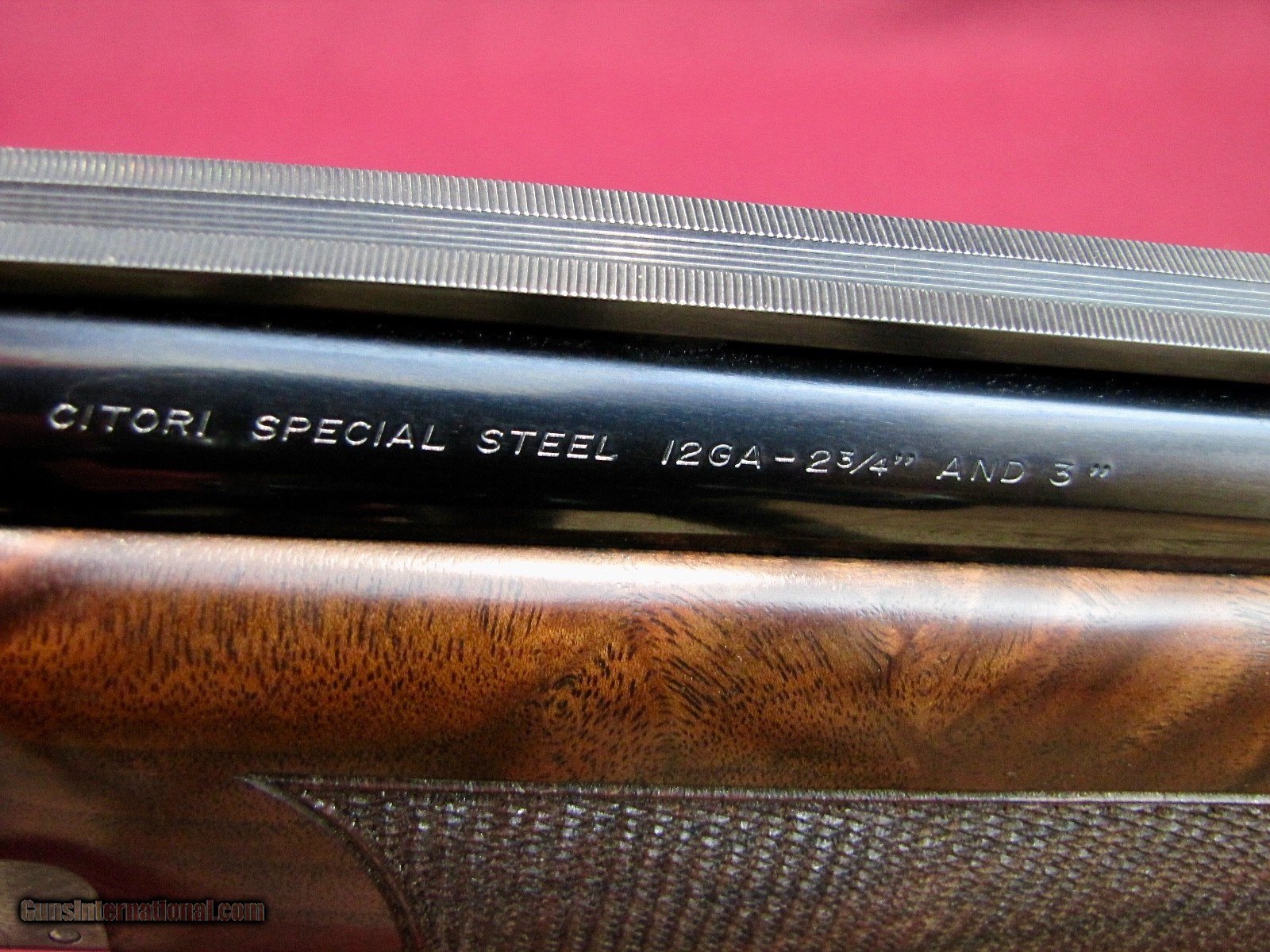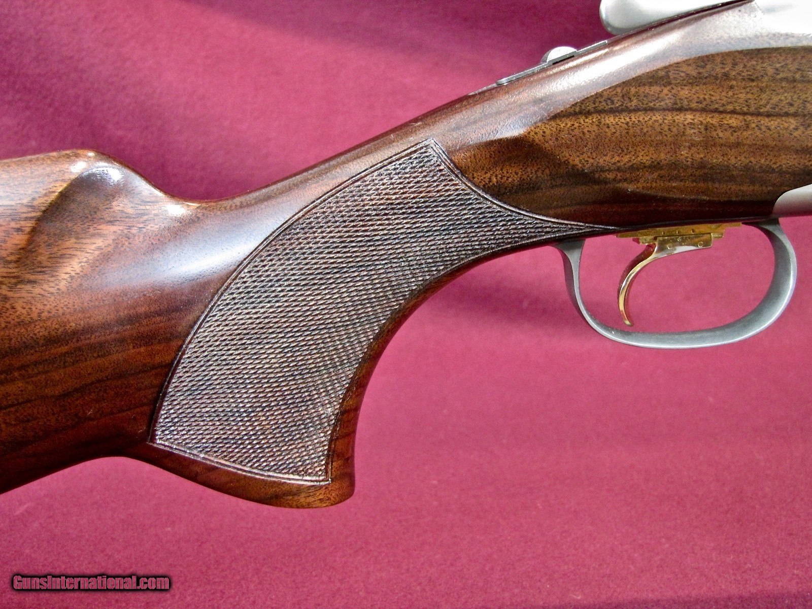 Description: I have for sale a very nice 12 gauge Browning 725 Sporting that has been lightly used. This gun has a 32 inch factory ported barrel with Invector DS choke tubes (5 Included, SK, IC, Mod, IM, Full). The vent rib is tapered 11MM to 7MM. This gun is factory original in every way and comes complete with a Factory Browning Luggage case. Stock dimensions are 1 1/2 X 2 3/8 X 14 7/8 with the adjustable trigger in the middle position. Stock has the original Inflex Pad which helps greatly with recoil. Cast of the stock is neutral and it does have a right hand palm swell. Gun has been fired very lightly and top lever is way to the right as you can see in the attached photos. Weight of the gun is 7 pounds 9 ounces. Of course trigger is single selective and the ejectors are strong and well timed. Condition is very nice with a few handling impressions in the wood from normal light use. Price of the gun with case, choke tubes, keys, and extra trigger blades is $2500 plus $50 shipping to your FFL. As always there is a three day non-firing inspection period with buyer paying shipping charges if returned. Contact me with any questions. SOLD Manufacturer: Browning Model: 725 Sporting Chambers: 3 inch Ejectors: Selective Well Timed Metal Condition: Excellent Wood Condition: Excellent Bore Condition: Excellent Barrels: 32 inches Action: Boxlock Triggers: Single Selective Gauge Info: 12 Stock Comb: 1 1/2 Stock Heel: 2 3/8 Stock Cast: Neutral - no cast Fore End: Schnabel Butt Pad: Browning Inflex Pad LOP: 14 7/8 Rib: Ventilated Rib Weight: 7 pounds 9 ounces Chokes: Invector DS 5 Included Case: Browning Luggage Case |