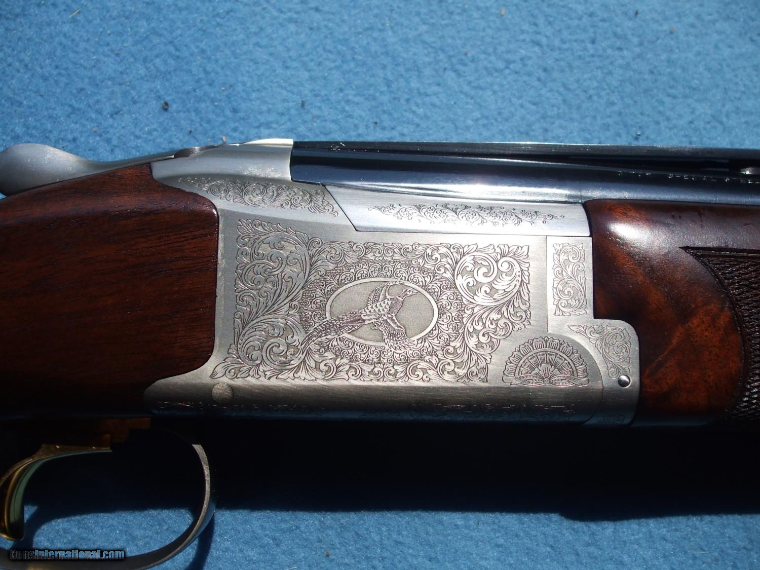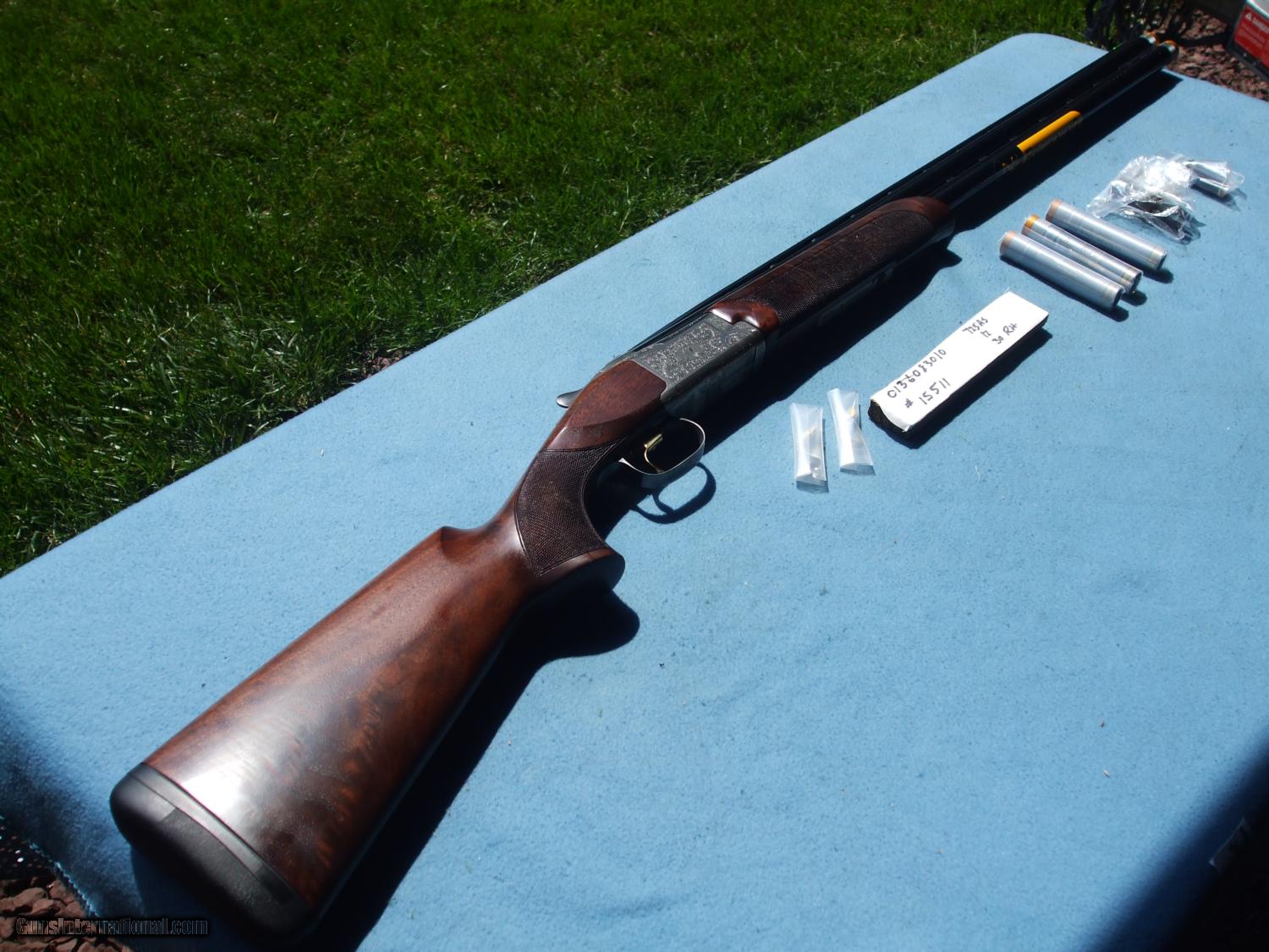 Description: Browning 725 sporting custom American Sporter 12ga 30". If you like the Browning 725 sporting you will love this custom version. All the same specifications of the standard 725 sporting with our unique engraving pattern. The engraving pattern has full scroll coverage featuring a pheasant on one side of the receiver, a duck on the other side and a quail on the underside. Tasteful scroll work on the top of the receiver as well as the forend iron. The gun also comes with 5 extended DS invector chokes 1-skeet 1-ic 1-mod 1-imod 1-full, hiviz sight system and Browning 3 point trigger system. Fire-lite mechanical trigger also standard. Upgraded american walnut stock and forend. Great value for slightly more than Browning's standard offerring. SOLD Manufacturer: Browning Model: 725 sporting custom American Sporter Serial Number: 15511zw131 Bore: .740 Chambers: 3 Ejectors: yes Condition: new Metal Condition: new Wood Condition: new Bore Condition: new Barrels: 30 Barrel Type: o/u Action: citori Triggers: fire lite mechanical Gauge Info: 12ga Stock: upgrade walnut Stock Comb: 1 9/16 Stock Heel: 2 3/8 Stock Cast: right hand Fore End: schnabel Butt Pad: inflex sporting LOP: 14 3/4 Rib: 7/16" to 5/16 Finish: satin wood Weight: 7lbs 10oz Sights: HiViz Manufacture Date: 2015 Chokes: ds invector 5 Engraving: American sport Extras: choke wrench Case: none |