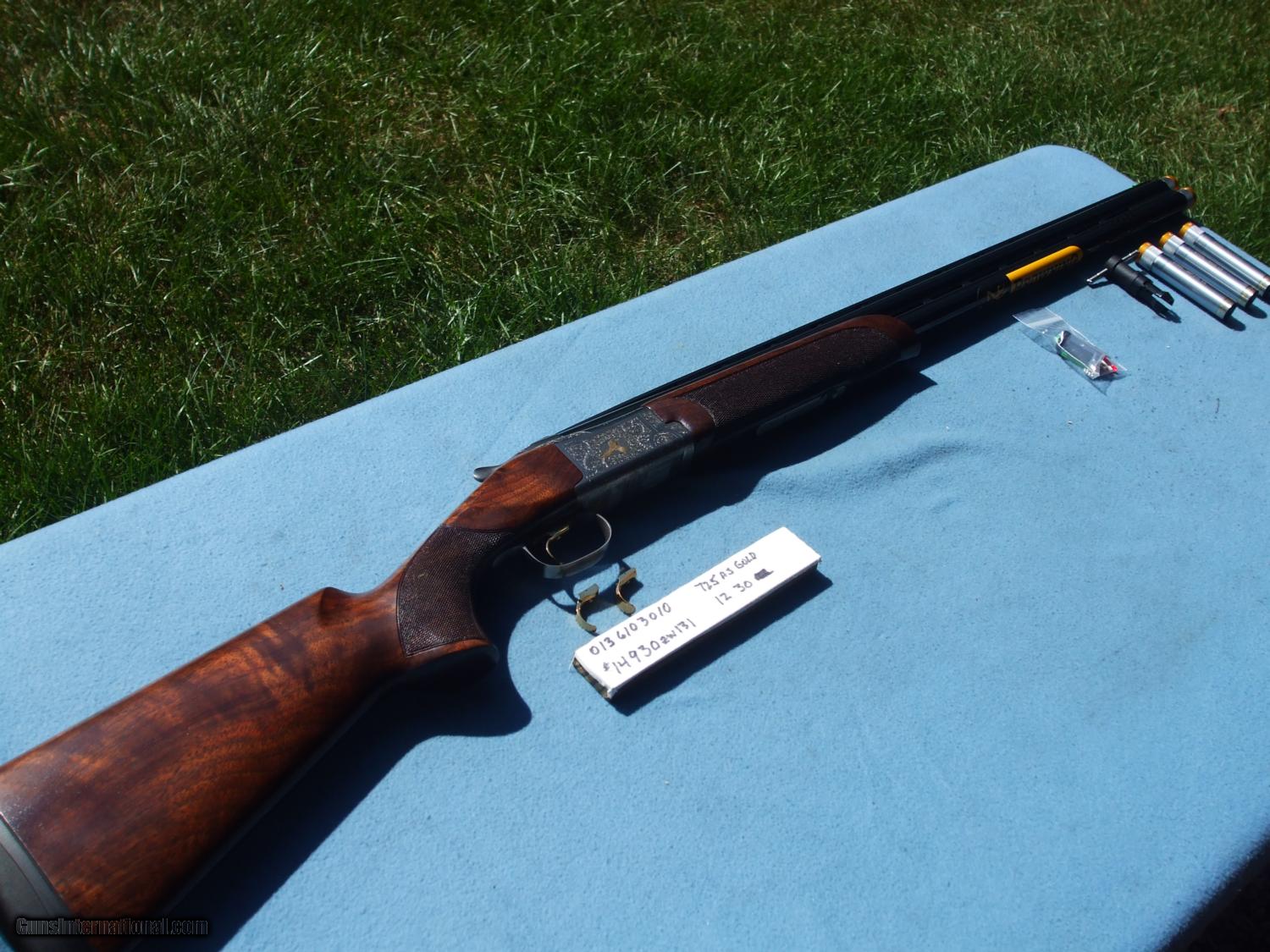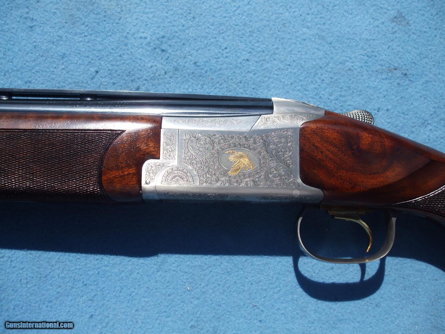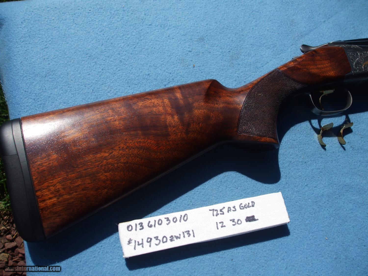 Description: Browning 725 sporting custom order American Sporter Gold 12ga 30". If you like the Browning 725 sporting you will love this custom version. All the same specifications of the standard Browning 725 sporting with our unique engraving pattern. The engraving pattern has full scroll coverage featuring a gold pheasant in flight on one side, a gold duck on the other and a gold quail on the underside. Gun is delivered with 5 extended DS invector choke 1-skeet 1-ic 1-mod 1-imod 1-full, hiviz sight sytem and Browning 3 point adjustable trigger system. Fire-lite mechanical trigger also standard. Upgraded american walnut stock and forend. This gun is a great value for slightly more than Browning's standard offerring. SOLD Manufacturer: Browning Model: Browning 725 American Sporter Serial Number: 14930zw131 Bore: .740 Chambers: 3 Ejectors: yes Condition: new Metal Condition: new Wood Condition: new Bore Condition: new Barrels: 30 Barrel Type: o/u Action: citori Triggers: fire lite mechanical Gauge Info: 12ga Stock: upgrade walnut Stock Comb: 1 9/16 Stock Heel: 2 3/8 Stock Cast: right hand Fore End: schnabel Butt Pad: inflex sporting LOP: 14 3/4 Rib: 7/16" to 5/16 Finish: satin wood Weight: 7lbs 10oz Sights: HiViz Manufacture Date: 2015 Chokes: ds invector 5 Engraving: American sporter Extras: choke wrench Case: none |