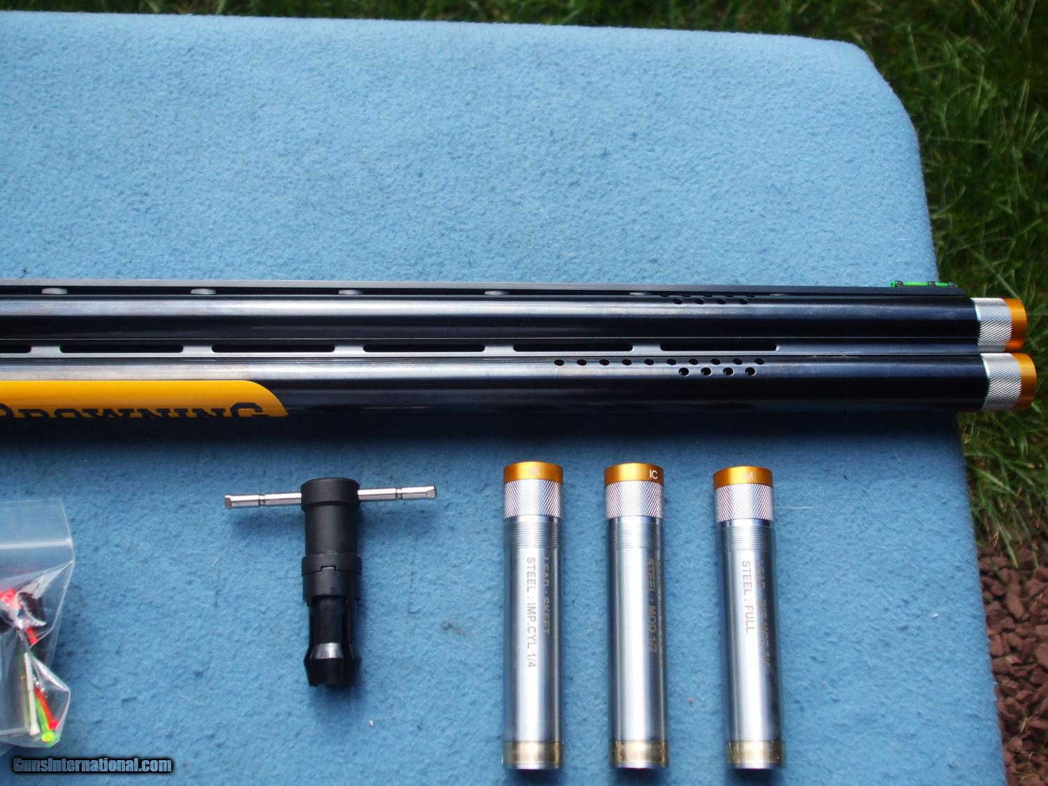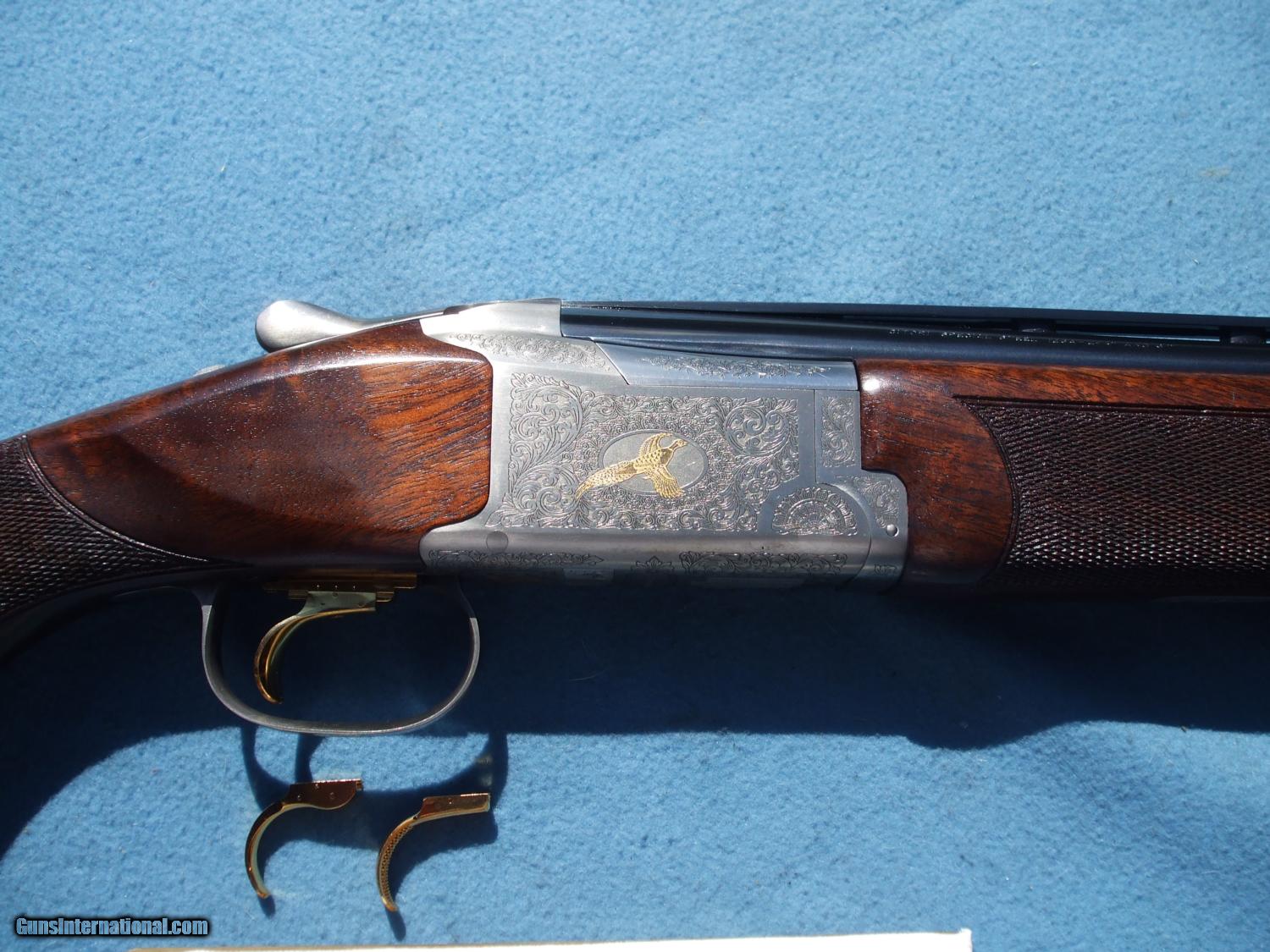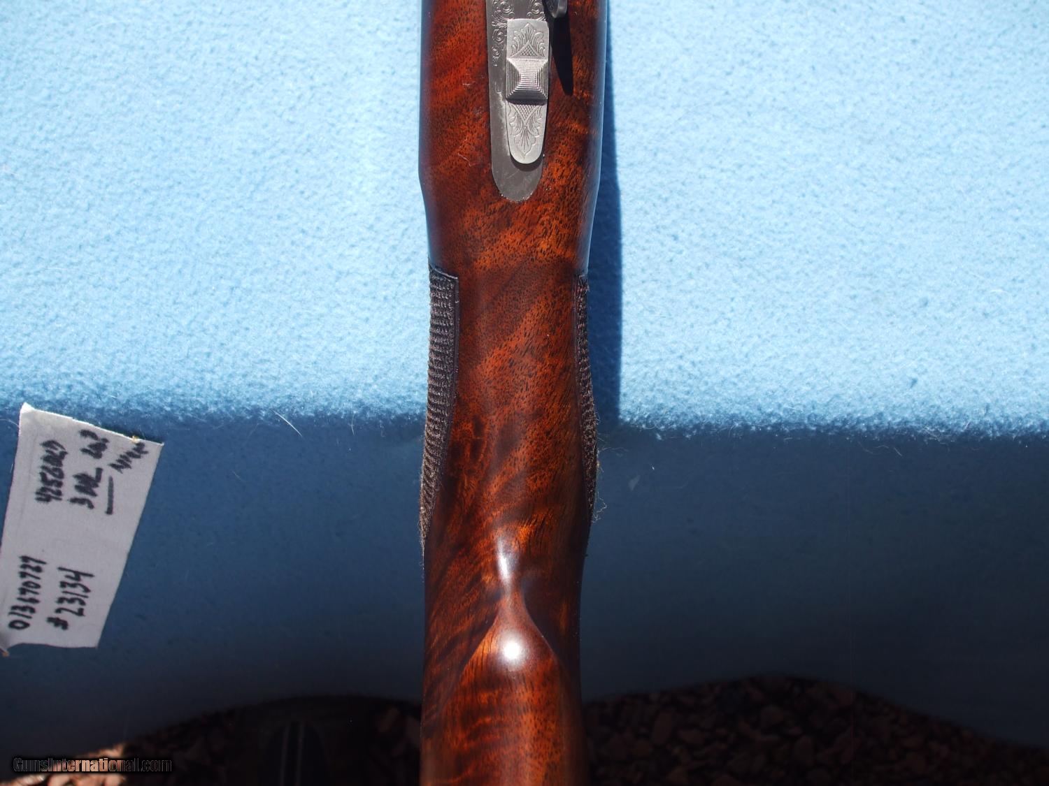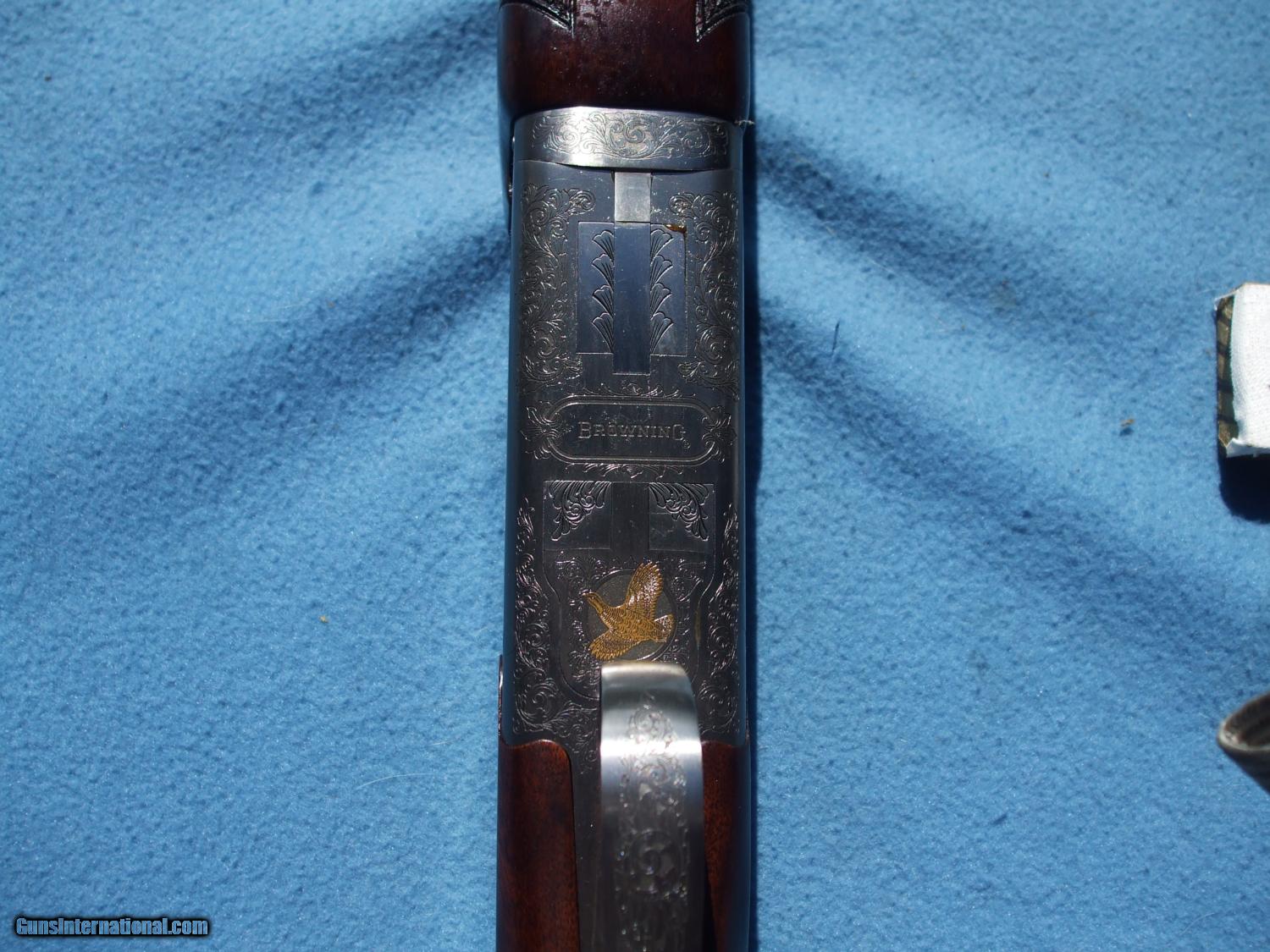 Description: Browning 725 sporting custom order American Sporter Gold 12ga 30". If you like the Browning 725 sporting you will love this custom version. All the same specifications of the standard Browning 725 sporting with our unique engraving pattern. The engraving pattern has full scroll coverage featuring a gold pheasant in flight on one side, a gold duck on the other and a gold quail on the underside. Gun is delivered with 5 extended DS invector choke 1-skeet 1-ic 1-mod 1-imod 1-full, hiviz sight sytem and Browning 3 point adjustable trigger system. Fire-lite mechanical trigger also standard. Upgraded american walnut stock and forend. This gun is a great value for slightly more than Browning's standard offerring. SOLD Manufacturer: Browning Model: Browning 725 American Sporter Serial Number: 14930zw131 Bore: .740 Chambers: 3 Ejectors: yes Condition: new Metal Condition: new Wood Condition: new Bore Condition: new Barrels: 30 Barrel Type: o/u Action: citori Triggers: fire lite mechanical Gauge Info: 12ga Stock: upgrade walnut Stock Comb: 1 9/16 Stock Heel: 2 3/8 Stock Cast: right hand Fore End: schnabel Butt Pad: inflex sporting LOP: 14 3/4 Rib: 7/16" to 5/16 Finish: satin wood Weight: 7lbs 10oz Sights: HiViz Manufacture Date: 2015 Chokes: ds invector 5 Engraving: American sporter Extras: choke wrench Case: none |