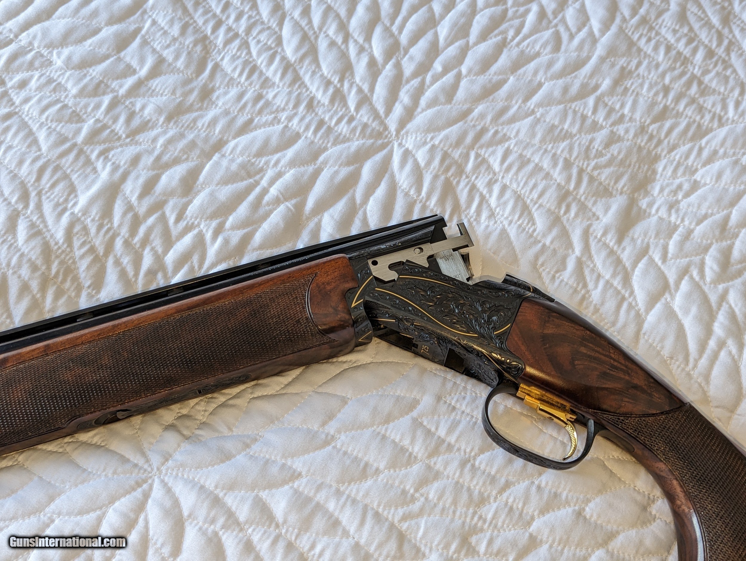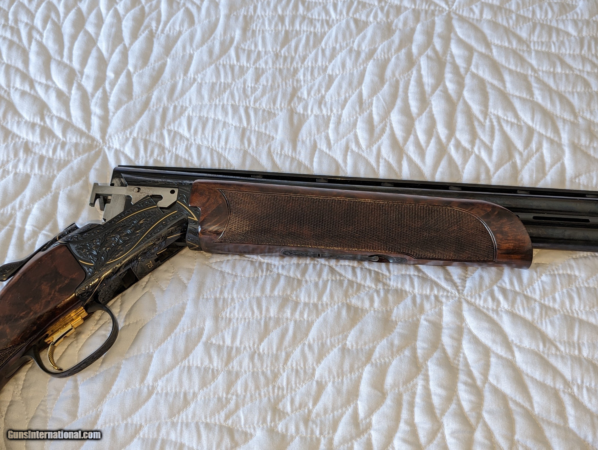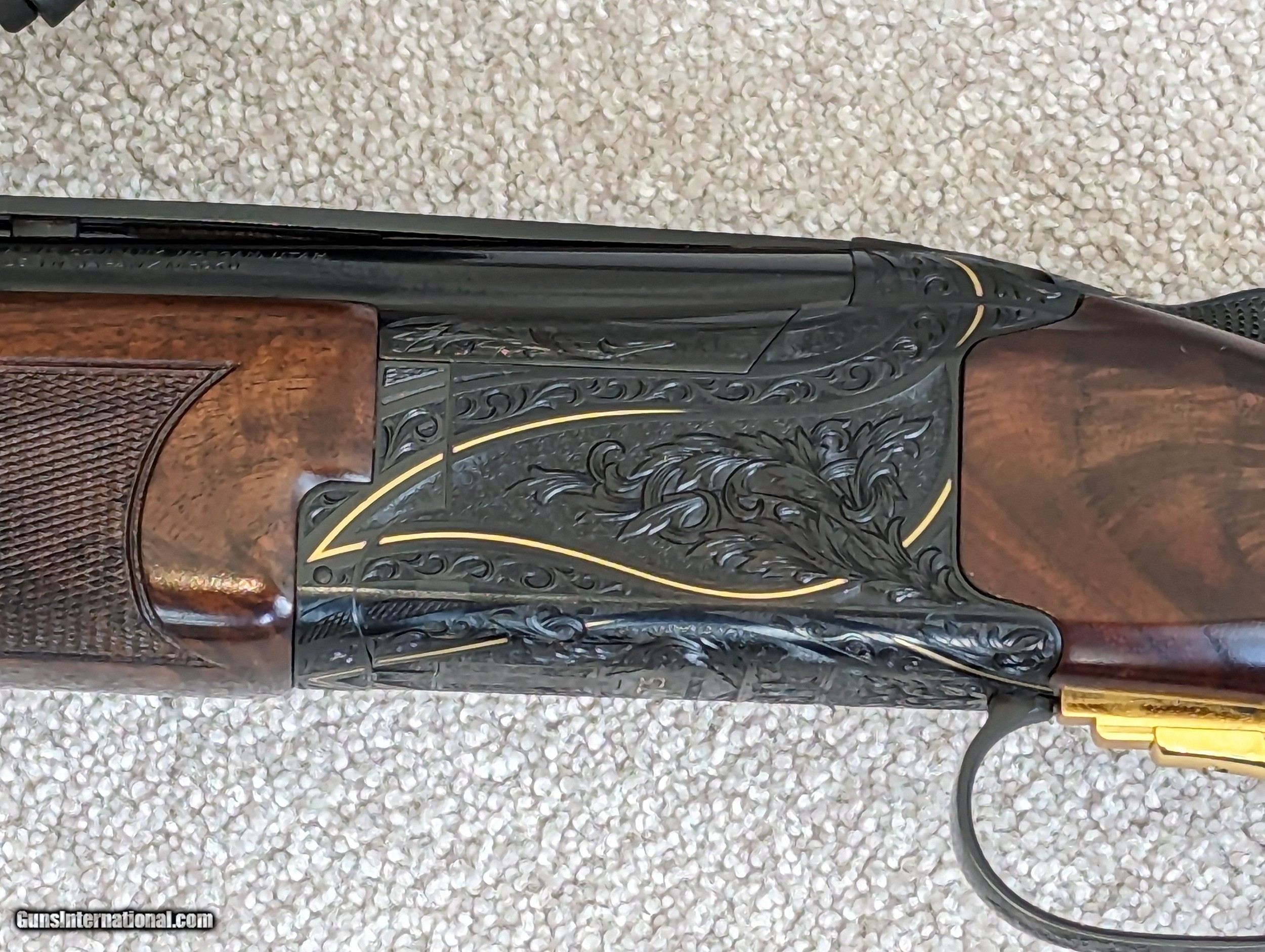 Description: This rare shotgun is a Browning 725 Sporting Grade 7 with 30" barrel. Comes with Browing hard case and a full set of Invector DS chokes. According to Browning there were only 65 manufactured in this configuration (12 gauge, 30" barrel, with this engraving). Excellent condition, shot very little. SOLD Shotgun Gauge: 12 Gauge Manufacturer: Browning Model: 725 Barrel Length: 30 Condition: Excellent Metal Condition: Excellent Wood Condition: excellent Bore Condition: excellent Engraving: Grade 7 |