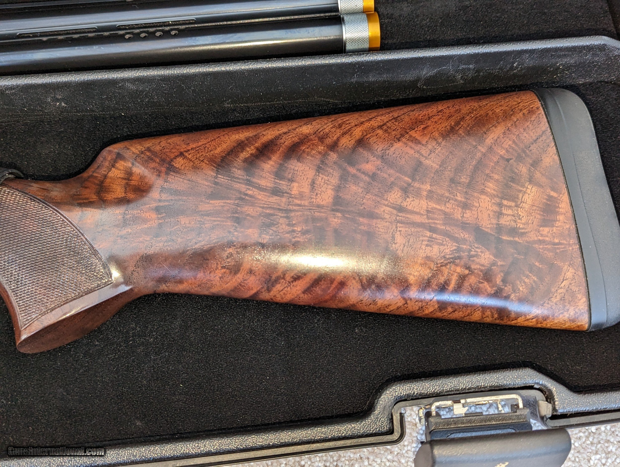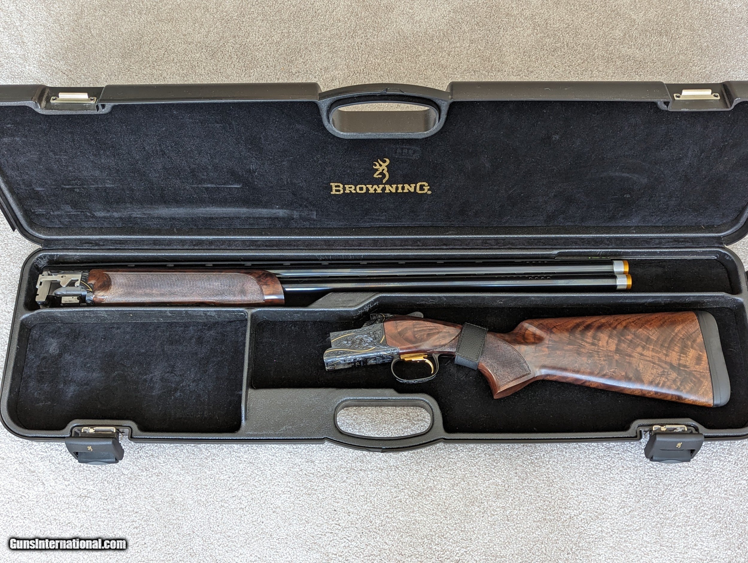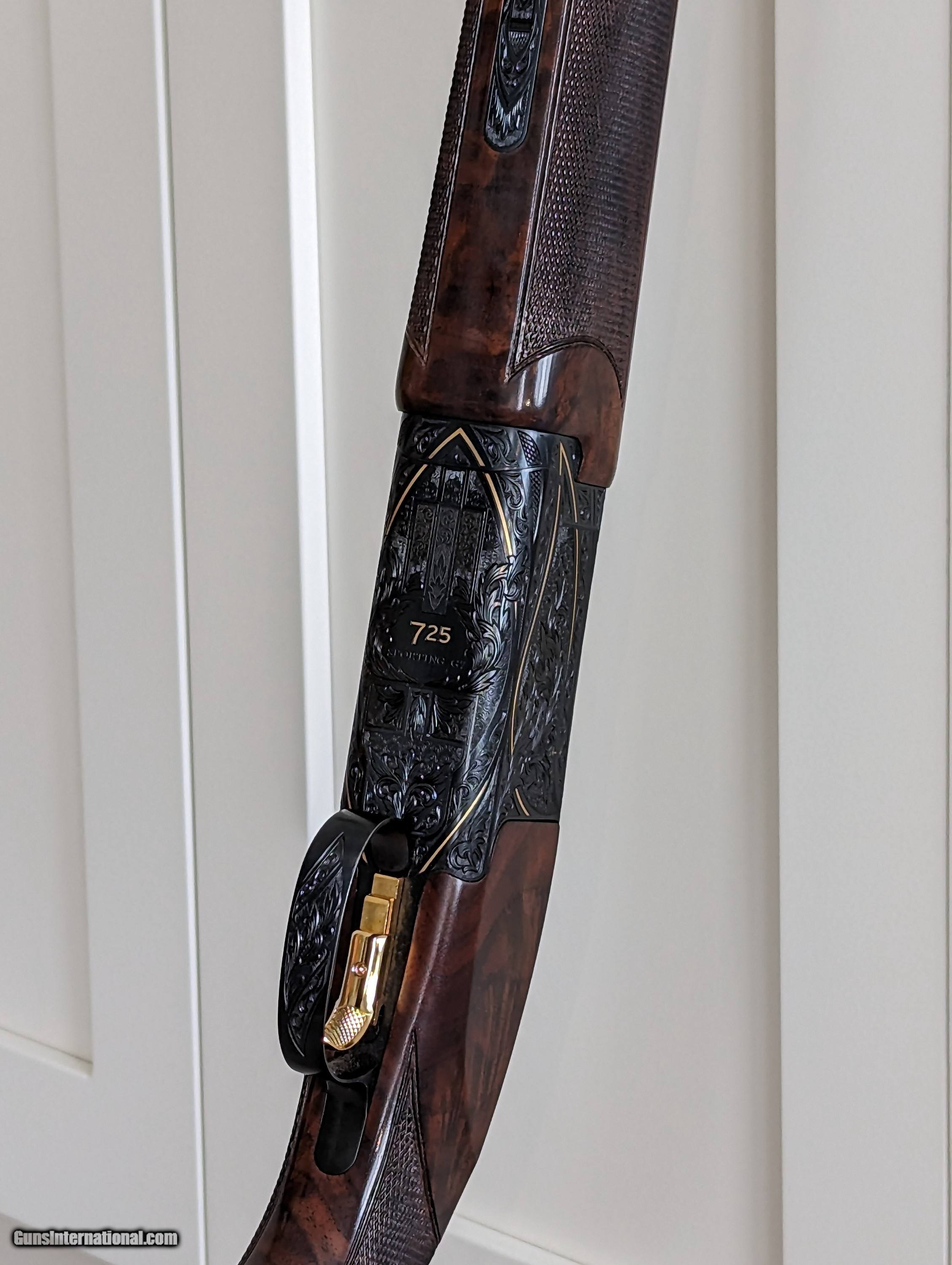 Description: This rare shotgun is a Browning 725 Sporting Grade 7 with 30" barrel. Comes with Browing hard case and a full set of Invector DS chokes. According to Browning there were only 65 manufactured in this configuration (12 gauge, 30" barrel, with this engraving). Excellent condition, shot very little. SOLD Shotgun Gauge: 12 Gauge Manufacturer: Browning Model: 725 Barrel Length: 30 Condition: Excellent Metal Condition: Excellent Wood Condition: excellent Bore Condition: excellent Engraving: Grade 7 |