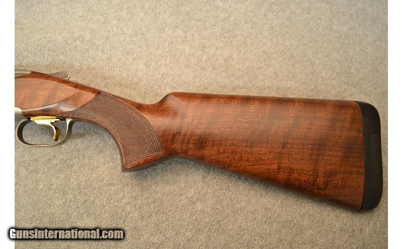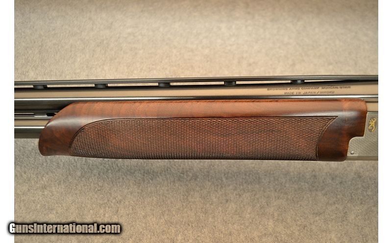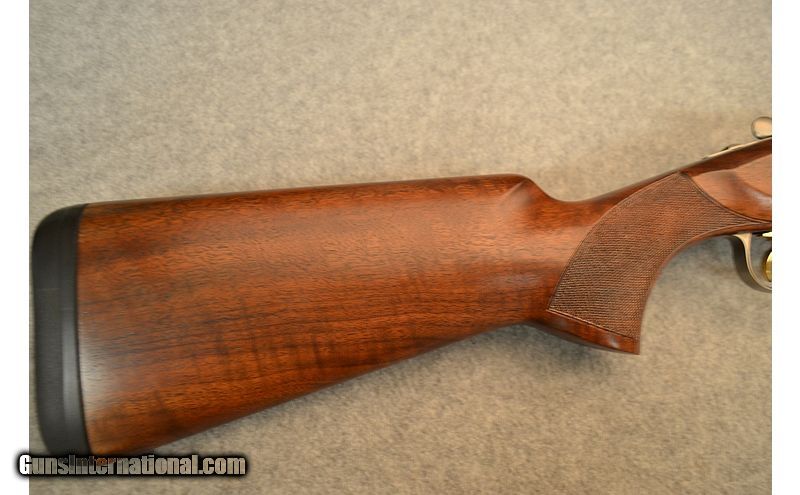 Description: As New, factory fired only SOLD Manufacturer: SN : 09897ZT131 ; made in Japan by Miroku Caliber Info: 12 Gauge Chambers: 3 Metal Condition: As New ; a couple of insignificant fine scratches on bottom receiver lugs, seen in photo Wood Condition: As New Bore Condition: As New Barrels: 32 inches, Ported Over and Under barrels with ejectors; top tang manual safety and barrel selector Triggers: Single mechanical trigger Stock: Factory wood with target pistol grip, right palm swell Stock Dimensions: LOP 15" with pad, adjustable with trigger; DAC 1 1/2" ; DAH 2 1/4 Fore End: Factory matching wood Butt Pad: Factory black rubber recoil pad Weight: 7 lb 12 oz Sights: Target vent rib with white mid- bead and front FO sight Chokes: Browning Invector DS choke system, includes 5-choke set Extras: Factory box with choke set and extra fiber optic sight rods; extra trigger shoes Item Location: Greenville, SC |