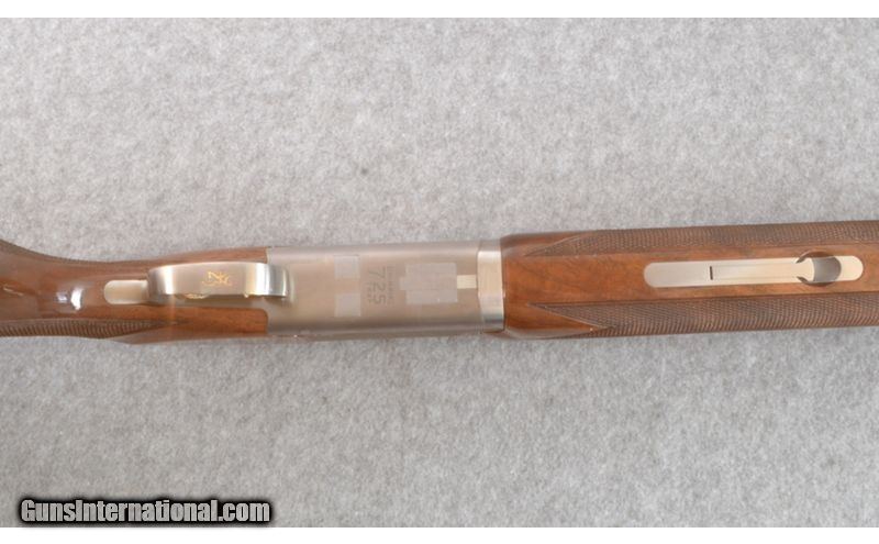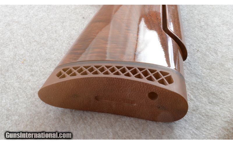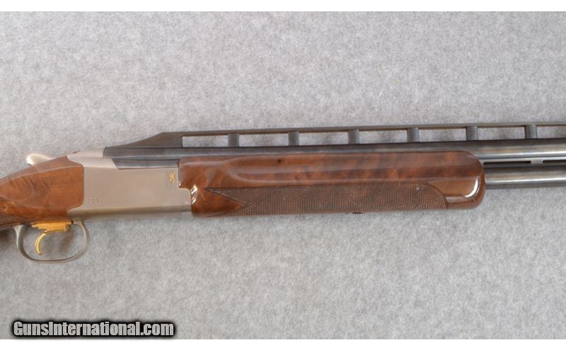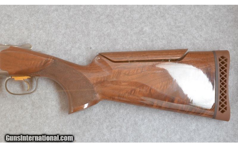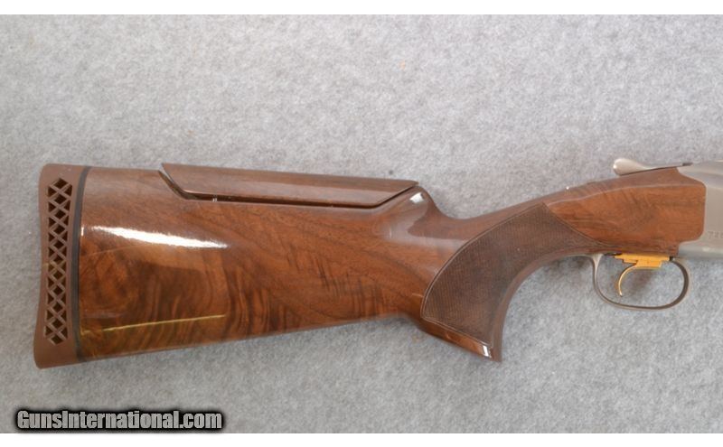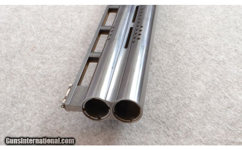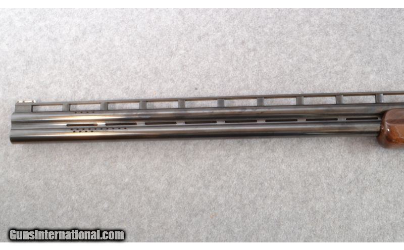 Description: A beautiful trap shotgun that is amazing to look at. 12 Gauge SOLD Chambers: 2 3/4 shells. Metal Condition: Excellent. Wood Condition: Excellent. Bore Condition: Clear and shiny. Barrels: 32 inches. Both barrels are vented near the front end. Triggers: Adjustable gold colored trigger. Fore End: Wood with checked grip. Butt Pad: Rubber. Weight: 9 lb. 4 0z. Sights: Elevated vented rib with white BB mid-barrel and white dot tube front. Chokes: Screw in chokes. Item Location: Lone Tree, CO |