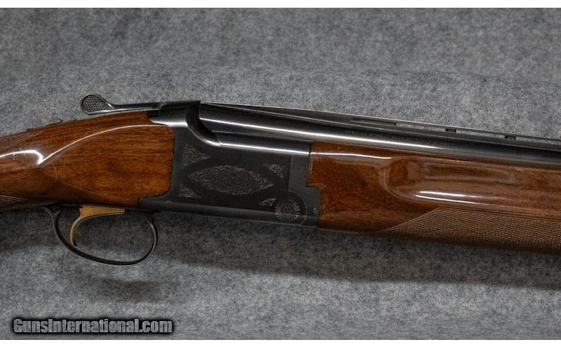 Description: A superb over-under shotgun that excels in the field and on the range. Gloss oil finish, Grade II/III checkered walnut, engraved low-profile steel receiver. Mechanical trigger, Inflex recoil pad, Invector-DS chokes. New 3" Chamber in 12GA. SKU: 4638977 12 Gauge SOLD Chambers: 12 gauge Over/Under with a 3" shell capacity Metal Condition: Very good Wood Condition: Very good Barrels: 30" with a Ventilated Rib Triggers: Factory single trigger Stock Dimensions: "14 1/4"" Length of Pull Gloss oil finish, Grade II/III checkered walnut Fore End: Walnut Butt Pad: Inflex rubber butt pad Weight: 7 lbs Sights: Front Bead Chokes: Five invector-DS Flush chokes Item Location: Grandville, MI |