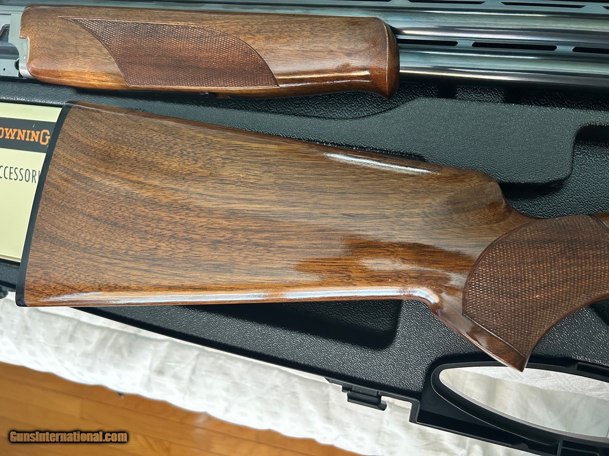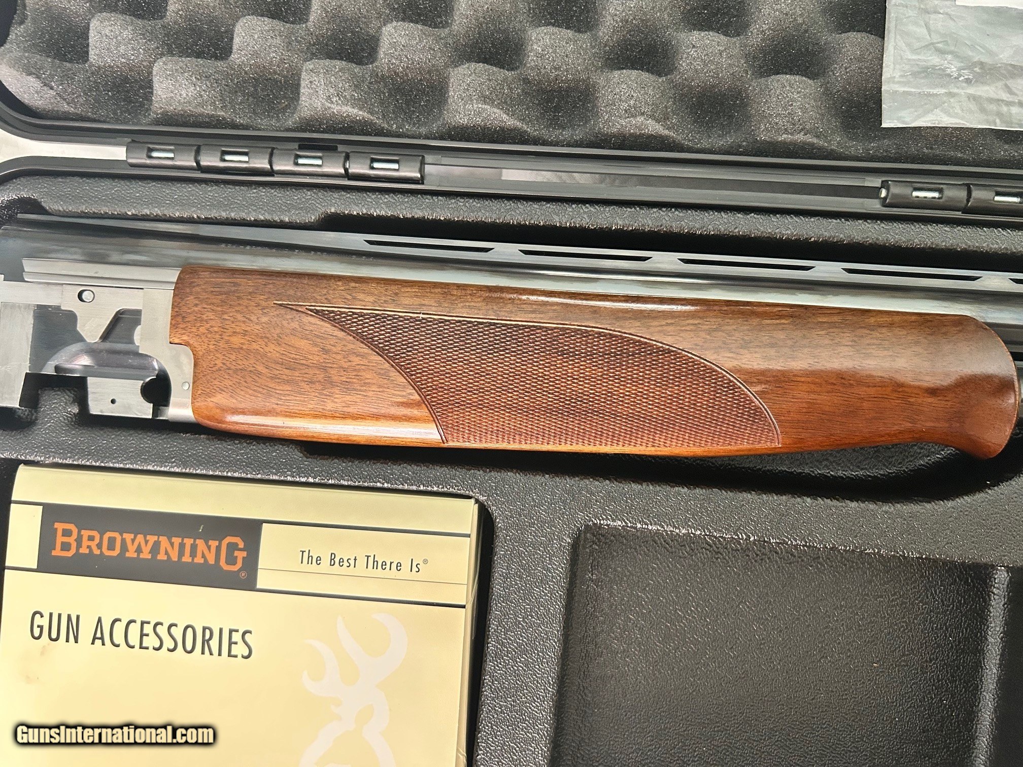 Description: Description: The B525 Sporter 1 12 G will help take you close to the top. The ventilated rib will help you acquire your target as naturally as you shoulder the stock with its 12 mm Inflex II pad. The 4 Invector+ chokes will help you get the best from your gun. Specifications: Top rib (mm) 10 mm Type of rib: Ventilated Choke details Full (F), 3/4 (IM), 1/2 (MOD), 1/4 (IC) Choke model Flush Choke system Invector Barrel finish: Blued, Gloss Finish Barrel length 30" Barrel type Back bore Front Sight White Bead Intermed sight 1 Stock right-handed Type of stock: Pistol stock Stock and forearm finish, Oil finish Stock and forearm material Grade 2 Drop at the comb 36 mm Drop at heel 56 mm Recoil pad Inflex Recoil pad system Footprint 2 Type of forearm: Tulip Delivered accessories: 2 spare chokes (3/4 & FULL), Choke Key, parts for auto safety Packaging ABS 525 Weight (kg) 3.50 Receiver color Grey Receiver finition Nitrided Receveir - detail of the engraving Receiver material Steel Type of trigger Olympic adjustable Choke details Full (F), 3/4 (IM), 1/2 (MOD), 1/4 (IC) Overview: During the making of a B525, the gun moves from one gunsmith to the next to be entirely hand finished, thanks to the expertise acquired over many years by each of the gunsmiths. This is the only shotgun on the market at this price level that is hand-fitted during production to such a high-performance level, making each shotgun truly unique. Fitting important parts (barrel, action frame, forend) is done by hand using traditional methods (using red ochre) to make the Browning B525 the reference in shotguns. The attention paid to detail when manufacturing and fitting every Browning B525 is unique, just like the “Browning feeling”. This is a used item. While we do not test-fire our used firearms, we perform an inspection and function check to ensure that they are fully functional to the best of our ability. Layawy: 1/3 down 90 days Shipping: $80, insurance extra upon Buyer's request Payment: Personal Check, Money Order, Cert. Check, or Zelle randywine2000yahoo (703) 858-2881 Returns without damage or alteration within 3 days of delivery minus a 20% restocking fee SOLD Shotgun Gauge: 12 Gauge Manufacturer: Browning Model: 525 Sporter Serial Number: 42972MT Chambers: 3" & 2 3/4 Ejectors: Yes Condition: Like New Metal Condition: Excellent Wood Condition: Excellent Bore Condition: Excellent Action: Break Triggers: Single selective adj trigger Stock: Black Walnut Stock Comb: 36MM Stock Heel: 56mm Butt Pad: Inflex LOP: 14.5 Rib: Vented Finish: High Gloss Weight: 3.5 kg Sights: Double Bead Manufacture Date: 2006 Chokes: Invector Choke System Engraving: Factory Case: Factory Hard Case |