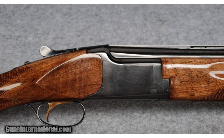 Description: SOLD Caliber Info: 12 Ga. Chambers: 2 3/4"and 3 ". Metal Condition: Shows minor handling marks. Wood Condition: Shows handling and contact marks. Bore Condition: Bright and clean. Barrels: 30". Vented rib. Triggers: Single selective. Stock: Walnut with checkered pistol grip. Stock Dimensions: 14" L.O.P. : 1 1/2" D.A.C. : 2 1/2" D.A.H. Fore End: Wrap around checkering. Deeley release. Butt Pad: Browning rubber. Weight: 7 Lbs. 14 Oz. Sights: Brass front bead. Chokes: Fixed. Full and Full. Item Location: Billings, MT |