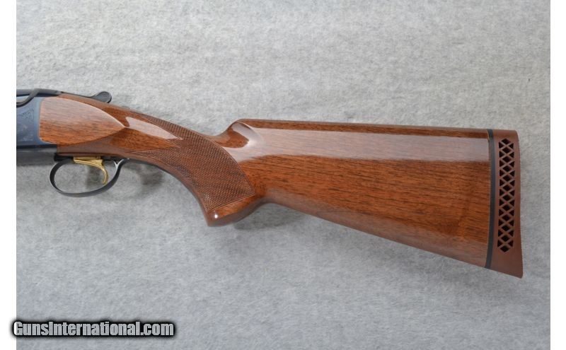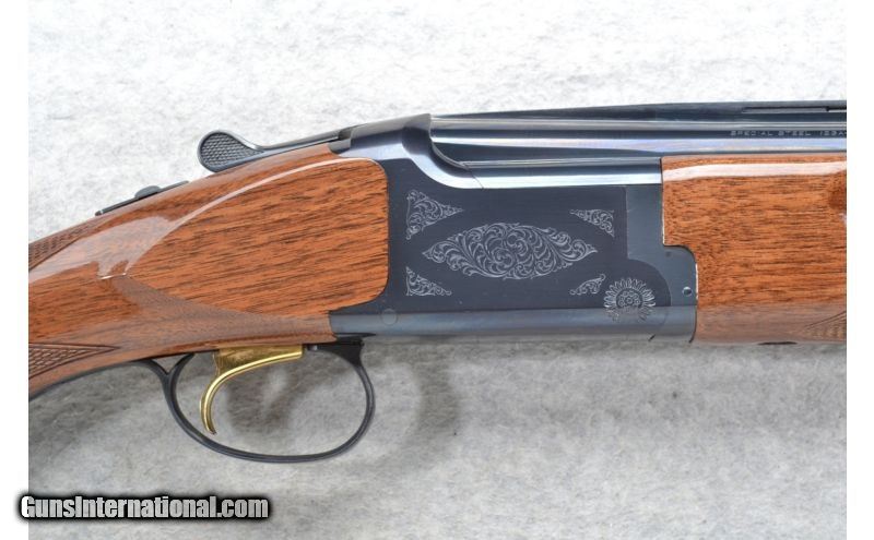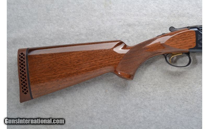 Description: This Browning Model Citori over and under 12 Ga. shotgun comes with 28 inch barrels and 3 inch chambers. It has the Invector Choke Tube System and comes with 3 chokes, IC, M and F. With it's classic Browning engraved receiver this popular shotgun would be a great add to anyones collection. In excellent condition it comes in it's original box with Instruction Manual. SOLD Manufacturer: Made in Japan. Caliber Info: 12 Ga. Chambers: 2 3/4 inch or 3 inch. Metal Condition: Excellent. Wood Condition: Excellent with a couple of minor handling marks. Bore Condition: Bright and shiny. Barrels: 28 inches with a ventilated rib. Triggers: Single golden. Stock: Diamond checkered grip walnut roundknob. Stock Dimensions: LOP 14 1/4 inches. Fore End: Diamond checkered grip walnut with finger grooves. Butt Pad: Browning rubber recoil pad. Weight: 8 lbs. 0 oz. Sights: Metal front bead. Chokes: Tubes. Item Location: Richfield, WI |