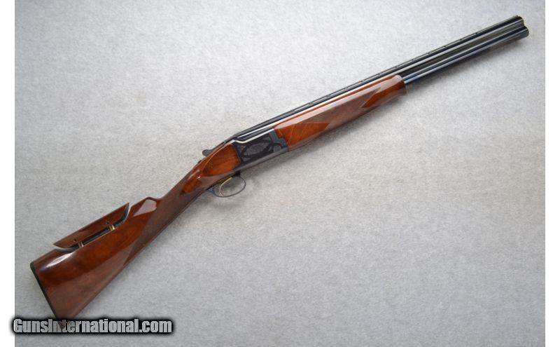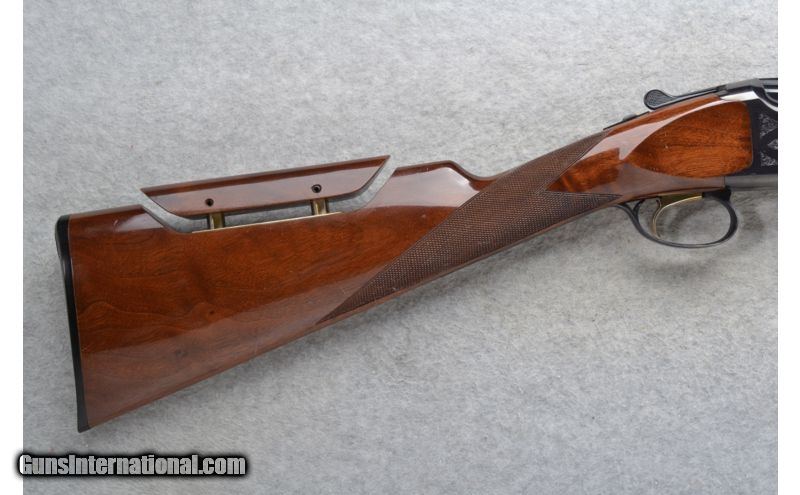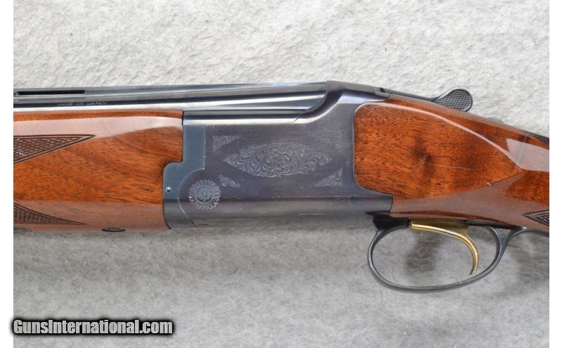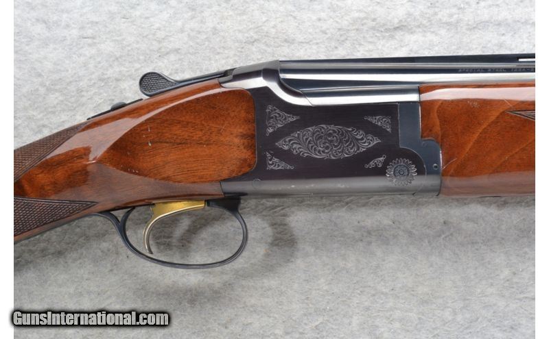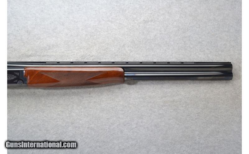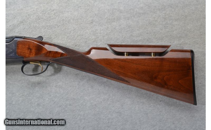 Description: This Browning Model Citori is a 12 Ga. over and under shotgun with 2 3/4 inch chambers. It has 24 inch barrels with a top barrel ventilated rib. A checkered grip walnut straight stock with an adjustable comb. Browning Citori engraved receiver. The ventilated rib does have a minor dent in it. In overall good condition it comes as is with two choke tubes. No box. SOLD Manufacturer: Made in Japan. Caliber Info: 12 Ga. Chambers: 2 3/4 inch. Metal Condition: Very good. Very minor handling marks and wear. Very small dent in the ventilated rib 7.5 inches down from the bore. Wood Condition: Good with handling marks. Bore Condition: Bright and shiny. Barrels: 24 inches with a ventilated rib. Triggers: Single Golden. Stock: Checkered grip walnut straight stock with an adjustable comb. Stock Dimensions: LOP 14 inches. Fore End: Checkered grip Schnabel. Butt Pad: Browning black plate. Weight: 7 lbs. 3 oz. Sights: Metal front and middle bead. Chokes: Tubes. Comes with two CL. Item Location: Richfield, WI |
