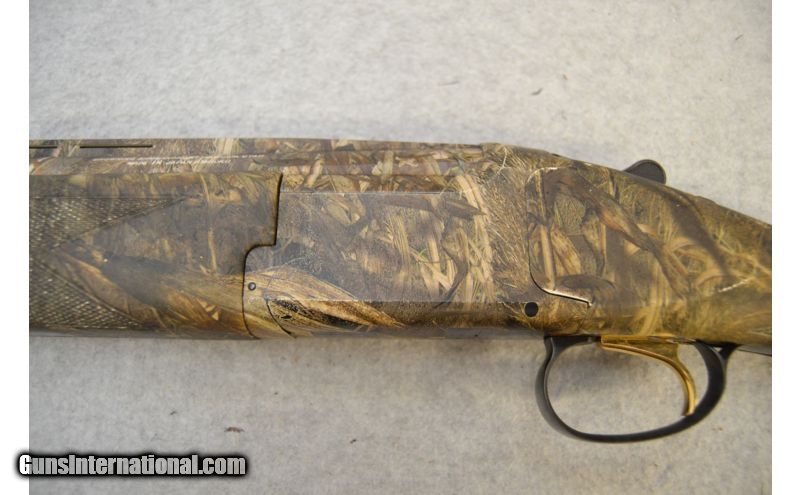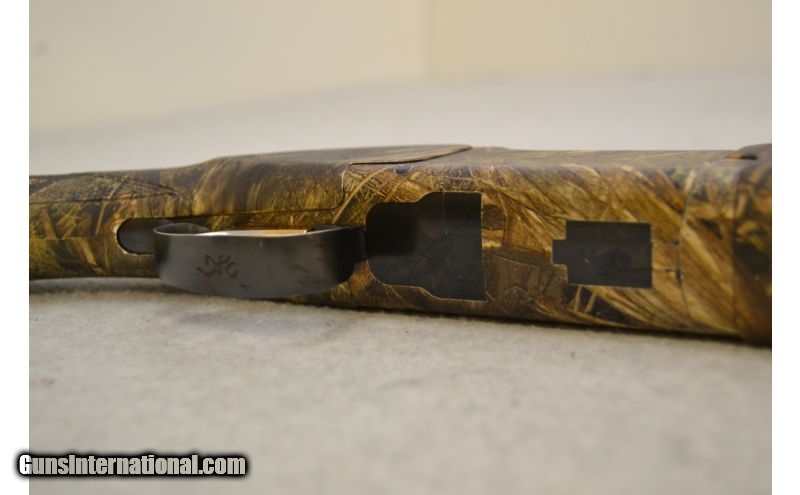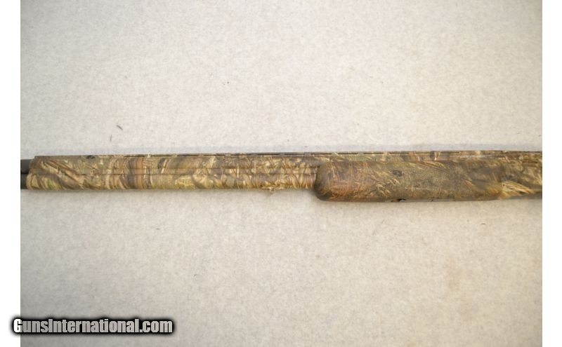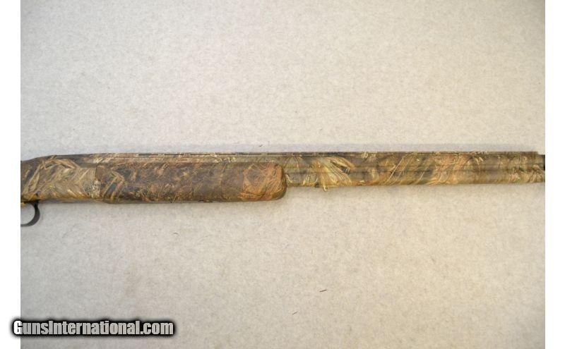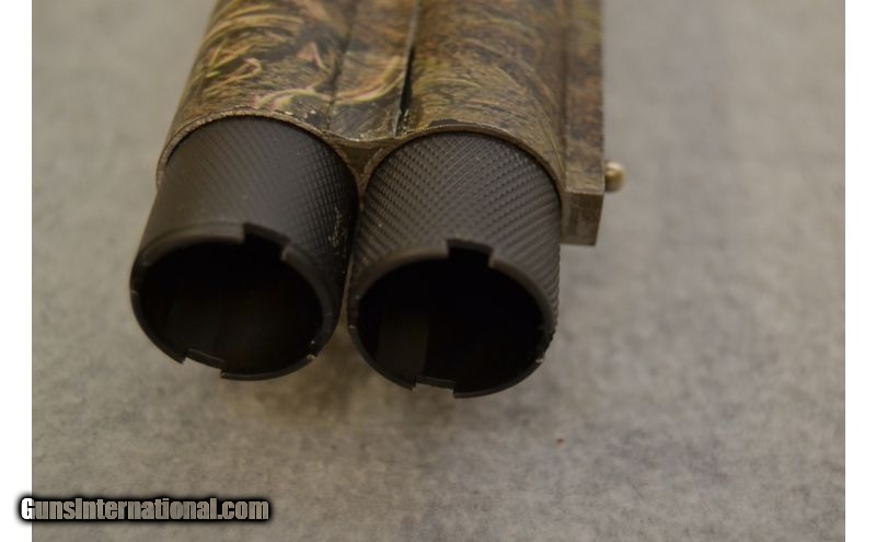 Description: SOLD Caliber Info: 12 Gauge Chambers: 3 1/2' Shells Metal Condition: Good overall; the camo job is thining on the sharper edges Wood Condition: Seem to be in good condition Bore Condition: Excellent; no corrosion or bulges and shines Barrels: 28" Ventilated Rib Triggers: Single gold colored with tang mounted barrel selector Stock: Mossy Oak Duck Blind camo Stock Dimensions: 14 1/2" LOP Fore End: Mossy Oak Duck Blind camo with side panel diamond pattern checkering Butt Pad: Ventilated black rubber Weight: 8lbs Sights: Matte stainless front bead Chokes: Invector-Plus style with full, modified, & improved cylinder tubes included Extras: Includes the factory box, the three (3) choke tubes, and choke wrench Item Location: Green Bay, WI |