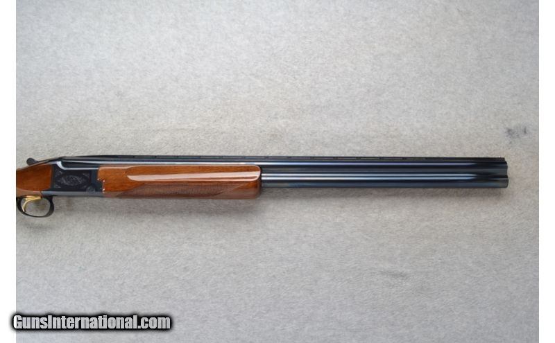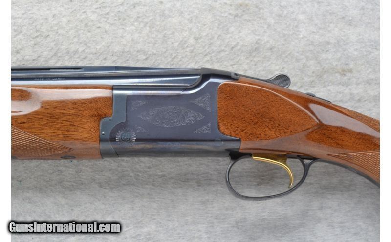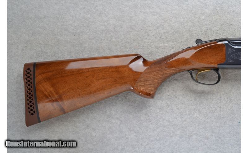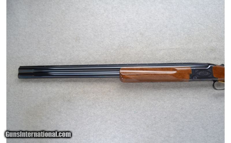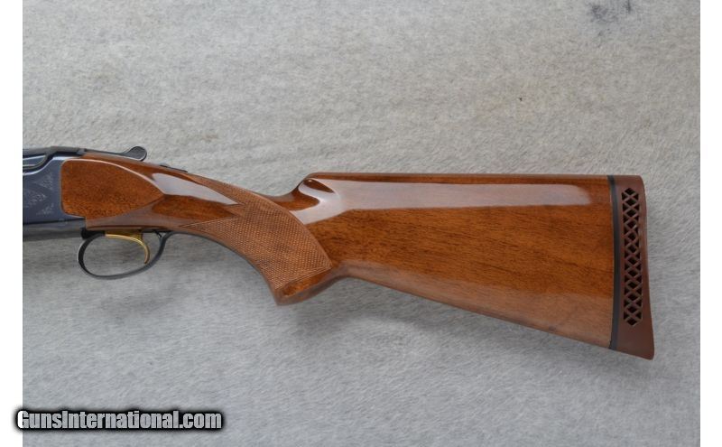 Description: This Browning Model Citori is a 12 Ga. Over and Under shotgun. It has 28 inch barrels with ejectors and a top barrel ventilated rib. A metal bead front sight. With 3.5 inch chambers it has Invector-Plus choke. The stock is a checkered walnut pistol grip and the forearm has finger grooves. It has a Single Select Trigger. The receiver is lightly engraved. SOLD Manufacturer: Made in Japan. Caliber Info: 12 Ga. Chambers: 2 3/4 inch, 3 inch or 3 1/2 inch Over and Under with ejectors. Metal Condition: Excellent. Wood Condition: Excellent with a few minor handling marks. Bore Condition: Bright and shiny. Barrels: 28 inch blued with a top barrel ventilated rib. Triggers: Golden. Single Select Trigger. Stock: Checkered walnut pistol grip. Stock Dimensions: LOP 14 1/4 inches. Fore End: Checkered grip walnut with finger grooves. Butt Pad: Browning brown rubber recoil pad. Weight: 8 lbs. 6 oz. Sights: Metal front bead. Chokes: Invector-Plus choke. Comes with M & IC tubes. Item Location: Richfield, WI |