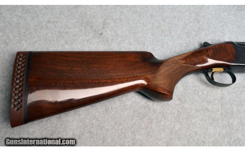 Description: This is a Browning Citori 12 gauge over/under shotgun with 26 inch deep blued barrels. The blue on the barrels is in great condition. The receiver is in excellent condition. The walnut stock and semi-beaver tail forearm have nice mid-grade wood. The butt stock has a checkered pistol grip and the forearm has checkering and finger grooves. This would make a nice addition to an upland bird shotgun collection. SOLD Manufacturer: Browning sources indicate this shotgun was manufactured in 1991. Caliber Info: 12 Ga. Chambers: 2 3/4 and 3 inch. Metal Condition: Very good with few handling marks. Wood Condition: Very good with few handling marks. Bore Condition: Very good, bright and shiny. Barrels: 26 inch deep blued with vented rib. Triggers: Gold colored factory trigger. Stock: High gloss checkered walnut. Stock Dimensions: 14 1/4 inch LOP. Fore End: High gloss checkered walnut. Butt Pad: Browning rubber recoil pad. Weight: 8 Lbs. Sights: White front and mid beads. Chokes: Fixed choke. Modified and Full. Item Location: Hazelwood, MO |