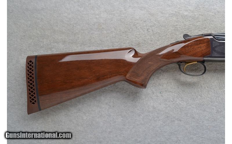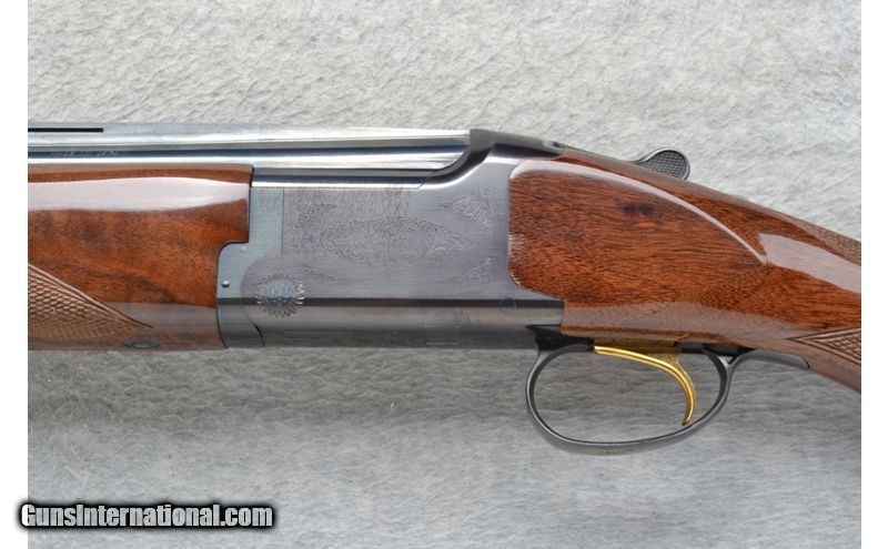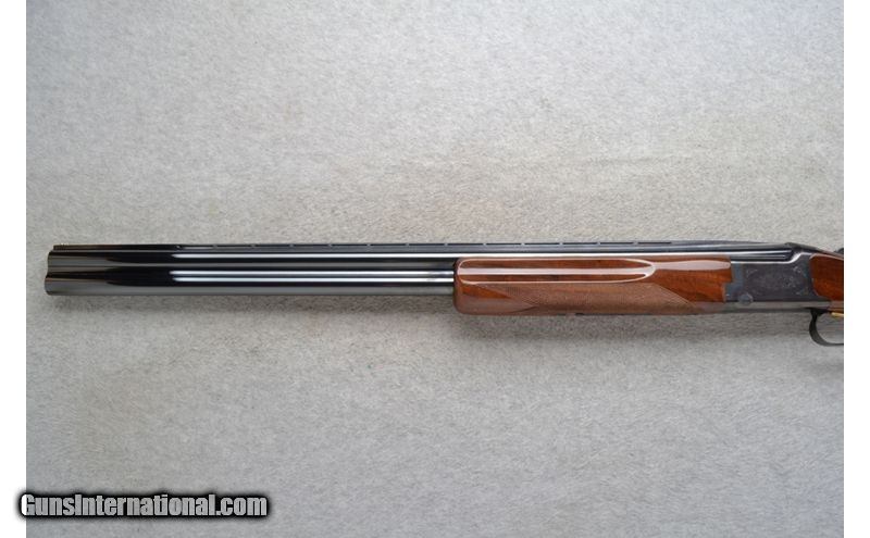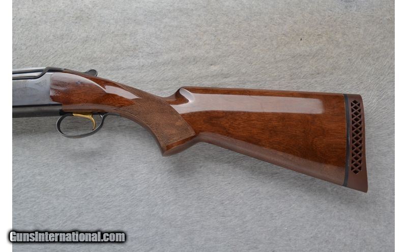 Description: This Browning Model Citori is an Over & Under 12 Ga. shotgun. It has 28 inch barrels with ejectors and a top barrel ventilated rib. A metal front bead sight. With 3 inch chambers it takes Invector Plus choke and comes with a M and IC tube. It has a Single Select Trigger. The butt stock is a checkered grip walnut pistol grip. The forearm is a checkered grip walnut with finger grooves. The receiver is lightly engraved. 12 Gauge SOLD Chambers: 2 3/4 inch and 3 inch Over & Under Metal Condition: Excellent. Wood Condition: Very good. Has some light handling marks. Bore Condition: Bright and shiny. Barrels: 28 inch barrels with ejectors and a top barrel ventilated rib. Triggers: SST Stock Dimensions: LOP 14 1/8 inches. Fore End: Checkered grip walnut with finger grooves. Butt Pad: Browning rubber recoil pad. Weight: 8 lb. 2 oz. Sights: Metal front bead. Chokes: Invector Plus choke. Comes with a M and IC tube. Item Location: Richfield, WI |