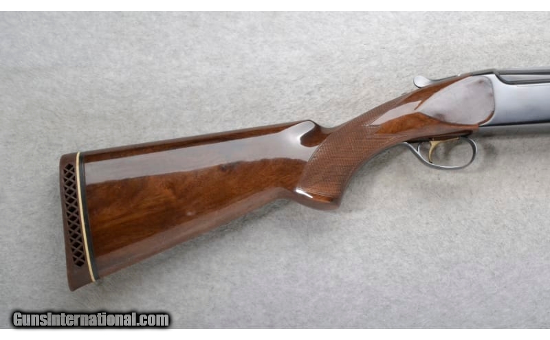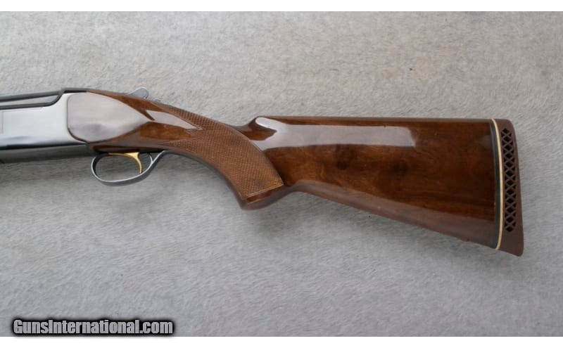 Description: This Browning Model Citori is an over and under 12 Ga. shotgun. It has 28 inch barrels with ejectors and a top barrel ventilated rib. A metal bead front sight. With 3 inch chambers it has fixed Full and Modified chokes. The butt stock is a checkered grip walnut pistol grip. The forearm is a checkered grip walnut with finger grooves. SST. Made in Japan. 12 Gauge SOLD Chambers: 3 inch. Metal Condition: Excellent. Wood Condition: Good. Light handling marks. Bore Condition: "Clean, bright and shiny. Barrels: 28 inch barrels with ejectors and a top barrel ventilated rib. Triggers: SST Stock Dimensions: LOP 14 inch. Fore End: Checkered grip walnut with finger grooves. Butt Pad: Browning brown rubber recoil pad. Weight: 7 lb. 10 oz. Sights: Metal front bead. Chokes: Fixed Full and Modified choke. Item Location: Richfield, WI |