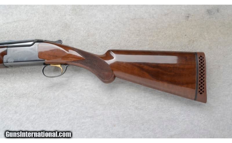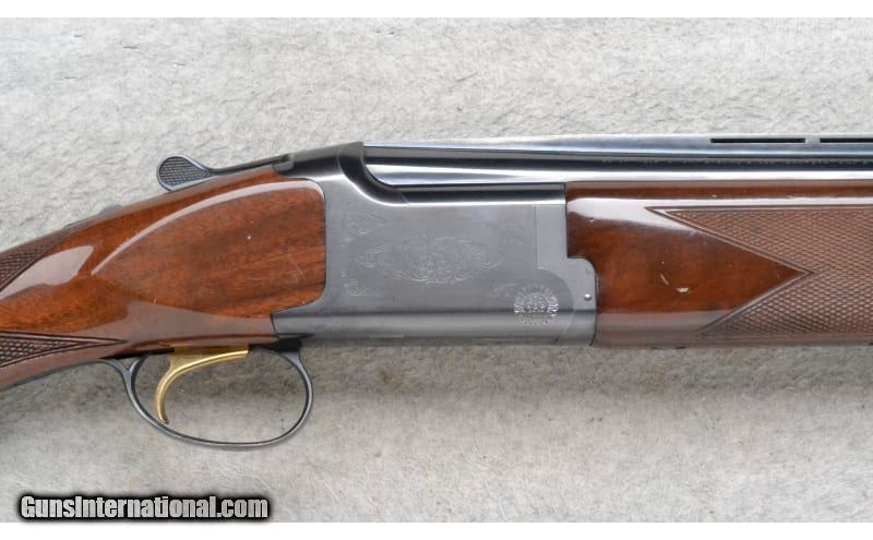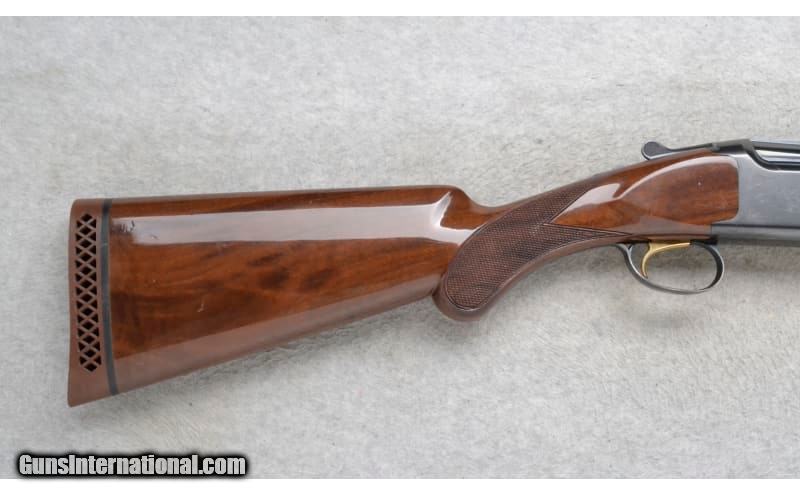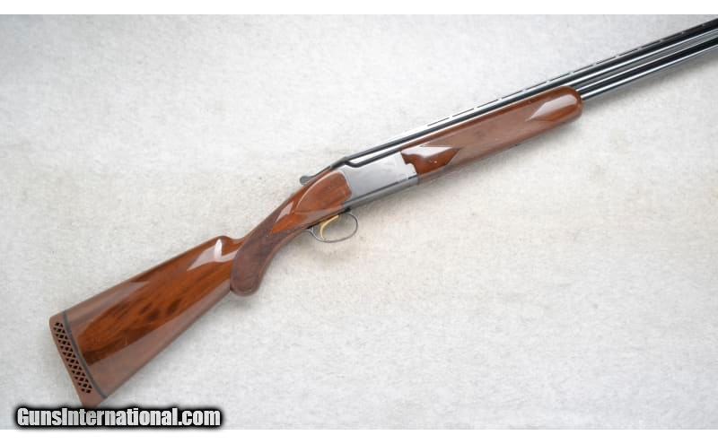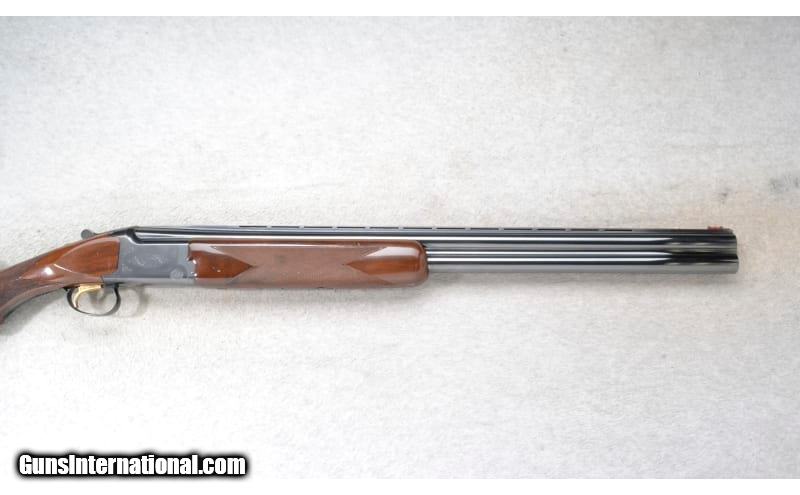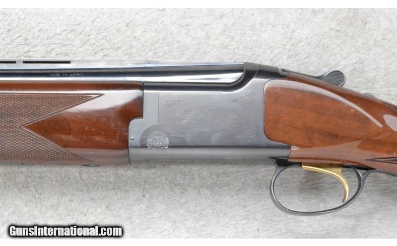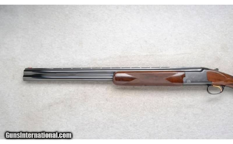 Description: This Browning Model Citori is an over and under shotgun in 12 Ga. It has 26 inch barrels with ejectors and a top barrel ventilated rib. A red high visibility front sight and a brass middle bead sight. With a 3 inch chamber it has Invector-Plus Choke and comes with 3 choke tubes. Single Select Trigger. The butt stock is a checkered grip walnut round knob pistol grip. The forearm is a checkered grip walnut. Made in Japan. 12 Gauge SOLD Chambers: 3 inch. Metal Condition: Barrel is very good. Receiver has Some very minor scratches and very minor freckling spots. Wood Condition: Good. Has light handling marks. Bore Condition: Shiny. Barrels: 26 inch barrels with ejectors and a top barrel ventilated rib. Triggers: SST Stock Dimensions: LOP 14 1/4 inches. Fore End: Checkered grip walnut. Butt Pad: Browning brown rubber recoil pad. Weight: 7 Lb. 14 Oz. Sights: Red high visibility front. Brass middle bead. Chokes: Invector-Plus Choke. Comes with 3 choke tubes. Item Location: Richfield, WI |