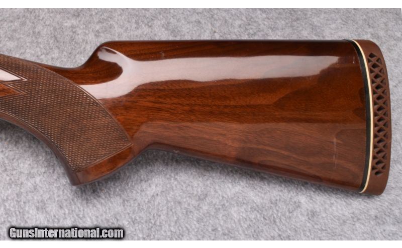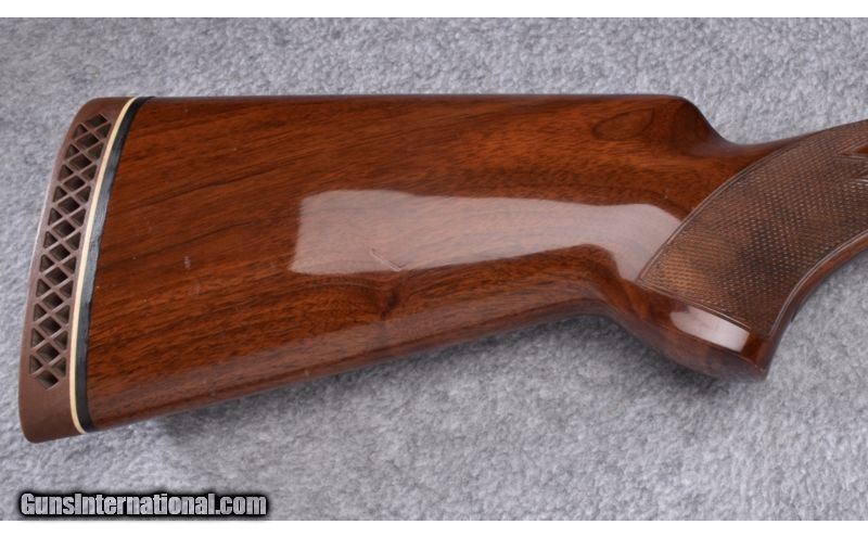 Description: Wood shows some light use marks and buttstock has been professionally shortened to 13 3/8" LOP. Blue and bores remain excellent. Japan manufacture. No box. SOLD Manufacturer: S/N 01733PTXXX Caliber Info: 12 GA Chambers: 2 3/4" with Ejectors Metal Condition: Excellent Wood Condition: Very Good Bore Condition: Excellent Barrels: 28" Vent Rib Triggers: Factory - Checkered with Selective Safety Stock: Checkered Walnut Pistol Grip Stock Dimensions: 13 3/8" LOP Fore End: Checkered Walnut Wide Beavertail Butt Pad: Brown Vented Rubber Weight: 8 LB Sights: White Front Bead with White Mid-Bead Chokes: Invector Choke Tubes Item Location: Wheeling, WV |