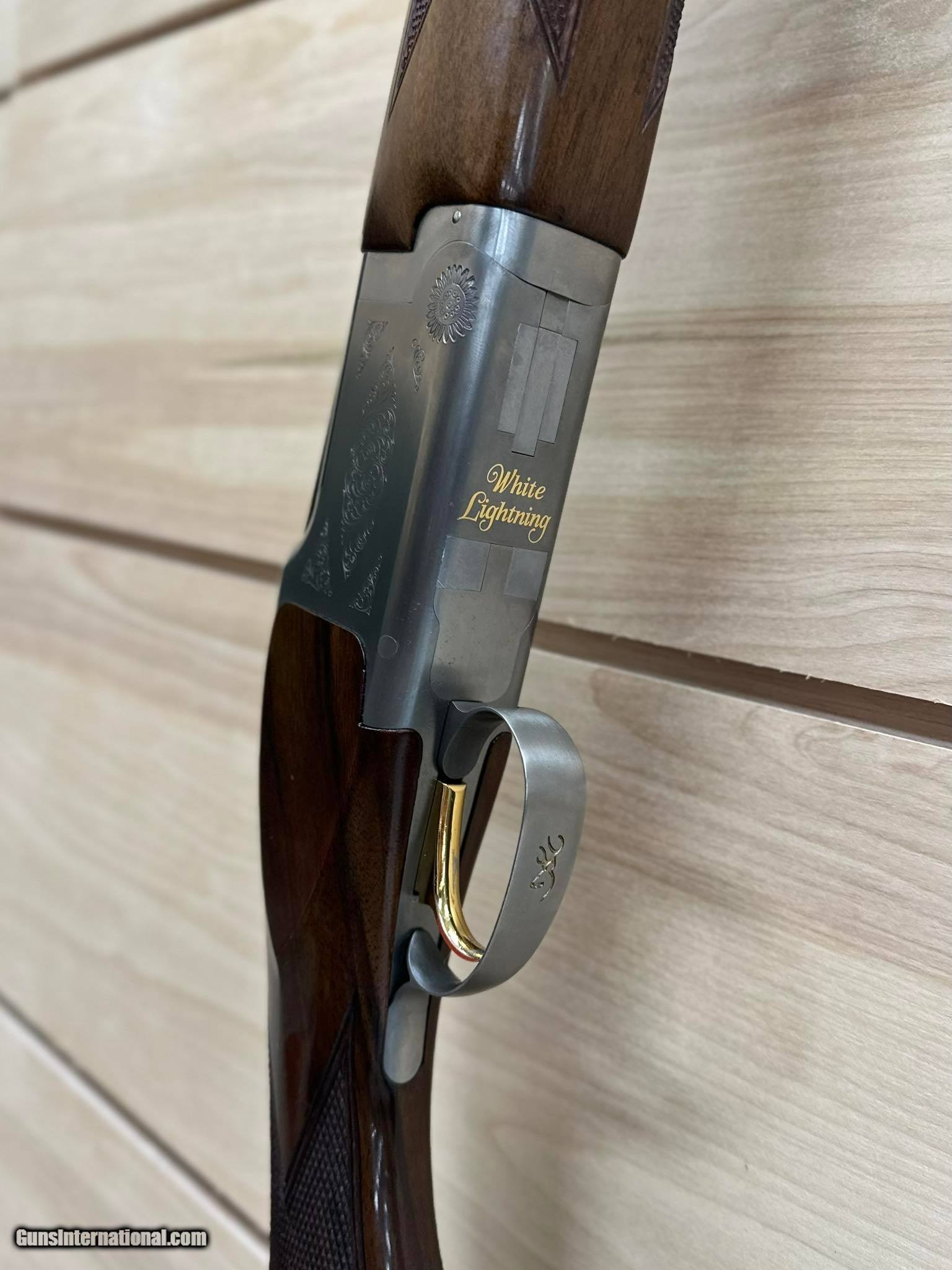 Description: Guns Listing ID: 868738 The perfect over and under shotgun for pheasant and other upland game. The steel receiver has a durable silver nitride finish with intricate engraving. Polished blued barrels, oil finish grade III/IV walnut, extended black band Invector-Plus choke tubes. One of the most representative examples of Browning over and under shotgun excellence is the Citori Lightning. The Lightning embodies the tried-and-true features that make a Citori the classic field gun by which all others are judged. The handsome White Lighting varies in one significant way, this version of our long running favorite features a durable receiver coating process called a \"silver nitride,\" rather than the traditional deep blued finish. THIS FIREARM IS SHIPPED WITH A COMPLIMENTARY SOFT CASE. SOLD Manufacturer: BROWNING Model: CITORI Condition: Used - Non-Certified Barrels: 28 BARREL Gauge Info: 12 GA Finish: BLACK /W WOOD STOCK |