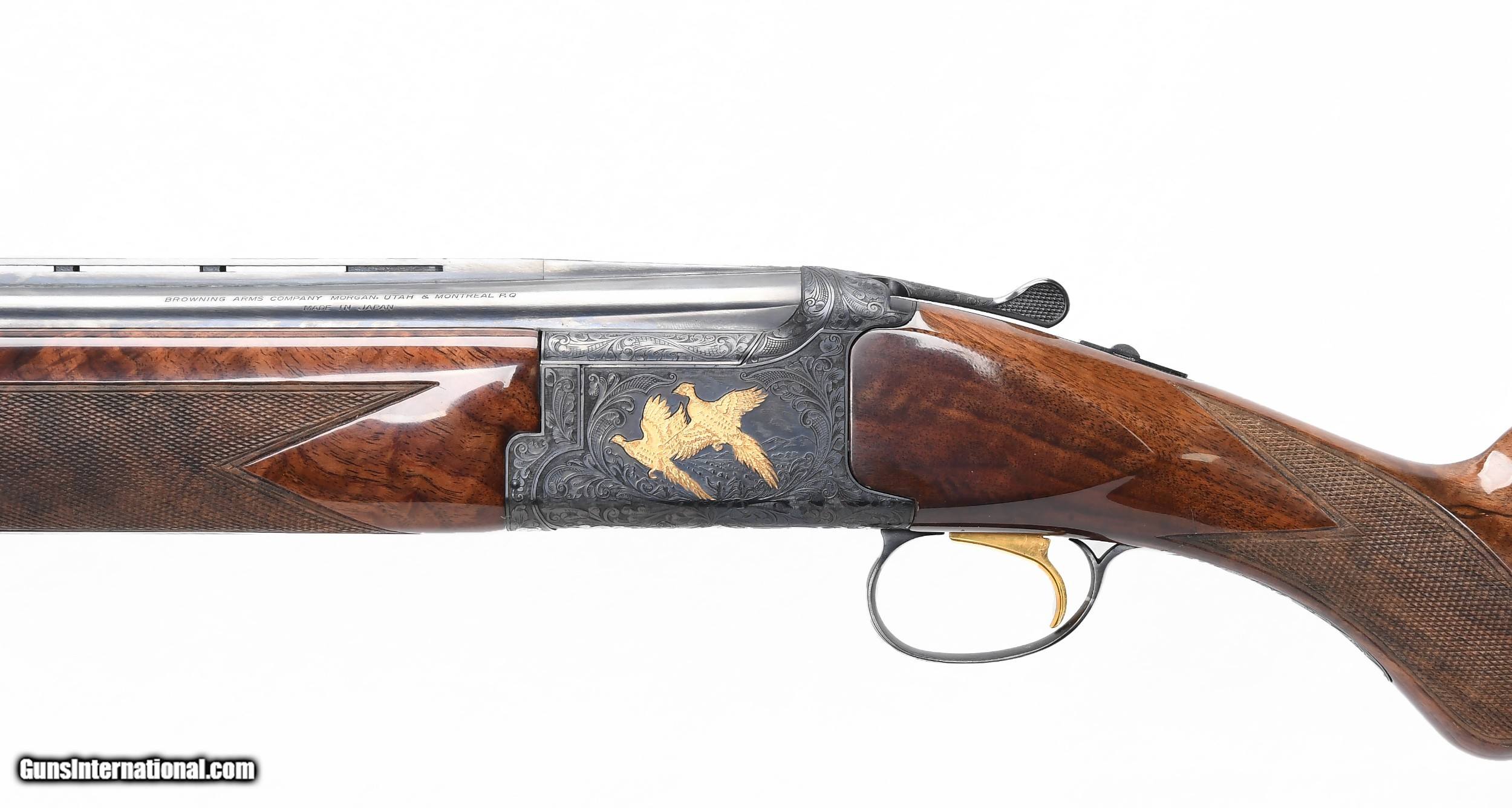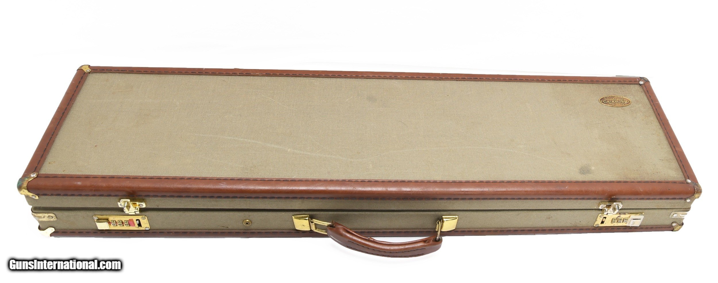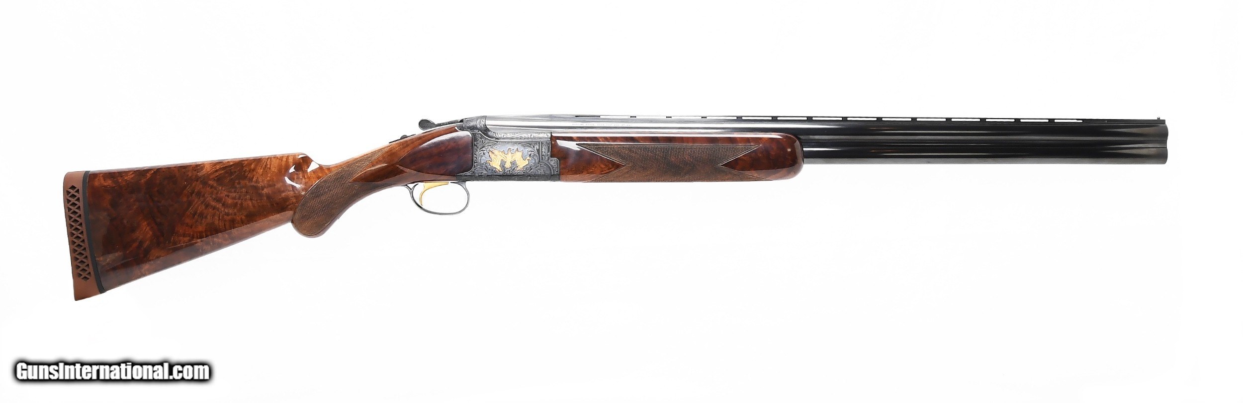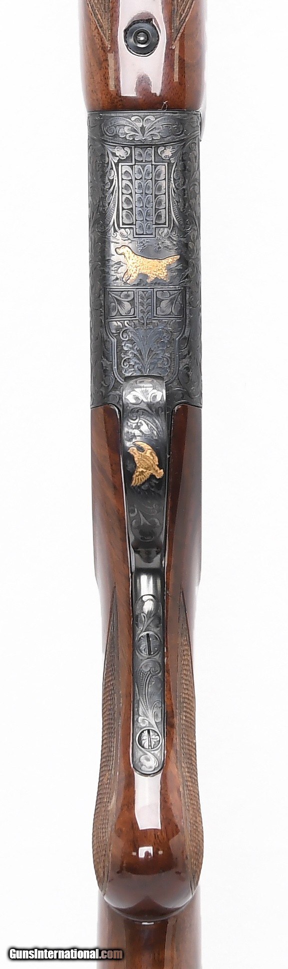 Description: Browning Citori Lightning Hunter Gr VI 12 gauge O/U shotgun with Invector Chokes. Made in 1992 this model has long tang trigger guard with round pistol grip, narrow field forearm, and standard Invector chokes. 28” barrels with vent rib and chambered for 2 ¾” & 3” shells. Single selective trigger. Grade VI game scene engraving on a blue frame with gold birds. The stock and forearm and made from highly figured walnut. The length of pull is 14 ¼” with 1 ½ DAC and 2 ½” DAH and a slight cast favoring a right hand shooter. Weight is 8 lbs. 4 oz. The gun balances nicely between the hands. All finishes are original and in 98%+ condition with the single exception of a small crack near the bottom tang on the left side of the pistol grip (see photo). The gun comes cased in a Browning luggage case the other three choke tubes and wrench. $3,100.00 SN: 14631NY953 SOLD |