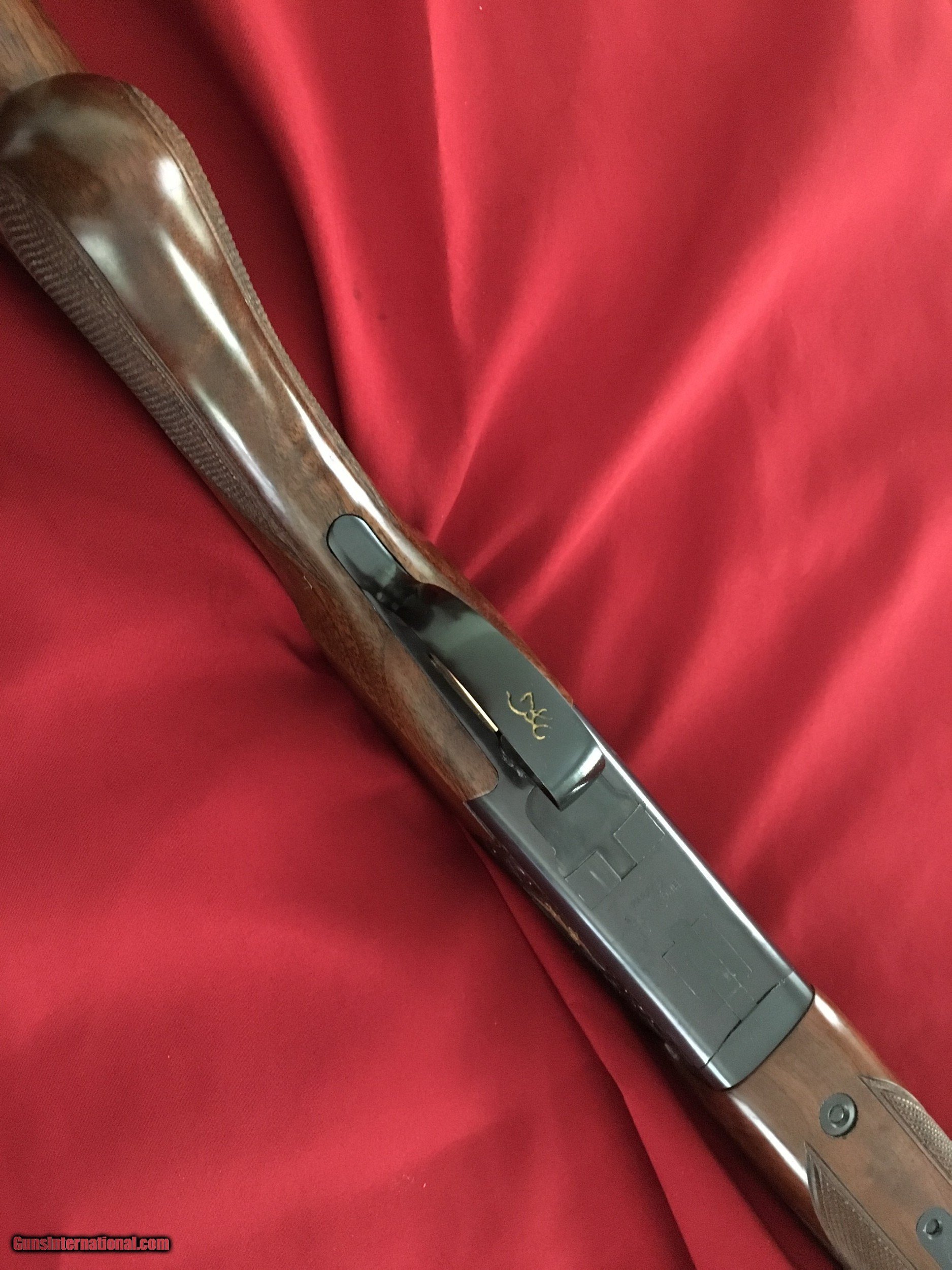 Description: Browning Citori 12 Gauge Banquet Gun . Invector plus , 26 " barrels , 2 3/4 " and 3 " . Beautiful Wood 1 5/8 " x 2 1/2 " x 14 3/8 ". Geese and Duck solid Gold inlays . 1994 gun in excellant condition inside and out . Solid and tight . SOLD |