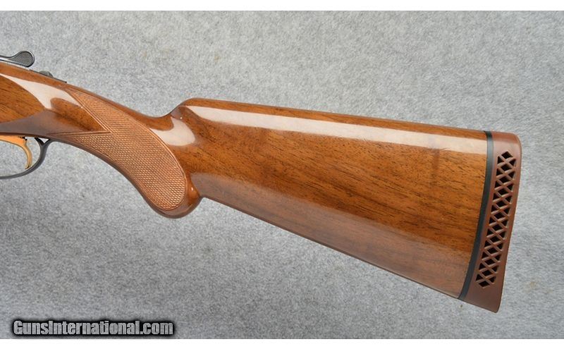 Description: Very High condition. Shows a few light handling marks, few pinpoint freckles. Includes manual and 3 choke tube set and tool. 12 Gauge SOLD Chambers: 3 Inch Metal Condition: Polished Blue Wood Condition: "Walnut, Round Knob Pistol Grip Bore Condition: Bright Barrels: 28 Inch Triggers: Single Select Stock Dimensions: 14 1/4" LOP Fore End: "Rounded Tip, Checkered Walnut Butt Pad: Factory Recoil Pad Weight: 8 lbs. 1 oz. Sights: "Vent Rib, Metal Bead Chokes: "Full, Modified and Imp. Cylinder, Invector Plus Choke Tubes Item Location: Buda, TX |