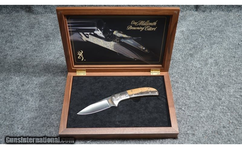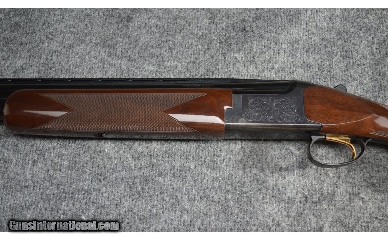 Description: Shotgun finish and bore are in excellent condition. Wood furniture is unblemished. Action is smooth. Trigger is crisp. Shotgun comes with the original box and chokes along with a Browning commemorative fixed blade knife. 12 Gauge SOLD Metal Condition: Excellent Wood Condition: Excellent Bore Condition: Excellent Barrels: 28 Weight: 8.3 lbs. Sights: Front bead sight Item Location: Gainesville, VA |