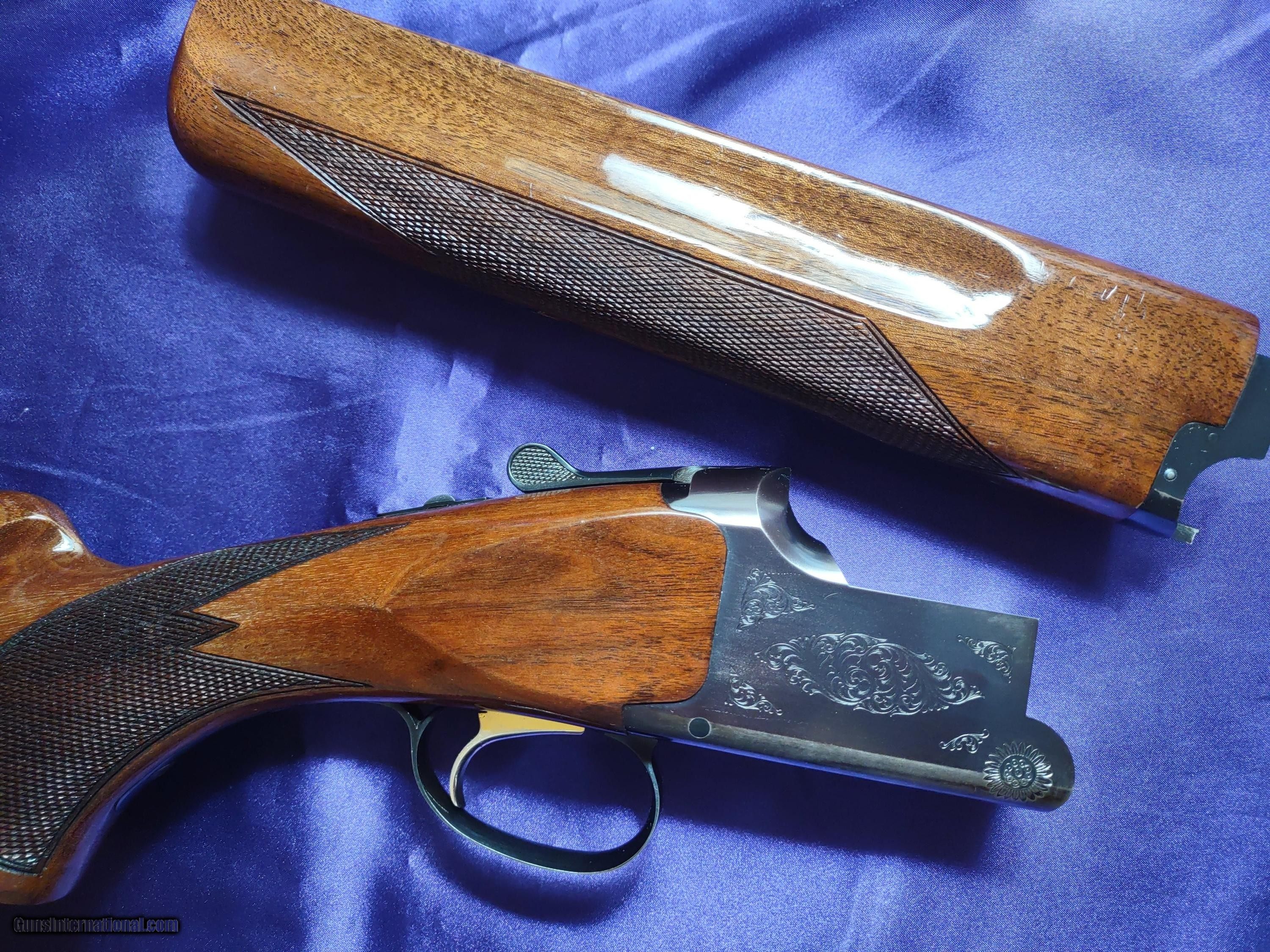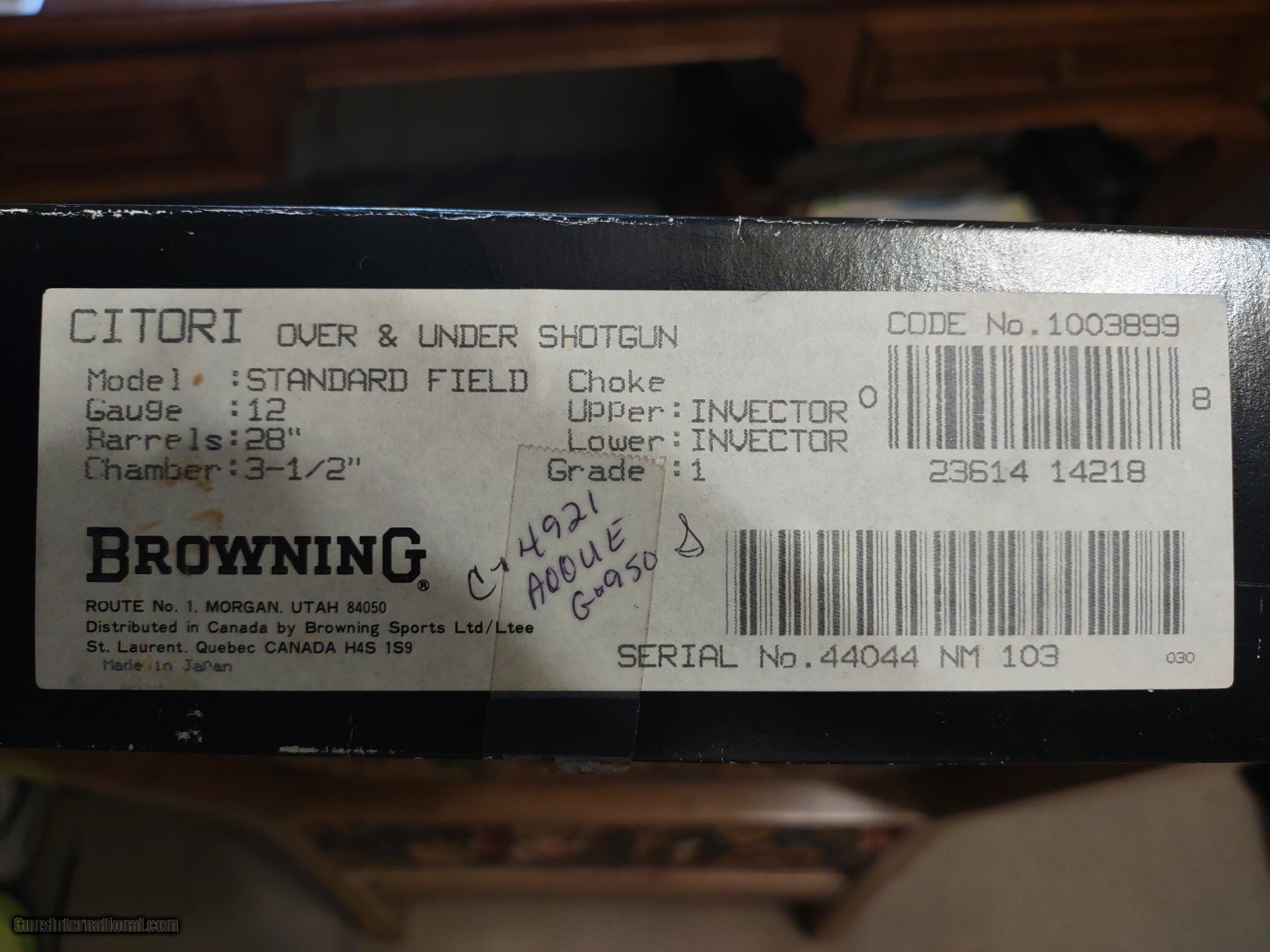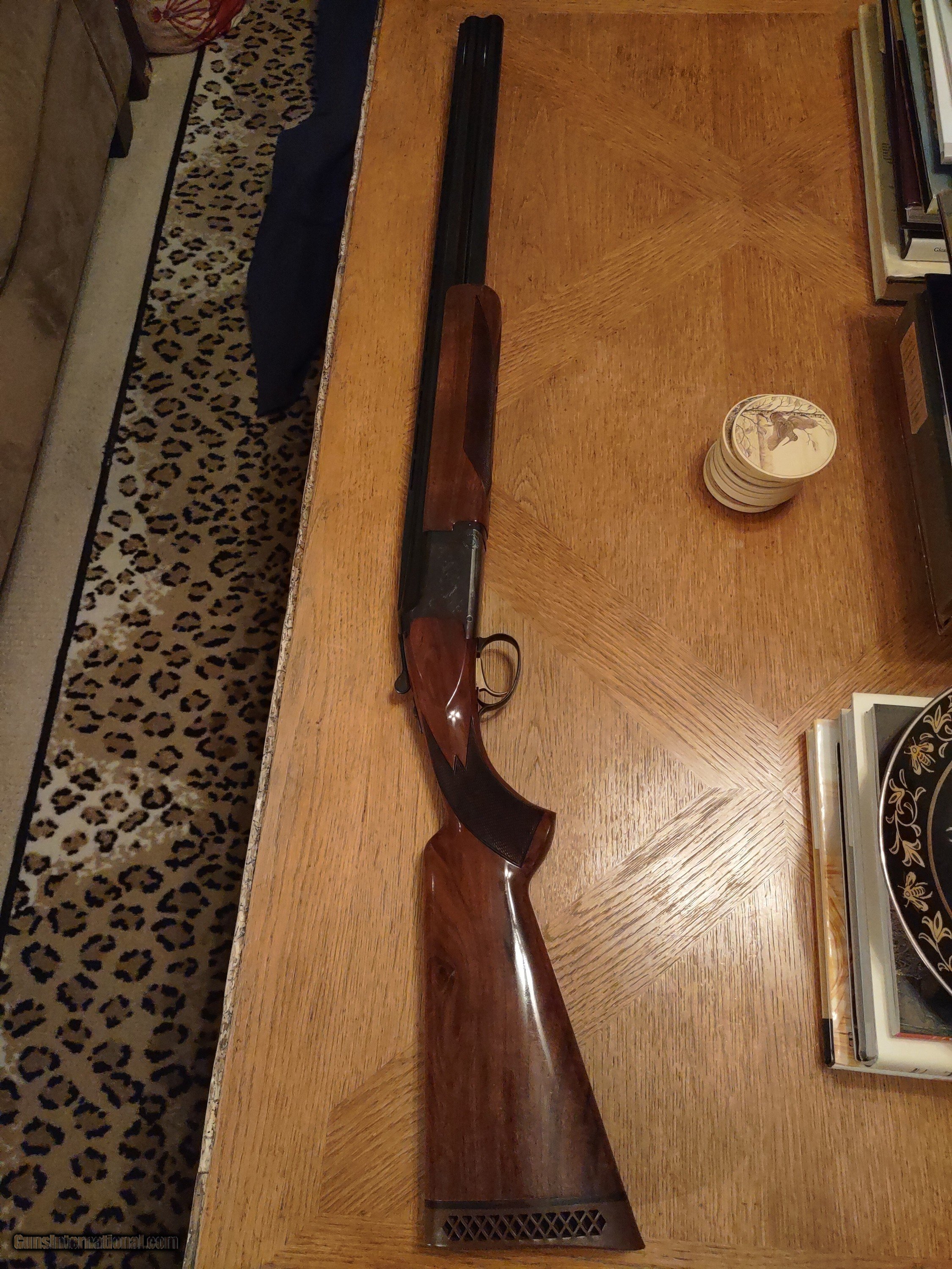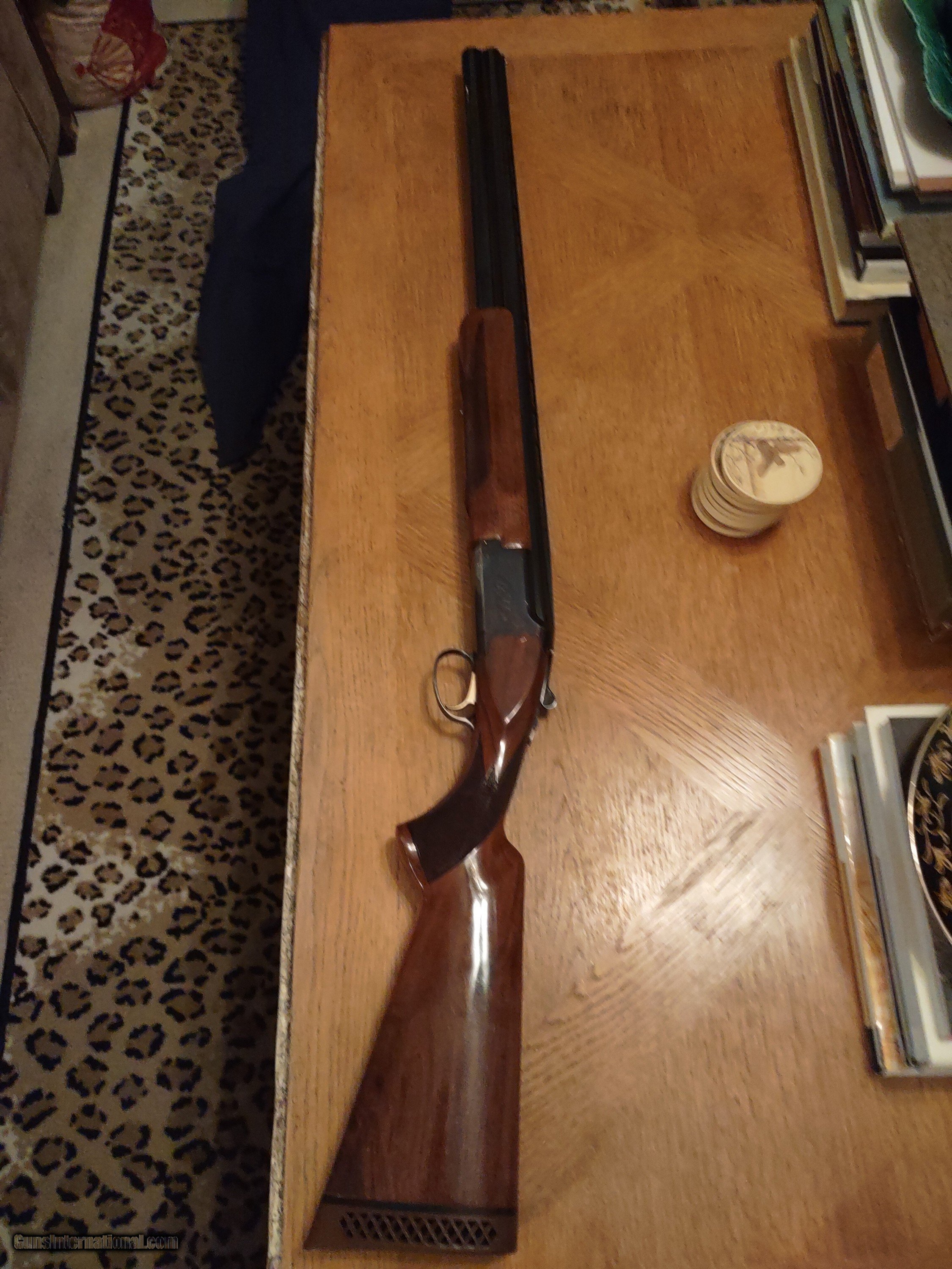 Description: BROWNING ARMS CITORI over/under standard field grade I shotgun made in late 1990 in Japan in 12 gauge with rare 28" barrels with flawless glossy bore, vented scrolled rib, 3 INVECTOR chokes (F, M, IC), bead front sight, Browning choke wrench, factory Browning owner's manual, gold trigger, 4 matching serial numbers, factory original recoil pad, select ejectors, tang safety and almost impossible to find 3 1/2" CHAMBERS! (configuration code 103). In addition, this masterpiece comes with 100% original deep blu finish and pristine pistol grip checkered walnut stock/forearm. This overall shotgun is 99% condition with any blemishes rated as very very minor. This firearm comes delivered in the factory original black Browning box and wrapped in the original shipping box. Both boxes have date and serial number. The overall length is 45 1/4", the LOP is 14 3/4", the drop at comb is 1 5/8" and the drop at heel is 2 1/2". The price is $2600 including UPS shipping to the FFL dealer near you. Call or text me at 318-780-4242 if you are interested. Shotgun Gauge: 12 Gauge Manufacturer: Browning Model: Citori Serial Number: 44044NM103 Barrel Length: 28 Bore Info: bright and glossy Chambers: Excellent Ejectors: Yes Condition: Excellent Metal Condition: Excellent Wood Condition: Excellent Bore Condition: Perfect, glossy Barrels: Over/under Barrel Type: shotgun Action: Semi-automatic Triggers: single, gold Stock: Checkered walnut Stock Comb: 1 5/8 Stock Heel: 2 1/2 Fore End: factory Butt Pad: Factory original LOP: 14 3/4 Rib: scrolled, vented Finish: Blu Sights: Front bead Manufacture Date: 1990 Chokes: F, M, IC Engraving: light, receiver Extras: factory boxes, chokes, manuals Item Location: Shreveport, Louisiana Price: $2,600.00 Contact Seller |
