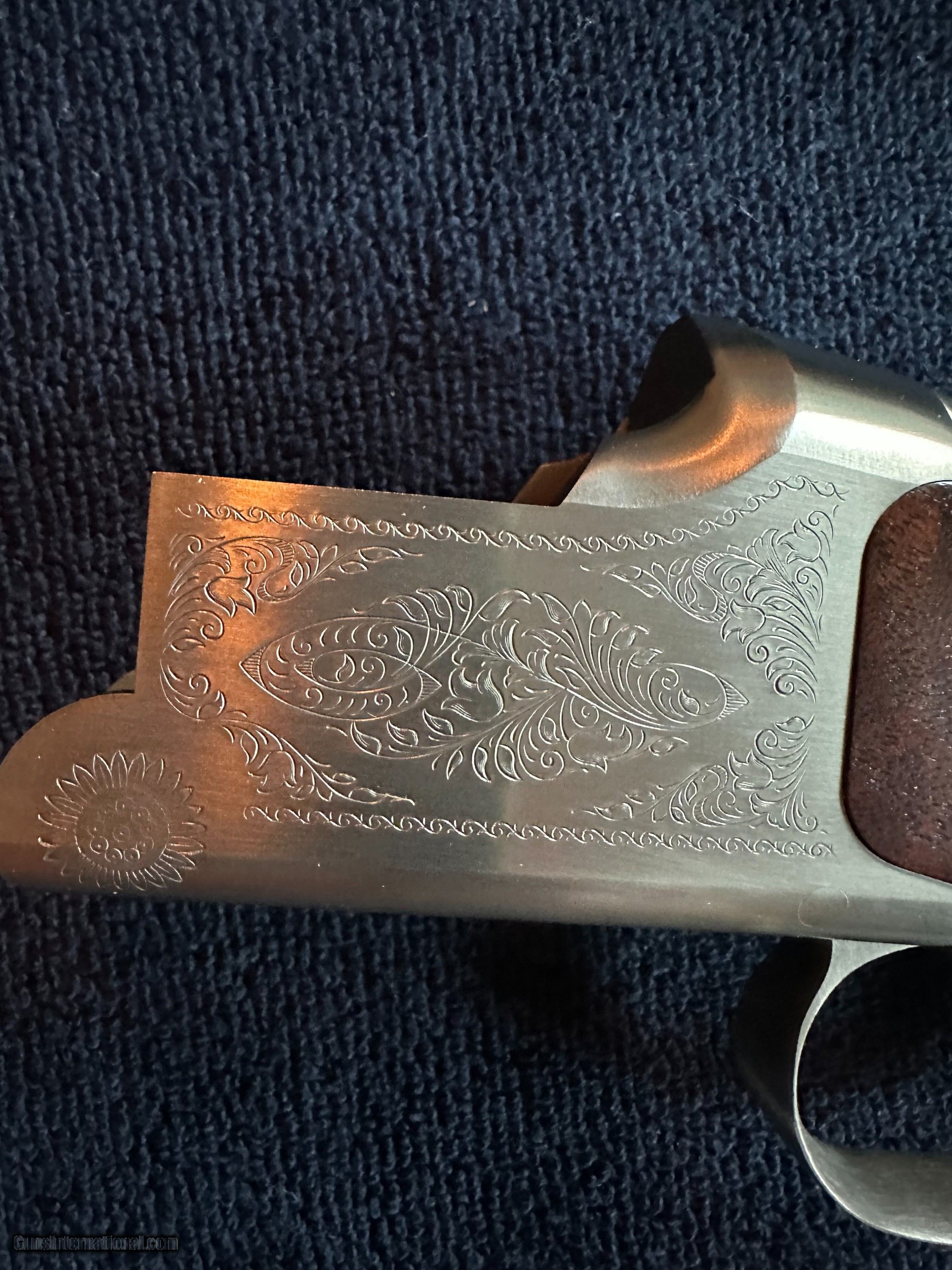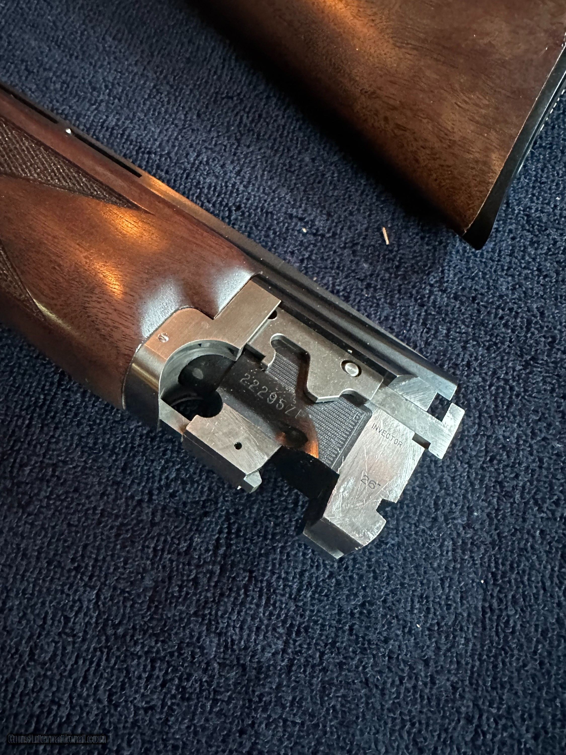 Description: Rare 16 ga unfired with the original Browning box manufactured by Miroku for Browning 26" special steel vantilated rib with nickel bead front sight 2-2/4" chambers with invector cylinder chokes WHITE LIGHTNING engraving on each side of the receiver comes with grade III oil finished walnut pistol grip stock Shotgun Gauge: 16 Gauge Manufacturer: Miroku for Browning Model: White lightning Serial Number: 22295ZP131 Barrel Length: 26 Bore Info: 16 ga Ejectors: Yes Condition: As New Metal Condition: As New Wood Condition: Mint Bore Condition: excellent Barrels: special steel Barrel Type: O/U Action: white lightning standard engraving Triggers: Single Stock: Round Knob Price: $3,700.00 Buy Now Contact Seller |