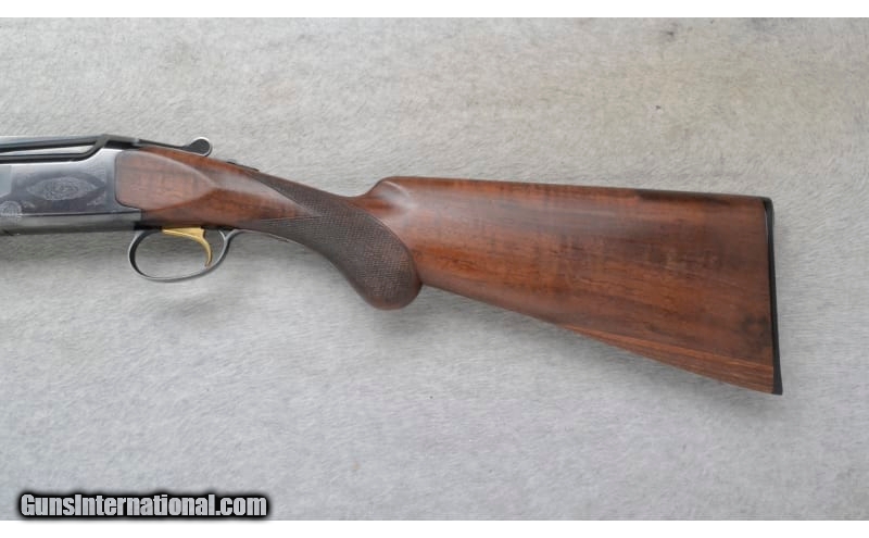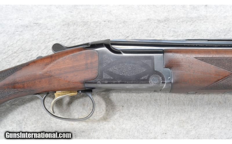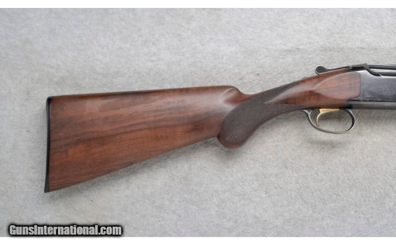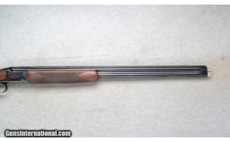 Description: This Browning Model Citori is an over and under shotgun in 20 Ga. It has 28 inch barrels with ejectors and a top barrel ventilated rib. A metal bead front sight. With 3 inch chambers it has Invector Choke and comes with extra choke tubes. It has a Single Select Trigger. The butt stock is a checkered grip walnut round knob pistol grip. Thew forearm is a checkered grip walnut. The receiver is lightly engraved. Made in Japan. 20 Gauge SOLD Chambers: 3 inch. Metal Condition: Good. A little minor freckling and blur wear on the receiver. Wood Condition: Very Good. Bore Condition: Shiny. Barrels: 28 inch barrels with ejectors and a top barrel ventilated rib. Triggers: SST Stock Dimensions: LOP 14 1/8 inches. Fore End: Checkered grip walnut. Butt Pad: Browning black plate. Weight: 6 lb. 14 oz. Sights: Metal bead front. Chokes: Invector Choke. Comes with extra choke tubes. Item Location: Richfield, WI |