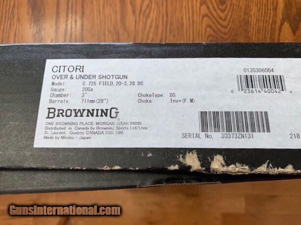 BROWNING CITORI 20 GA. 725 FIELD, 28” BARRELS, 3” CHAMBER, NEW IN BOX