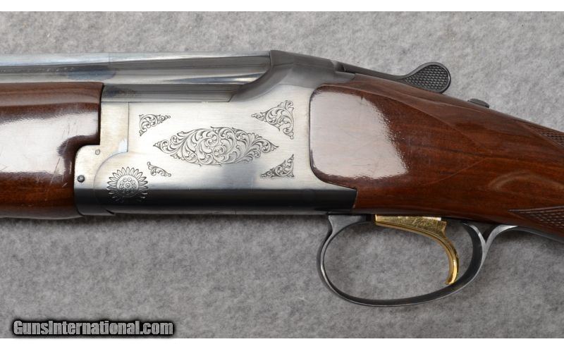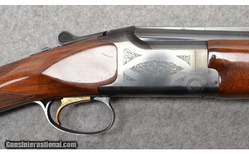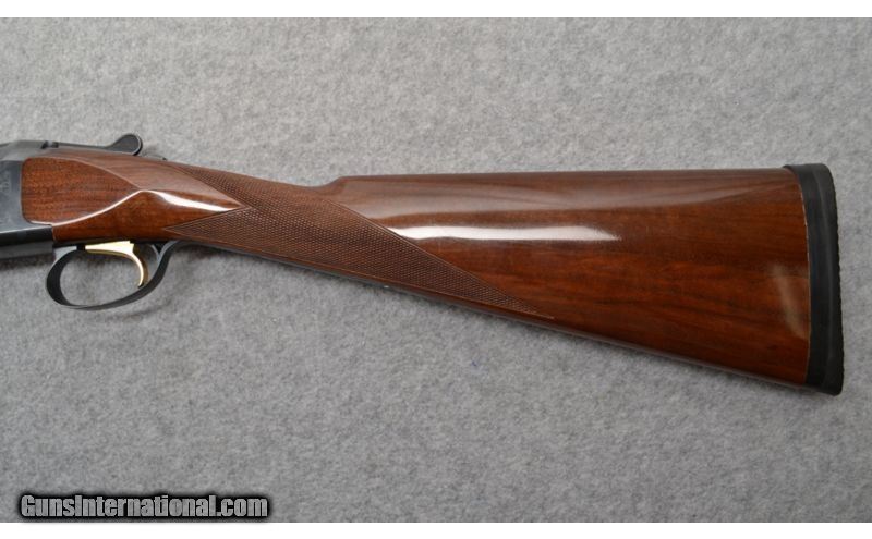 Description: Browning model Citroi 20 Gauge 28 inch barrels, 2 3/4 inch chambers with matte vent rib. The front bead is missing. The bores are bright with no dings, dents, rings, or bulges. Action has some light blue wear and few light scratches. Lower stock tang shows some blue wear with the metal turning a dull gray. The barrels show a few light scratches, but none are through the finish. The stock and fore end have a few light scratches and dings, but none are through the finish. SOLD Manufacturer: 1986 Caliber Info: 20 GA Chambers: 2 3/4 inch chambers. Metal Condition: Action has some light blue wear and a few light scratches. Lower stock tang shows some blue wear with the metal turning a dull gray. The barrels show a few light scratches but none are through the finish. Wood Condition: The stock and fore end have a few light scratches and dings, but none are through the finish. Bore Condition: Bright bore with no dings, dents, rings, or bulges. Barrels: 28 inch barrels. Triggers: Single selective trigger. Stock: Walnut checkered straight hand stock. Stock Dimensions: 13 5/8 inch LOP 2 inch DAC, 2 1/2 inch DAH Fore End: Walnut checkered Schnabel fore end. Butt Pad: Pachmayr black rubber recoil pad. Weight: 6 lbs 9 oz Sights: Matte vent rib with missing fiber optic bead. Chokes: Browning invector screw in choke tubes. Includes two chokes tubes: under barrel improved cylinder and over barrel skeet . Item Location: Mitchell, SD |