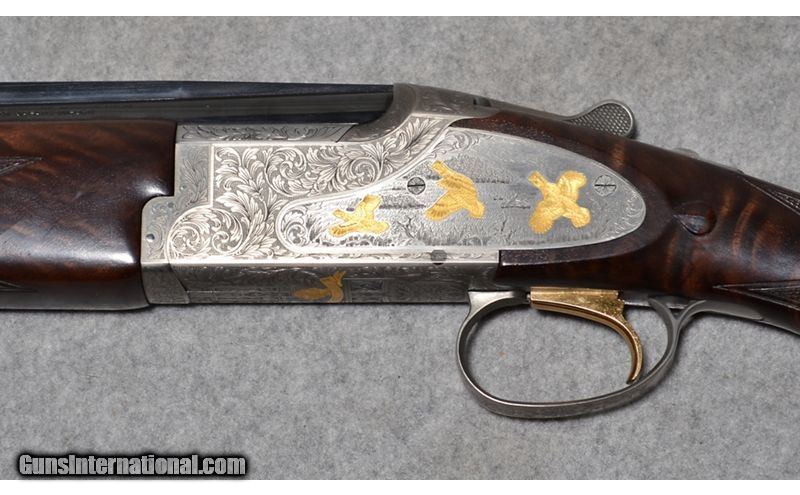 Description: Browning Citori Heritage 20 gauge, three inch chambers, with ejectors, single selective trigger. 28 inch barrels, vent matte rib with middle and front white beads. Bores are bright no dings, dents, rings, or bulges. Nickle action with false side plates is full coverage engraving, with gold enlays, three ruff grouse (right) side, three bobwhite quail (left) side. Bottom has dog with heritage banner. Action and barrels are in excellent condition. The stock and fore end show a few very faint handling marks. Browning classifies the wood as grade six in the lightning style. This shotgun was a shot shwo special for the 2009 year and limited run to just for 2009. 20 Gauge SOLD Chambers: 3" chambers. Metal Condition: Action and barrels are in excellent condition. Action has false side plates to incorporate factory game scene engraving. Wood Condition: "Browning grade six checkered walnut stock and fore end have a few very light handling marks, though none are through the oil finish. Bore Condition: "Bright bore with no dings, dents, rings, or bulges. Barrels: 28" barrels. Triggers: Gold single selective trigger. Stock Dimensions: "4 1/4"" LOP, 1 1/2"" DAC, 2 1/4"" DAH Fore End: Walnut checkered round knob pistol grip stock and Schnabel fore end. Butt Pad: Black factory butt plate. Weight: 7 lbs Sights: Matte vent rib with middle and front white beads. Chokes: Browning Invector Plus choke tubes. Item Location: Mitchell, SD |