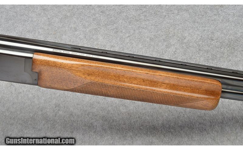 Description: 1975 production offers a solid action. Barrel threaded at sometime and includes 3-tube set. 12 Gauge SOLD Chambers: 3 Inch Metal Condition: "Very good, Some minimal spotting Wood Condition: Scattered rubs and scratches Bore Condition: Bright Barrels: 26 Inch Triggers: Single Select Butt Pad: Browning Plate Weight: 7 lbs Sights: "Vent Rib, Metal Bead Chokes: "Full, Modified, I.C., Carlson Extended Choke Tubes Item Location: Buda, TX |