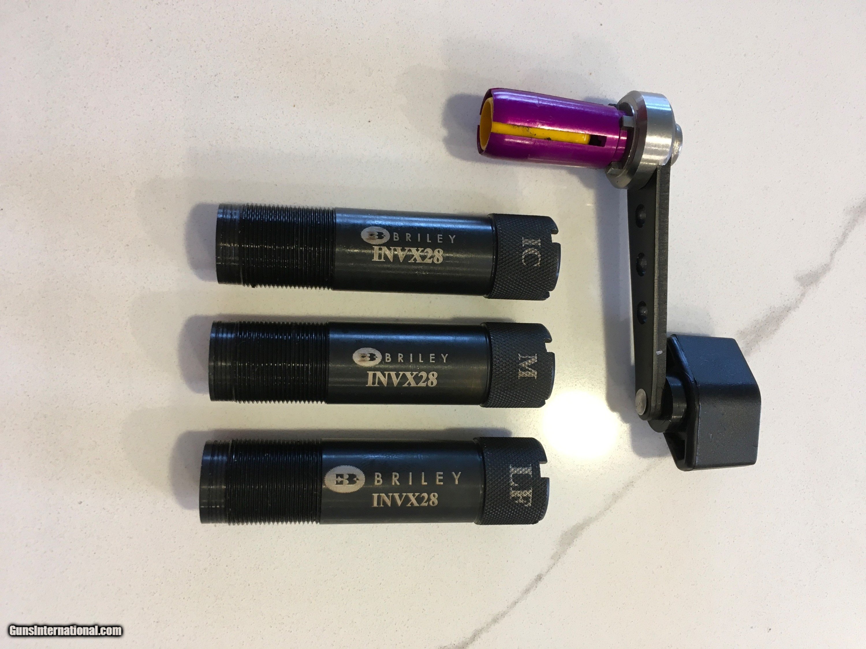 Description: Browning Citori gran lightning 28 gauge. 26" invector barrels. Built in2002. This gun is new, unfired, in original box with hang tag, all paperwork, 3 chokes with wrench & trigger lock. This gun has fantastic, highly figured wood. I had always planned on shooting this gun so I purchased Briley extended chokes. I never shot it so I will include 3 extended chokes: IC, MOD, and LF + Briley wrench. You could search a long time to find a 28 gauge gran lightning in this collector quality condition. Please add $70 shipping. SOLD Shotgun Gauge: 28 Gauge Manufacturer: Browning Model: Citori Barrel Length: 26” Condition: New old stock Manufacture Date: 2002 |
