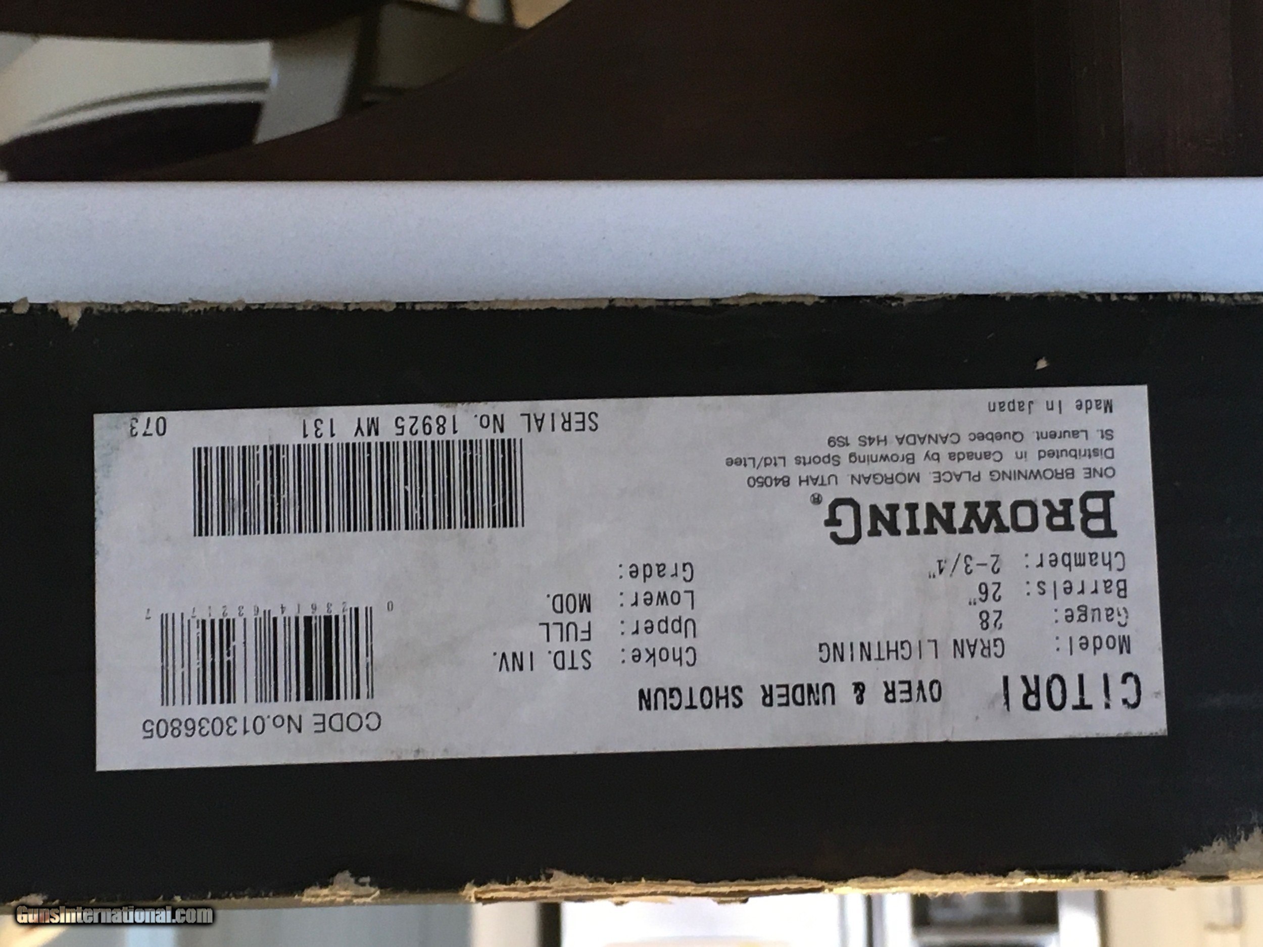 Browning Citori 28 gauge gran lightning 26” new, unfired in box. 2002