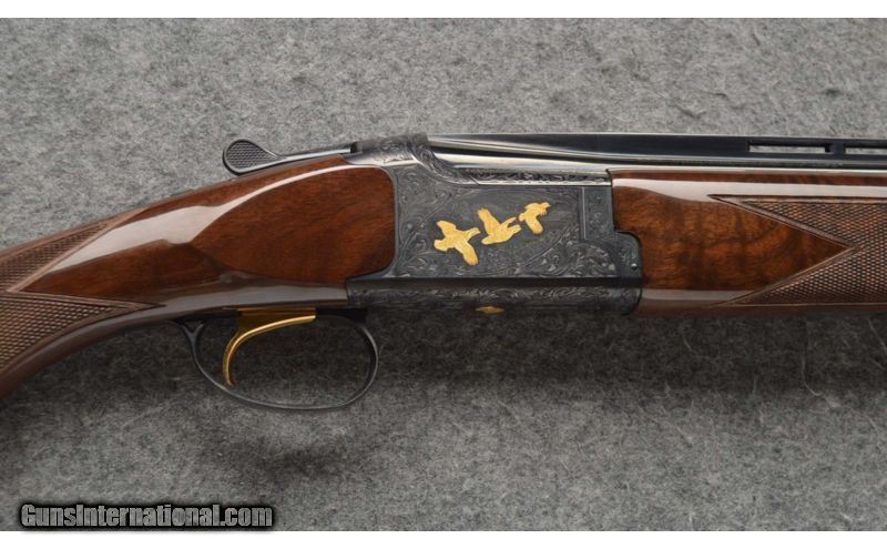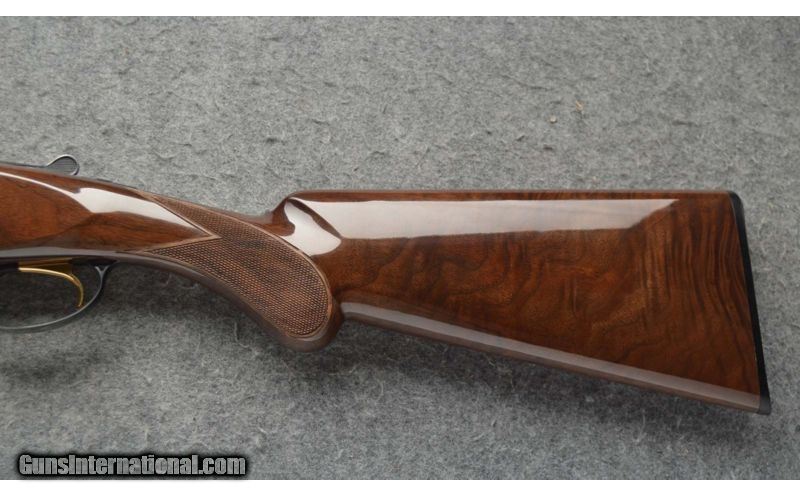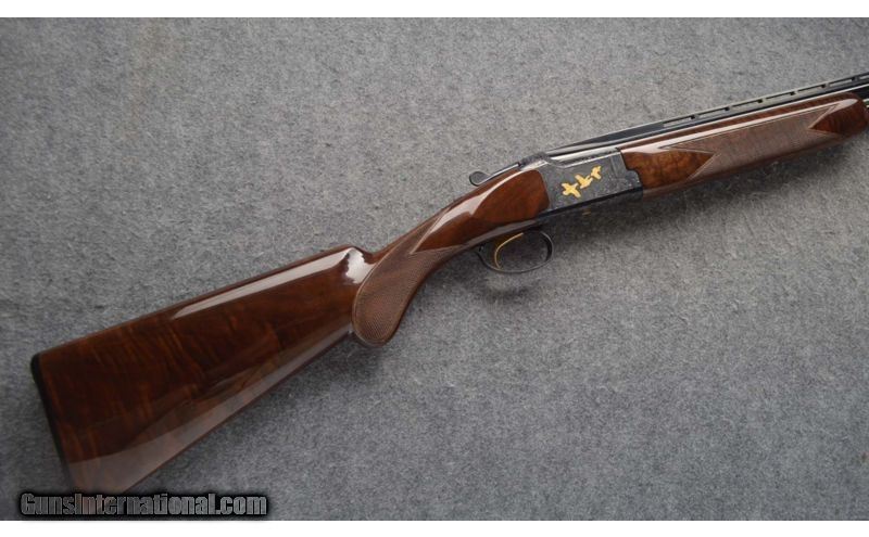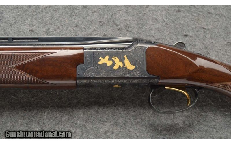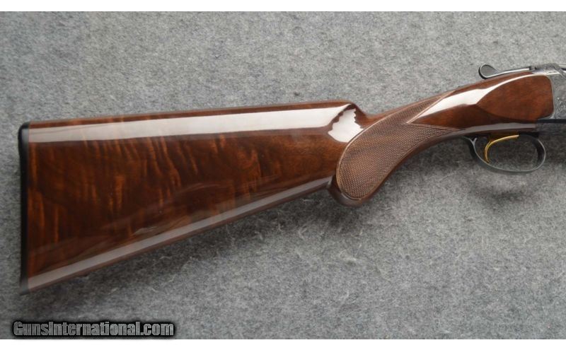 Description: Browning Citori gold engraved action, Grade VII walnut SOLD Manufacturer: 2008 Caliber Info: .410 GA Chambers: 3 Metal Condition: Almost new condition no noticeable handling marks Wood Condition: Slightest handling marks Bore Condition: Bright and sharp Barrels: 28 Triggers: Gold plated Stock: Grade VII walnut with semi pistol grip and 20 LPI checkering Stock Dimensions: LOP 14 3/8 DAC 1" DAH 1 1/2 Fore End: Grade VII walnut 20 LPI checkering Butt Pad: Browning hard plastic Weight: 7 lbs 2 oz Sights: Tapered vent rib with silver front bead Chokes: Top barrel full, bottom barrel modified Extras: None Item Location: Sidney, NE |