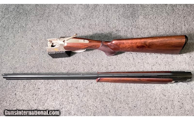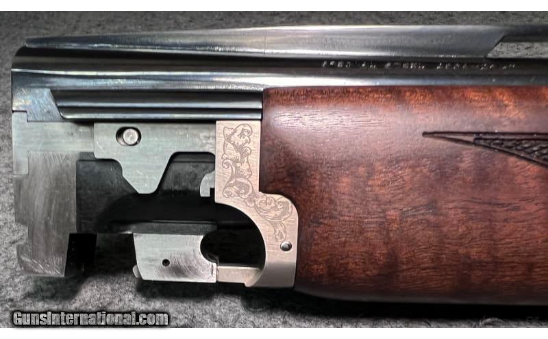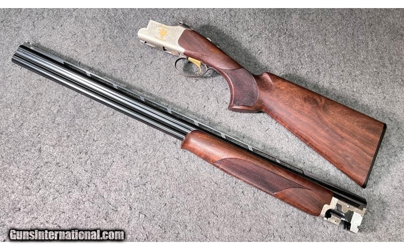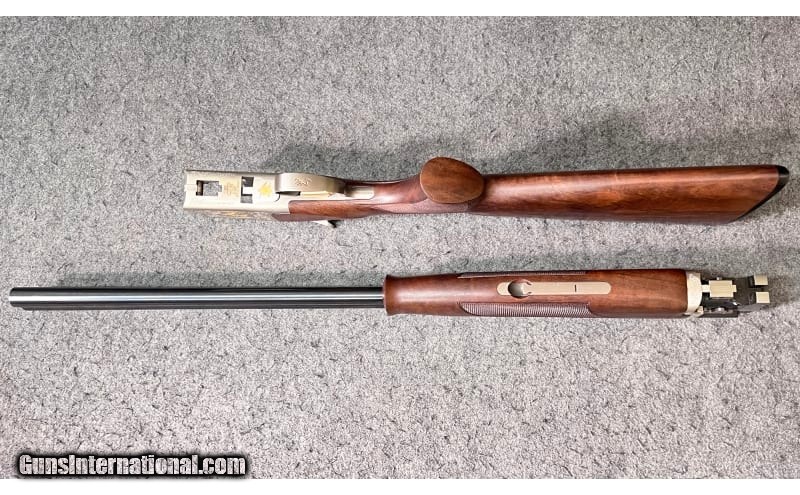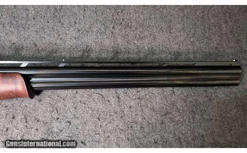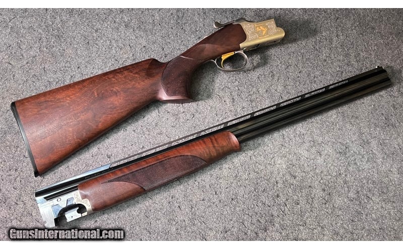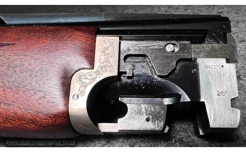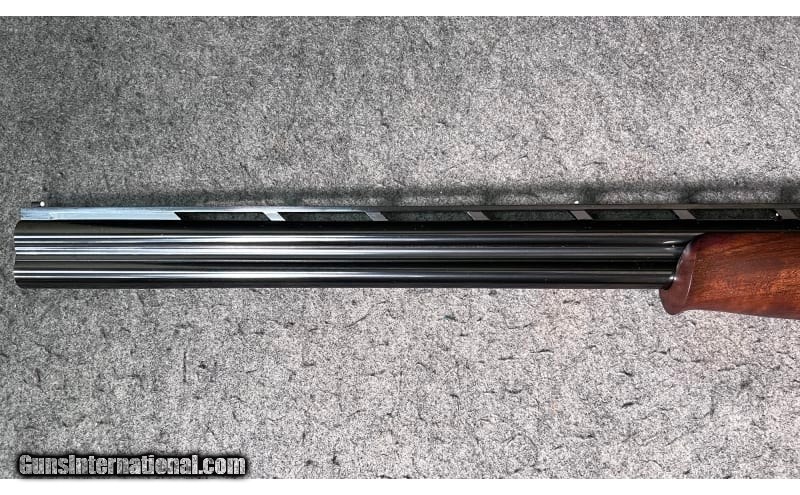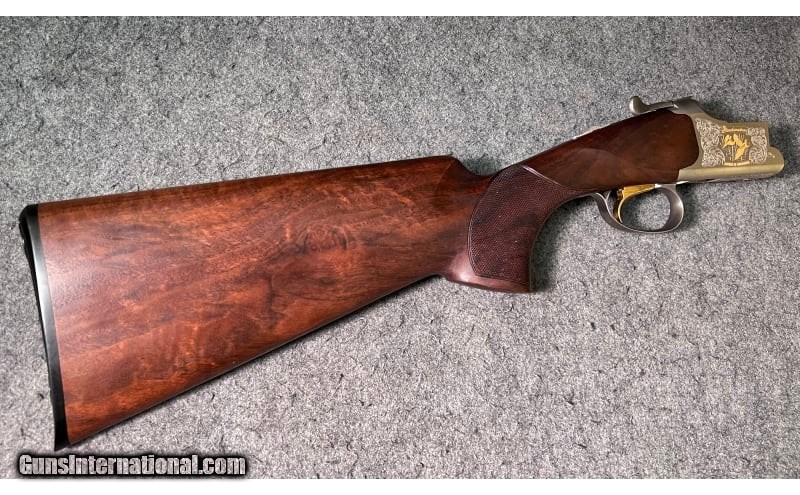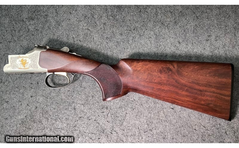Description: THIS SHOTGUN IS BEING SOLD AS PART OF A FOUR GUN SET. THE SET PRICE IS $7,999.99. This break action over/under shotgun is a Browning (Miroku) Citori 525 Anheuser-Busch "Partners in Conservation" Series chambered in 28 Gauge. This rare set includes the following Gauges: 28, 20, 12, and .410 Bore. This 28 Gauge has a 2¾" chamber, 26" textured top ventilated rib barrels, a large white bead front sight, a smaller white bead mid-barrel sight, a smooth gold-plated single selectable trigger, a sliding tang safety/barrel selector, a Schnabel rich dark walnut hand checkered fore arm, a 14⅛" LOP, an overall length of 43" and a hard black "Browning" butt plate. It has a satin silver receiver with special Budweiser "Partners in Conservation" engraving, gold-plated figures and marked "079 of 300" all in gold engraving. The set will not be broken up. Please do not inquire with offers of individual purchase. 28 Gauge SOLD Chambers: 2¾" Chamber Metal Condition: This gun is in new from the factory condition and has never been assembled Wood Condition: This gun is in new from the factory condition and has never been assembled Bore Condition: This gun is in new from the factory condition and has never been assembled Barrels: 26" textured top ventilated rib barrels Triggers: Smooth gold trigger Stock Dimensions: "14⅛"" LOP, overall length 43"" Fore End: Schnabel rich dark walnut hand checkered fore arm Butt Pad: Hard black butt plate Weight: 6 lbs 4 oz Sights: "Large white bead front sight, smaller white bead mid-barrel sight Chokes: Standard Invector chokes FULL [top] MODIFIED [bottom] Item Location: Wichita, KS |