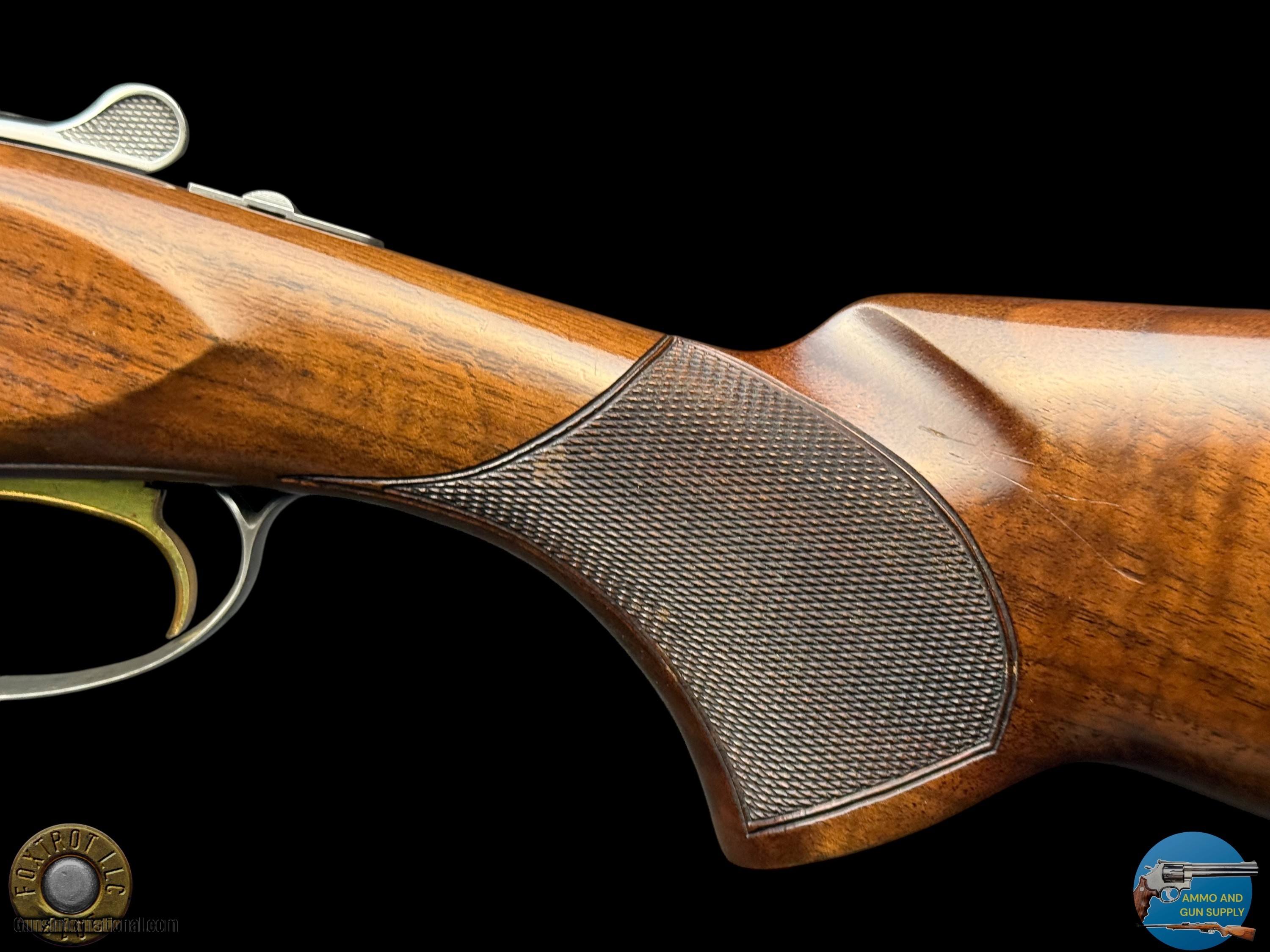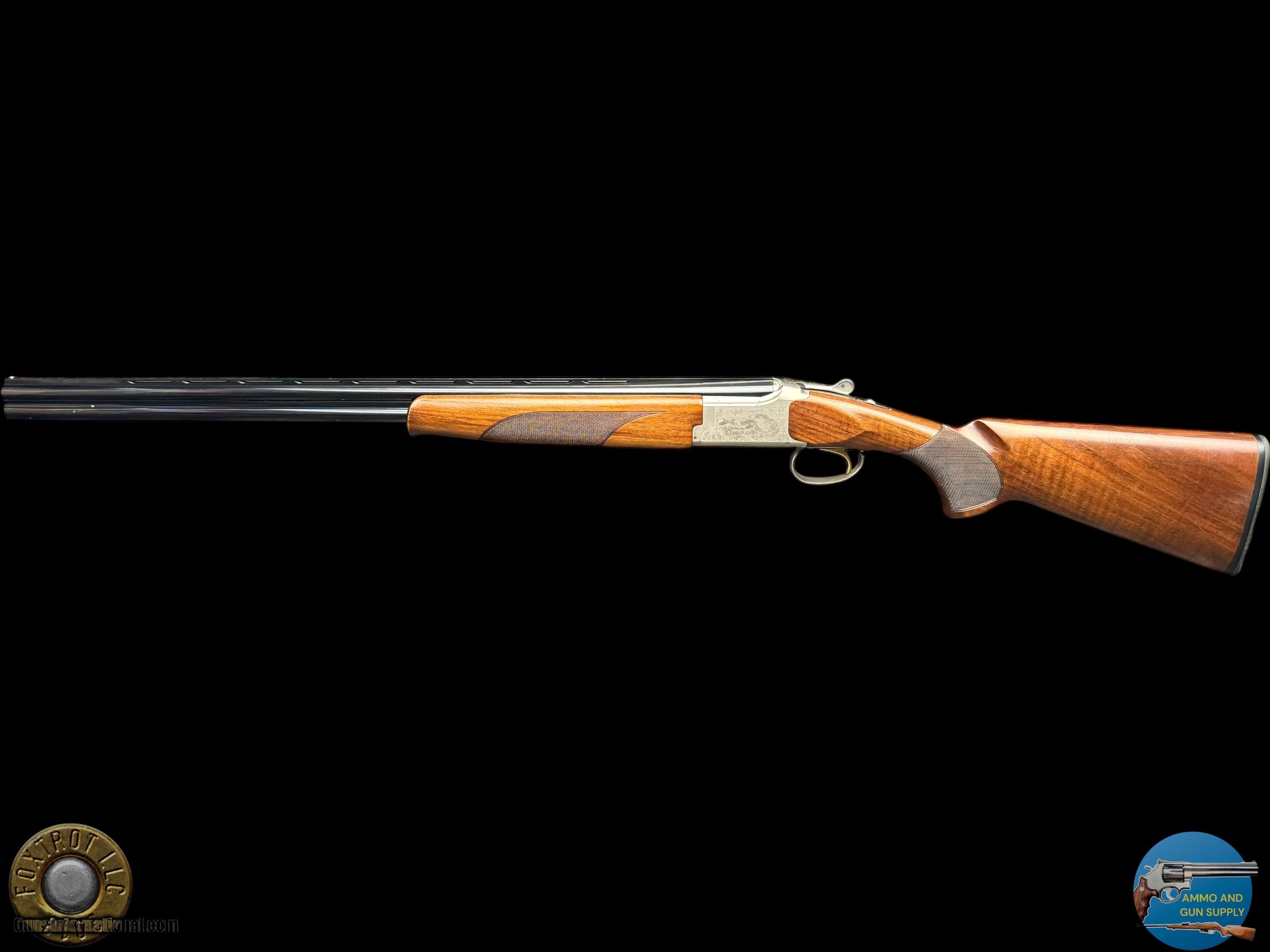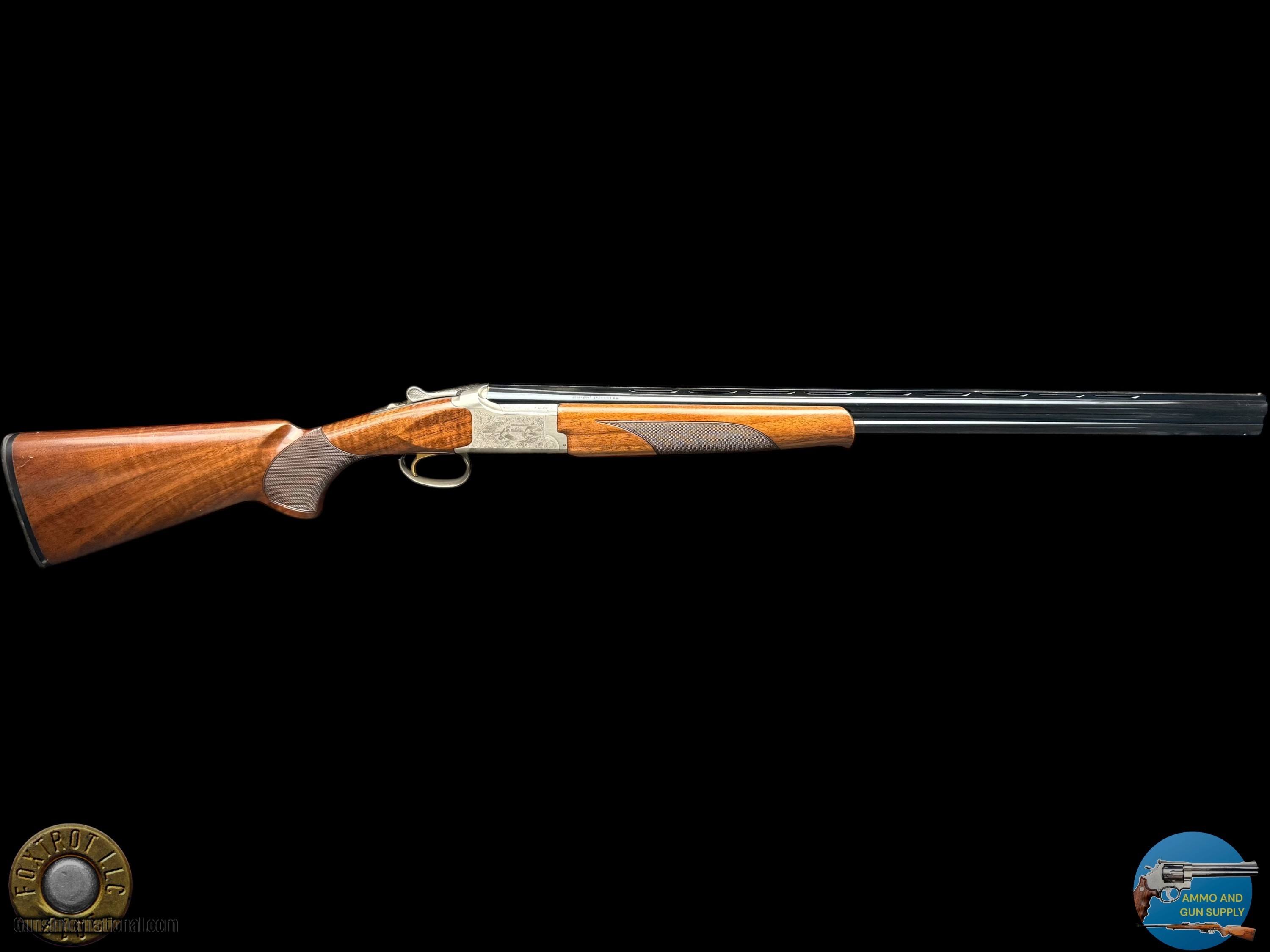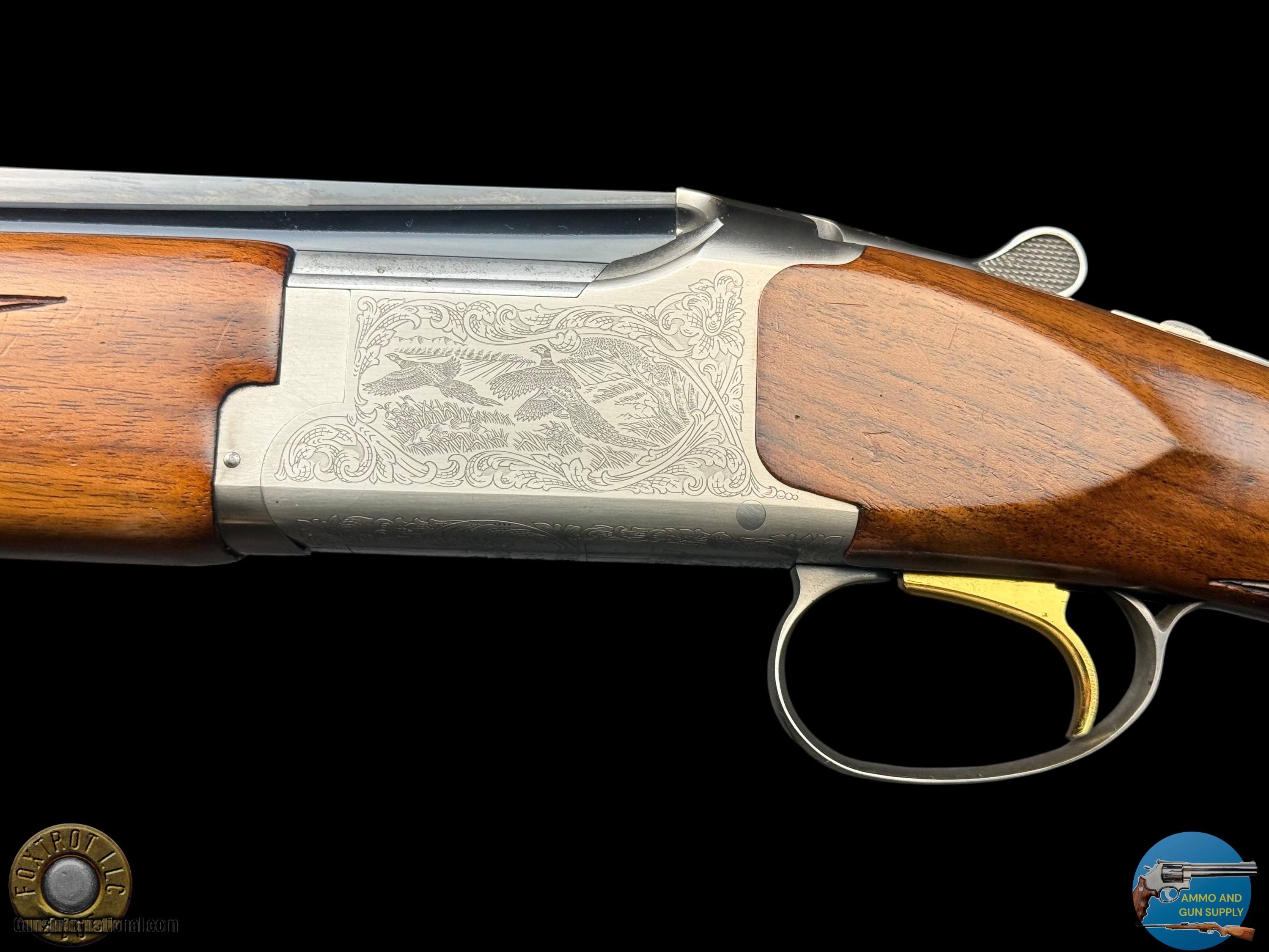 Description: BROWNING CITORI 525 FIELD GRADE III - 28 GAUGE - 28" - INVECTOR - 2010 MANUFACTURER - MIROKU - JAPAN FOR BROWNING MODEL - CITORI 525 FIELD GRADE III ACTION - BOXLOCK O/U WITH GOLD SINGLE SELECTIVE TRIGGER, NON-AUTO SAFE AND EJECTORS SN - 65564ZM GAUGE - 28 GAUGE 2.75" CHAMBERS BARREL LENGTH - 28" VENT RIB BARRELS CHOKES -INVECTOR CHOKE TUBE THREADED - 1X IMPORVED CYLINDER 1X MODIFIED CAPACITY – 2 DAC - 1.5" DAH - 2" LOP - 13.625" TO BLACK RUBBER RECOIL PAD WEIGHT - 6 LB 13 OZ SIGHTS - MATTED VENT STRAIGHT RIB WITH SILVER FRONT BEAD PRODUCED - 2010 This Browning Citori 525 Field Grade III in 28 gauge was built by Miroku in Japan for Browning in 2010 and remains in very good overall condition. It is a well-balanced over/under boxlock with a silver nitride–finished receiver, gold single selective trigger, strong timed ejectors, and a non-automatic safety. The action is smooth, locks up tight, and the trigger breaks cleanly, making it mechanically excellent. The receiver is finely decorated with factory game scene engraving. The left side shows two pheasants flushing from a field, framed in scroll, while the right side depicts two ducks lifting from a marsh, also with scroll surrounds. The underside is scroll-engraved and carries the “525” banner. Barrels measure 28" and retain 98% of their original blued finish. They are threaded for Browning Invector choke tubes and are accompanied by an improved cylinder and modified choke. The rib is a matted ventilated design with a silver front bead for a clean sighting plane. Stocked in walnut with strong grain, the gun features a pistol grip with sharp checkering and a schnabel forend, giving it a classic field-ready profile. Length of pull measures 13.625" to a black rubber recoil pad, drops are 1.5" at comb and 2" at heel, and overall weight is 6 lbs 13 oz. The bores are clear, and handling marks on the stock and forend are minimal, consistent with careful use. A very nice example of Browning’s Citori 525 in the increasingly desirable 28 gauge, this gun combines elegant engraving with excellent handling—equally at home in the upland fields or as a refined addition to any collection. FLAT $50 S/H/I. 4%CREDIT CARD FEE APPLIES. FOXTROT IS A LICENSED FFL DEALER WITH MANY POSITIVE FEEDBACKS SO BUY WITH CONFIDENCE! SOLD Shotgun Gauge: 28 Gauge |