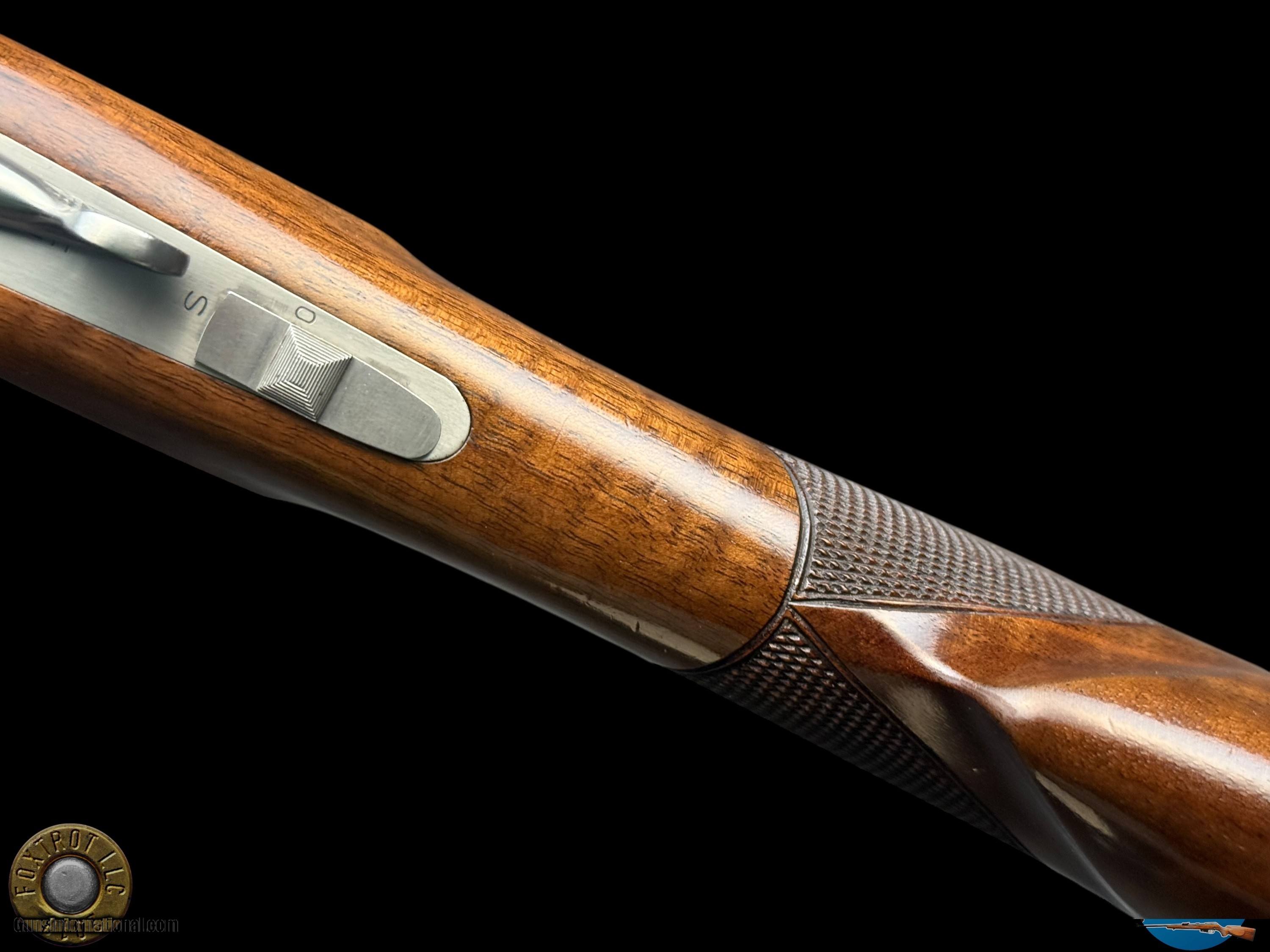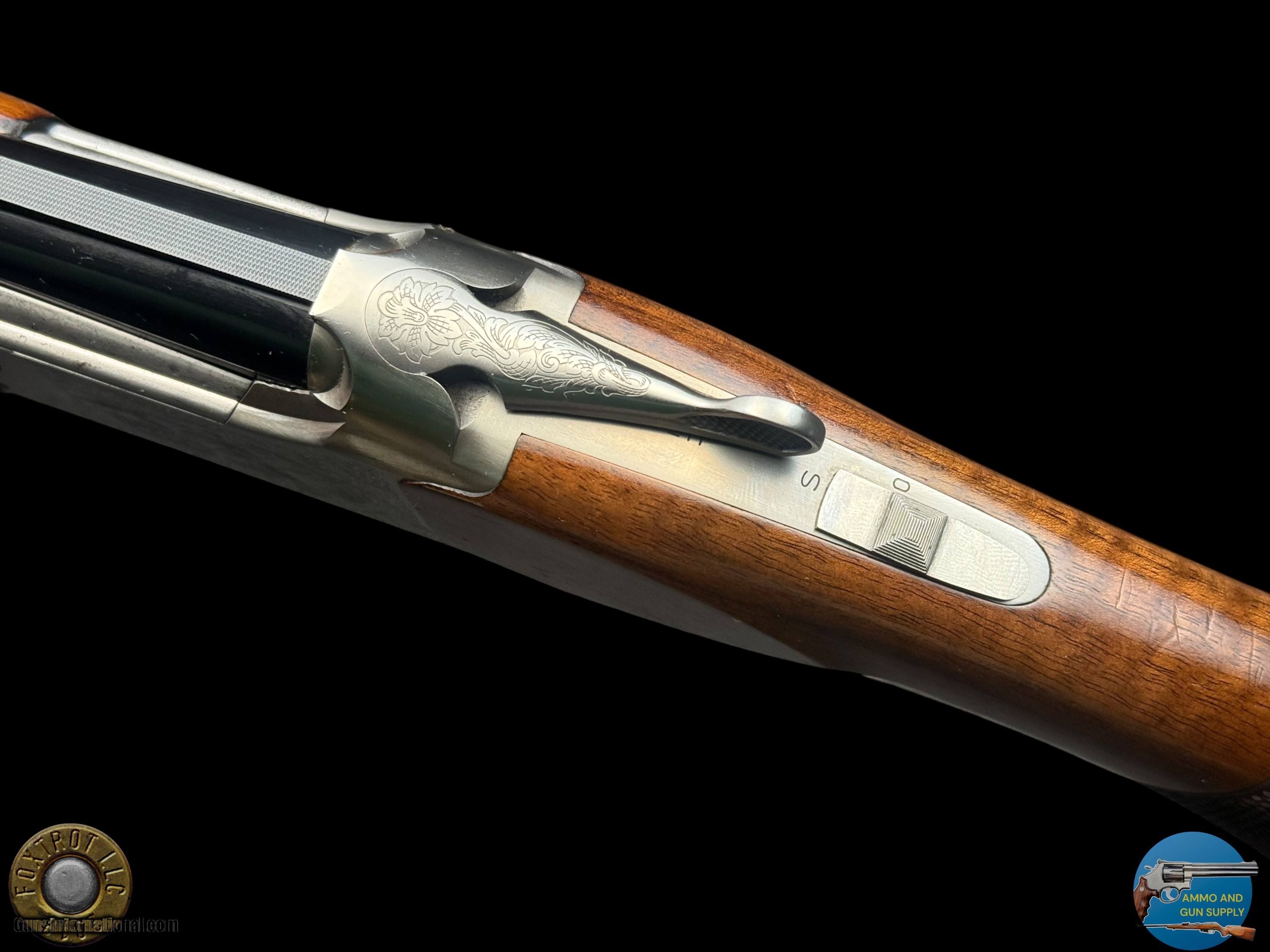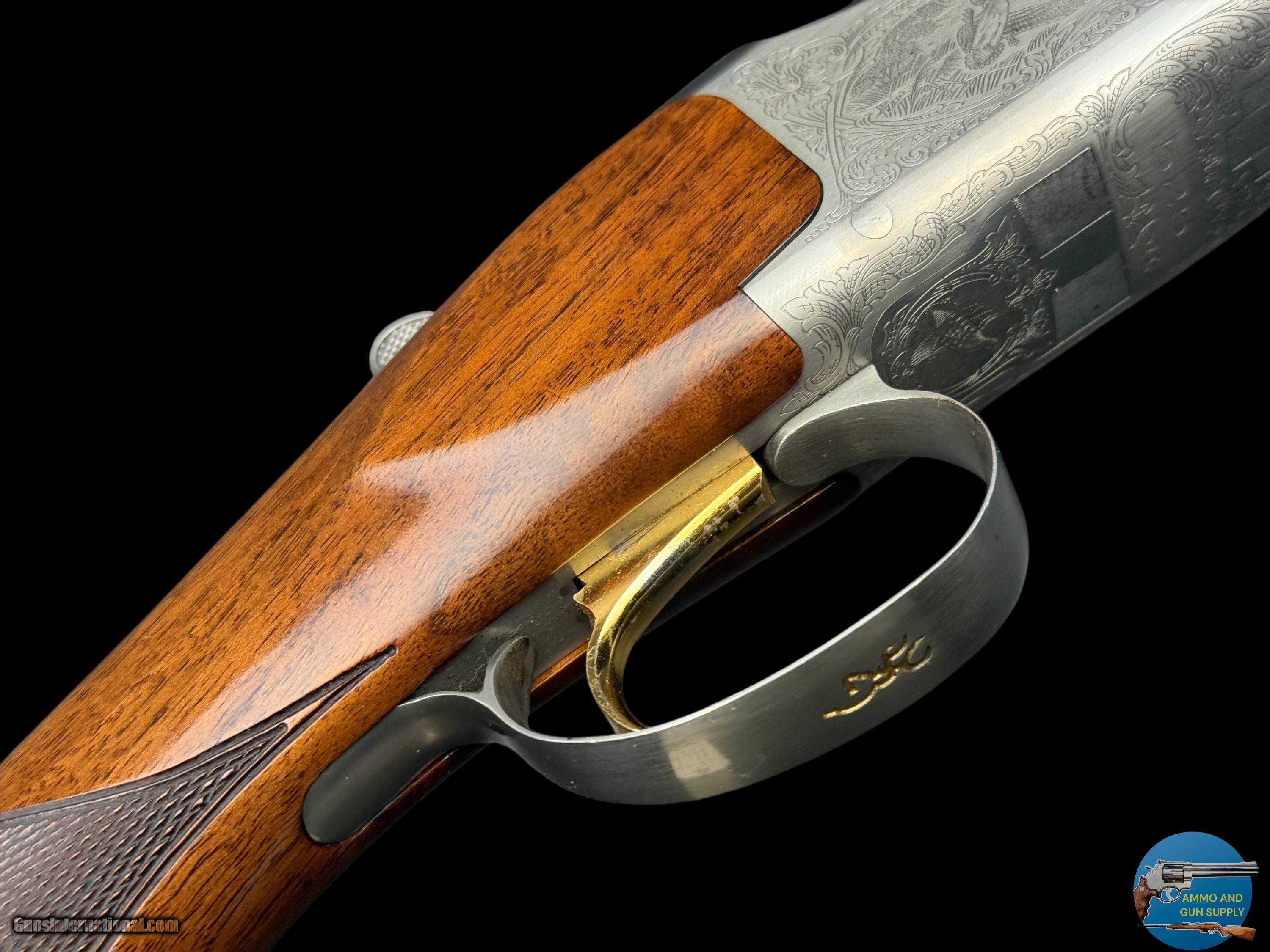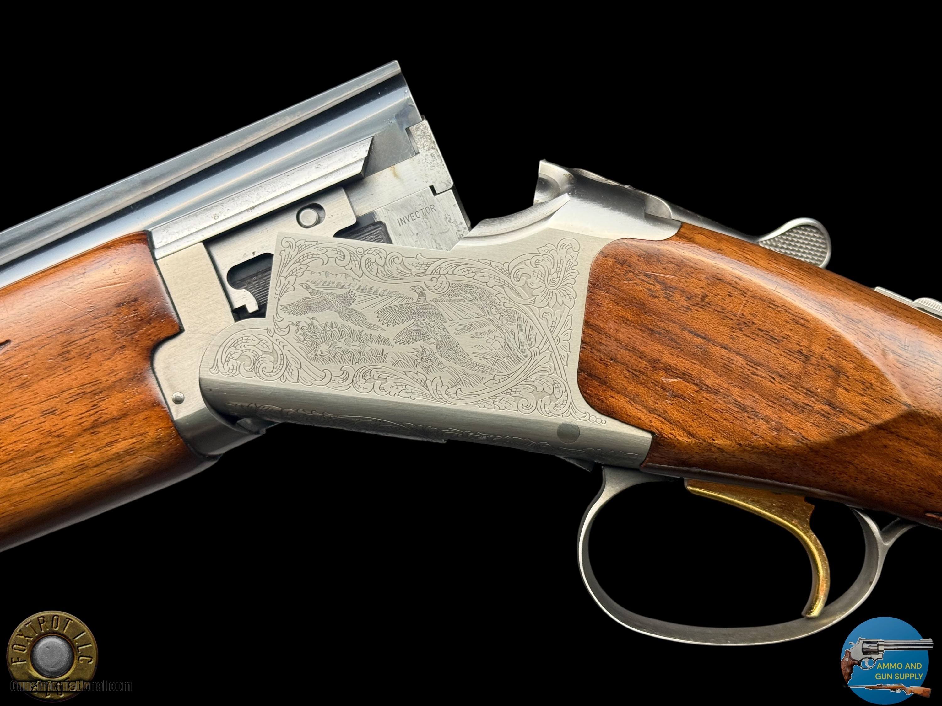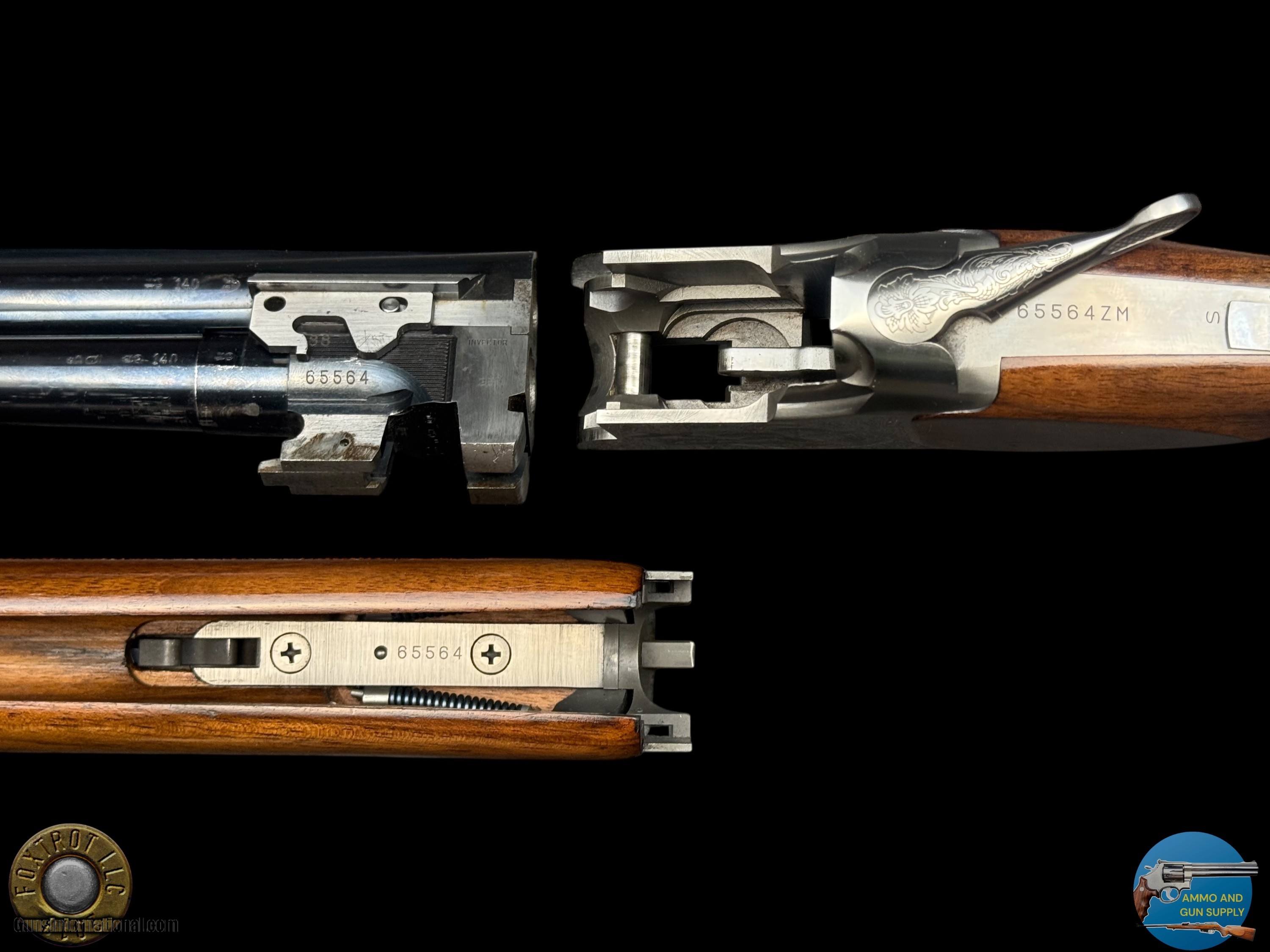 Description: BROWNING CITORI 525 FIELD GRADE III - 28 GAUGE - 28" - INVECTOR - 2010 MANUFACTURER - MIROKU - JAPAN FOR BROWNING MODEL - CITORI 525 FIELD GRADE III ACTION - BOXLOCK O/U WITH GOLD SINGLE SELECTIVE TRIGGER, NON-AUTO SAFE AND EJECTORS SN - 65564ZM GAUGE - 28 GAUGE 2.75" CHAMBERS BARREL LENGTH - 28" VENT RIB BARRELS CHOKES -INVECTOR CHOKE TUBE THREADED - 1X IMPORVED CYLINDER 1X MODIFIED CAPACITY – 2 DAC - 1.5" DAH - 2" LOP - 13.625" TO BLACK RUBBER RECOIL PAD WEIGHT - 6 LB 13 OZ SIGHTS - MATTED VENT STRAIGHT RIB WITH SILVER FRONT BEAD PRODUCED - 2010 This Browning Citori 525 Field Grade III in 28 gauge was built by Miroku in Japan for Browning in 2010 and remains in very good overall condition. It is a well-balanced over/under boxlock with a silver nitride–finished receiver, gold single selective trigger, strong timed ejectors, and a non-automatic safety. The action is smooth, locks up tight, and the trigger breaks cleanly, making it mechanically excellent. The receiver is finely decorated with factory game scene engraving. The left side shows two pheasants flushing from a field, framed in scroll, while the right side depicts two ducks lifting from a marsh, also with scroll surrounds. The underside is scroll-engraved and carries the “525” banner. Barrels measure 28" and retain 98% of their original blued finish. They are threaded for Browning Invector choke tubes and are accompanied by an improved cylinder and modified choke. The rib is a matted ventilated design with a silver front bead for a clean sighting plane. Stocked in walnut with strong grain, the gun features a pistol grip with sharp checkering and a schnabel forend, giving it a classic field-ready profile. Length of pull measures 13.625" to a black rubber recoil pad, drops are 1.5" at comb and 2" at heel, and overall weight is 6 lbs 13 oz. The bores are clear, and handling marks on the stock and forend are minimal, consistent with careful use. A very nice example of Browning’s Citori 525 in the increasingly desirable 28 gauge, this gun combines elegant engraving with excellent handling—equally at home in the upland fields or as a refined addition to any collection. FLAT $50 S/H/I. 4%CREDIT CARD FEE APPLIES. FOXTROT IS A LICENSED FFL DEALER WITH MANY POSITIVE FEEDBACKS SO BUY WITH CONFIDENCE! SOLD Shotgun Gauge: 28 Gauge |