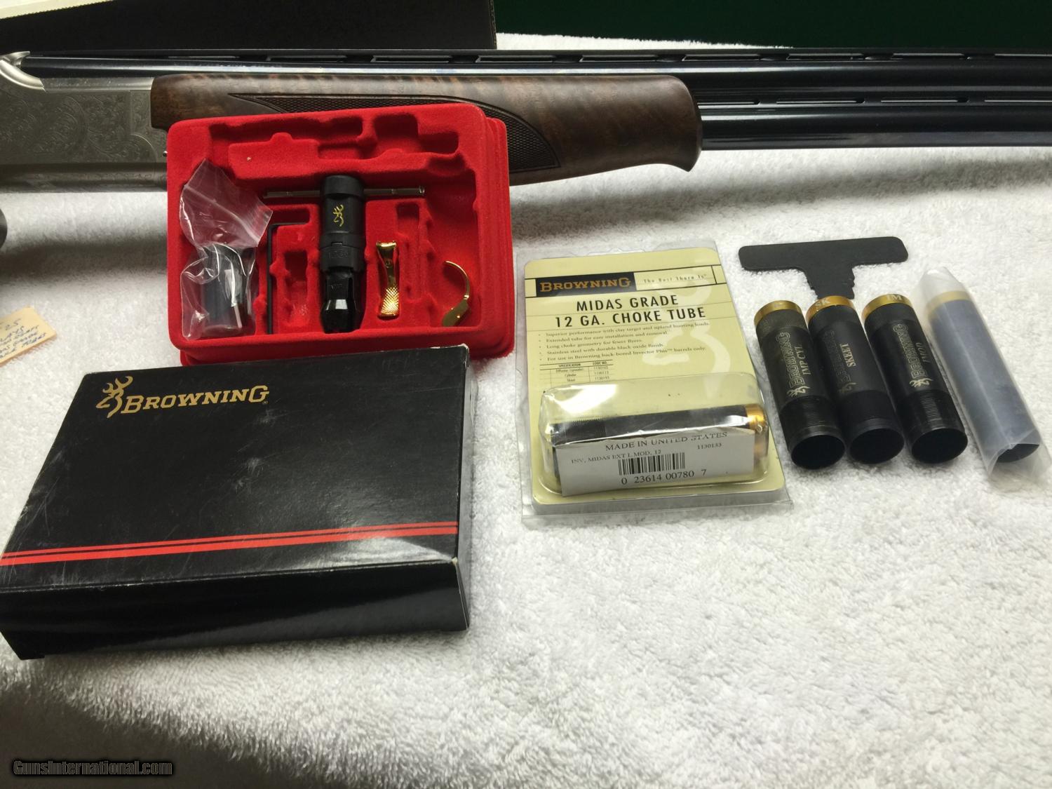 Description: Browning Citori 525 Golden Clays MIDAS GRADE - FULLY ENGRAVED RECEIVER 12 GA 2 3/4" - 32" Barrel - Vent Rib - Ported Single Trigger - Ejectors - Hi VizPro Comp Sights - Original Box, Trigger Kit - Sight Kit - Complete 5 Invector Choke Tube Set and Delux hand rubbed oil finished wood with minor scratches on left hand butt stock (see photos) Otherwise Condition 99 Percent SOLD |