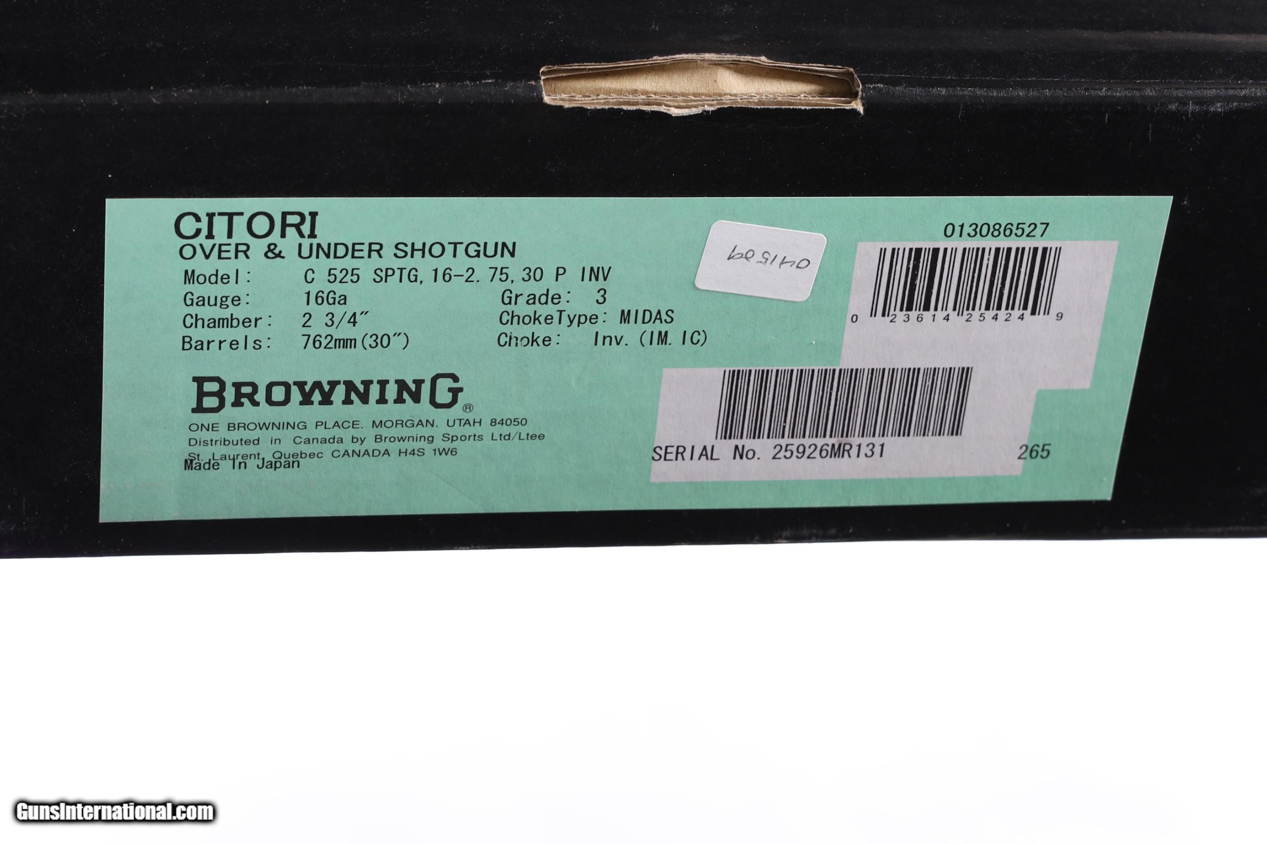 Browning Citori 525 Grade 3 O/U Shotgun 16ga