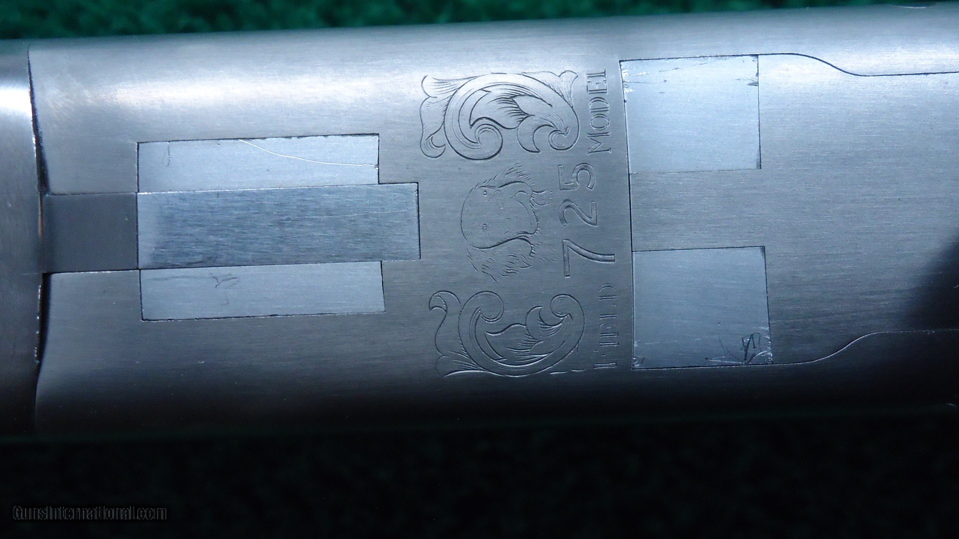 Description: High-polish blued 28 inch ventilated rib barrels chambered for 2-3/4 inch featuring Invector-DS chokes, comes with 1 Full in the top and 1 Mod(idfied) in the bottom. Has a low profile "white" steel receiver with high-relief engraving. Gloss oil finish checkered walnut forearm with matching pistol grip buttstock fitted with Browning Inflex recoil pad. Rates 98% plus near as new condition showing little to no use with right side of the buttstock having only a couple of very light handling marks and still retains the Browning stick on label on the bottom barrel. Leroy Merz Antique Firearms specializes in antique and vintage Winchesters and other fine American firearms. Since 1965 Mr. Merz has taken part in the world of firearms and has been a contributor to many well known reference books. We have hundreds of additional guns in every price range at our home online. Search for Merz Antiques in google. The Browning® Citori® 725 Field Over/Under Shotgun provides mechanical excellence in an elegant, sleek shotgun that points like an extension of your index finger. Much of the 725's innovative design was focused on the low profile receiver that positions the barrels lower in the receiver for natural point ability. The 725's low profile receiver also improves recoil control by pushing the gun straight back into the shoulder instead of the muzzle jumping up, which makes getting an aimed, second shot off quicker. The Citori 725 features the FireLite mechanical trigger design that delivers a light, smooth pull. By not relying on inertia to reset the second hammer, a mechanical trigger ensures you get an immediate second shot, without worrying about your gun unexpectedly doubling. The Citori 725 Field comes with a gloss, oil finished, grade II/III checkered walnut stock, and a "white" steel receiver with high-relief engraving, protected from corrosion by a durable coating process called "nitrided," offering similar protection as bluing. Barrels have a high-polished blued finish. All metal components are machined to exact tolerances, and wood-to-metal fit is extremely tight. The pistol grip and forend on the Citori 725 Field are rounded to further facilitate the lightning speed one can shoulder and instinctively get on target with this exquisite hunting shotgun. Browning's Inflex® Technology recoil pad utilizes directional deflection to pull the comb down and away from the shooter's face, creating greater comfort and allowing for faster follow up shots. The Browning Citori 725 Field comes with 3 Invector-DS choke tubes and Vector Pro lengthened forcing cones that minimize shot deformation and maximize pattern uniformity.