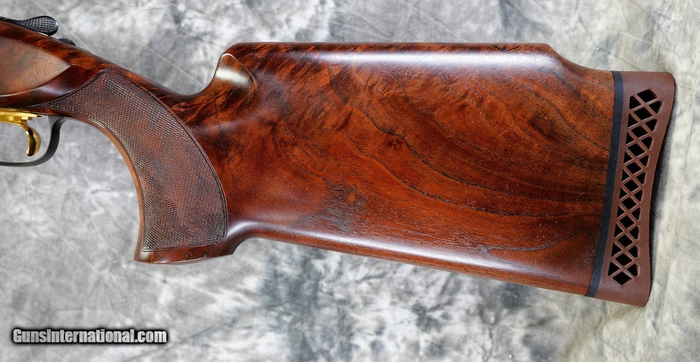 Description: Pre-Owned Browning 725 Grade VII Trap Combo 12GA with 34" Unsingle choke tubed barrel, factory adj. rib, additional 30" adj. rib O/U barrels with factory removable choke tubes; both are ported with very minor bluing wear. Factory blued action featuring scroll engraving, gold borders. Upgrade pistol grip Monte Carlo stock with beavertail forearm, very minor handling marks. Includes case, chokes. SOLD Shotgun Gauge: 12 Gauge |