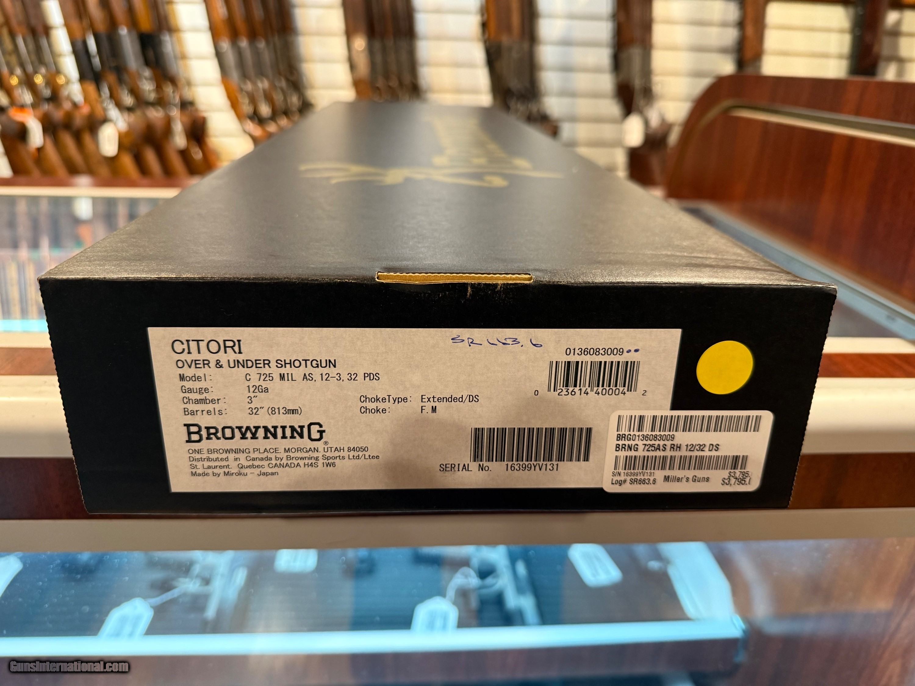 Description: Browning Citori 725 Millers Exclusive 12ga 32 Shotgun Gauge: 12 Gauge Manufacturer: Browning Model: Citori 725 Millers Exclusive Serial Number: 16399YV131 Barrel Length: 32 Condition: NEW Price: $3,795.00 Contact Seller |
